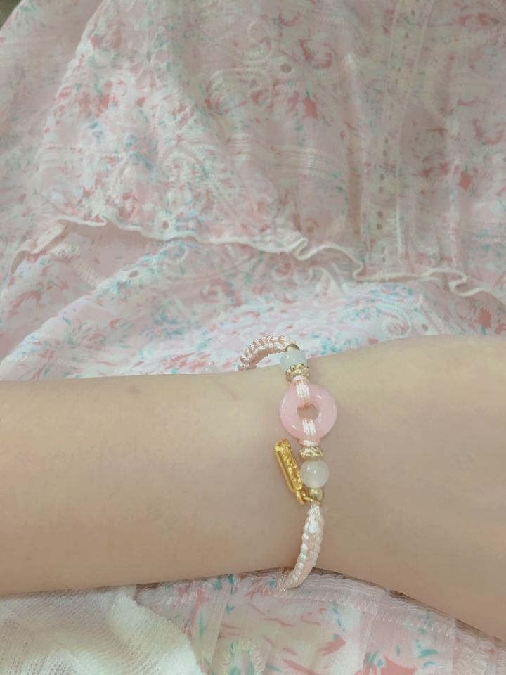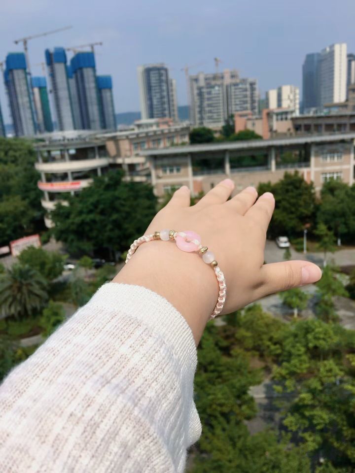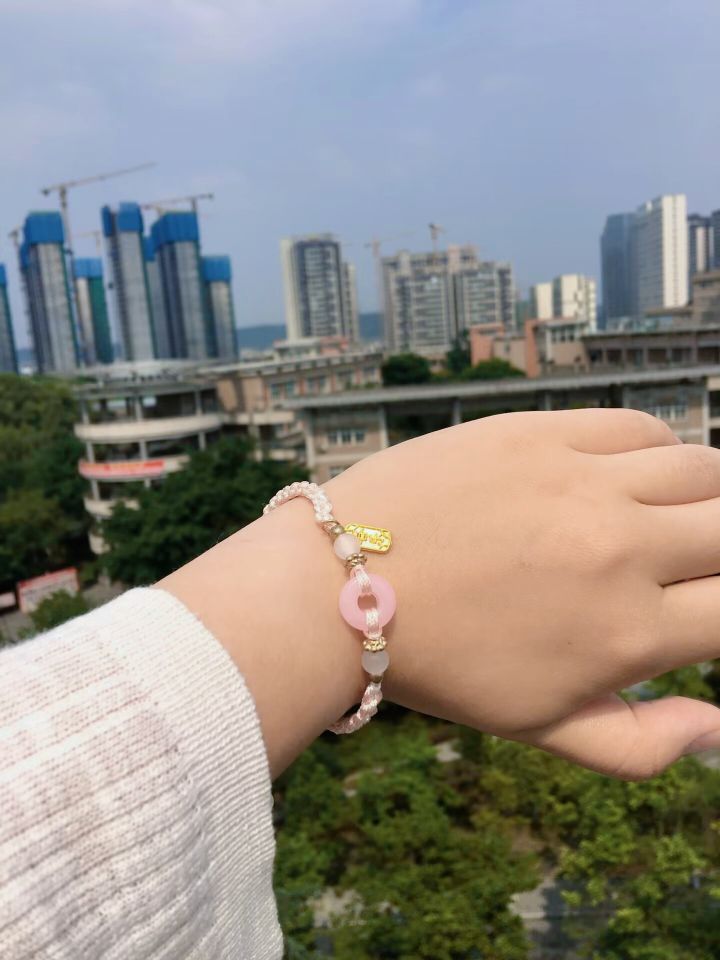 不是我说哎,这个手链怎么粉嘟嘟的 戴上秒变青春女大 刚好夏天适合亮色的碎花裙子👗 一身的粉色,仙女儿本仙啦 我要穿上这身装备去和男朋友约会 顺便发朋友圈,气死前男友