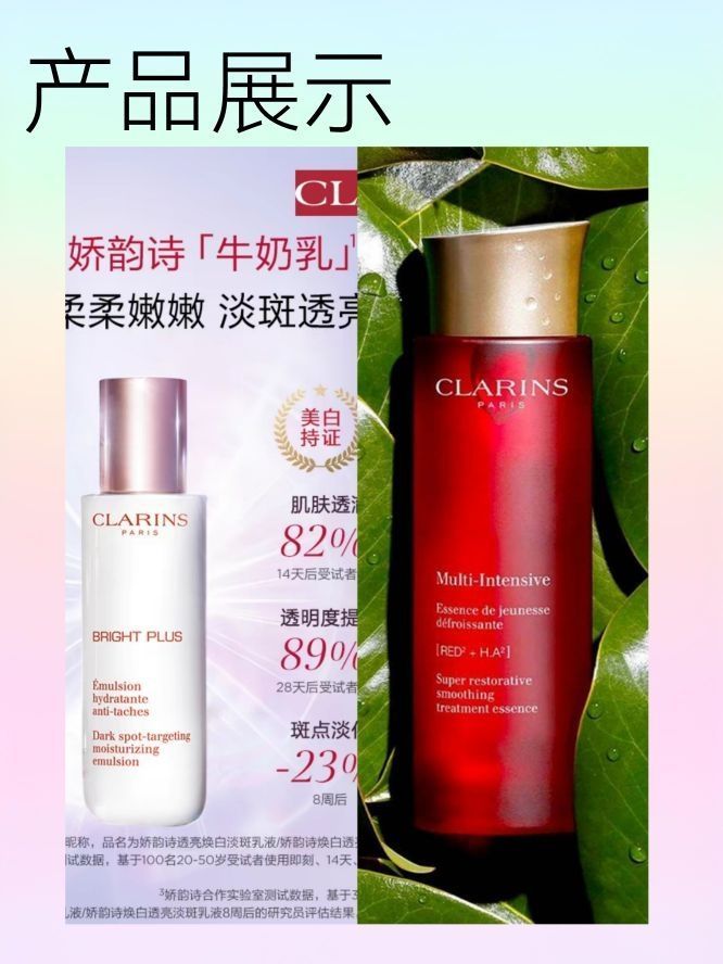 本篇笔记关联了CLARINS/娇韵诗 黄金双萃赋活精华液 御龄紧致抗皱抗老淡纹保湿修护轻感 第八代经典款、CLARINS/娇韵诗 少女水青春赋活分龄精华水 细毛孔提亮保湿淡纹抗氧化 普通包装等商品,为用户提供真实的使用体验和购买参考。