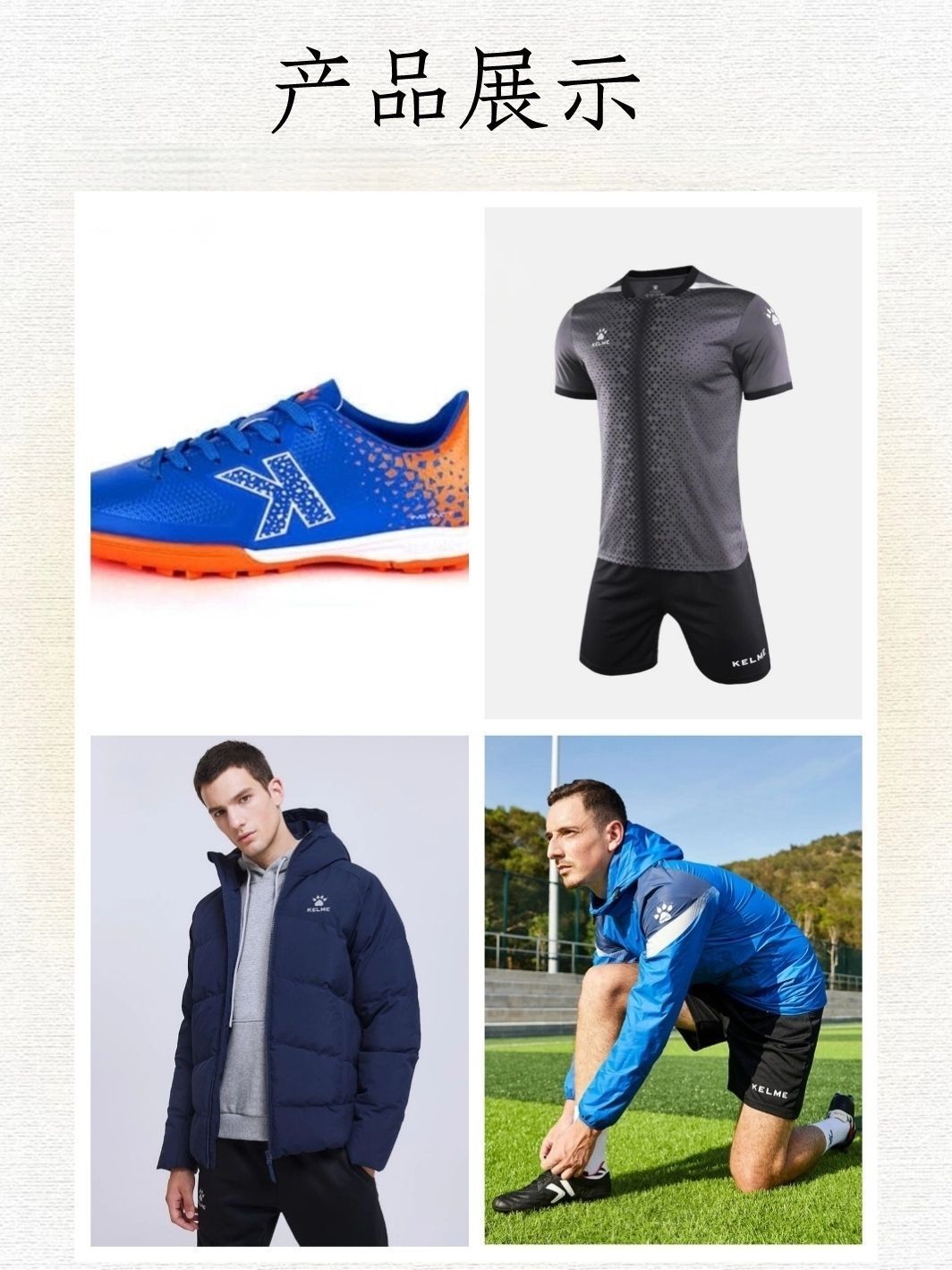 1、卡尔美(Kelme) 源自西班牙,创办于1963年,是西班牙著名运动品牌,创办人Quiles兄弟。1977年,KELME品牌在西班牙正式诞生。 2、2014年6月,卡尔美品牌进入中国。 卡尔美以足球用品为核心业务,集鞋、服装及配件的设计、研发、生产和销售为一体的综合性体育品牌。 3、卡尔美其品牌口号“永不言弃”(Never Give up),2016年开启全新品牌口号“印证奇迹”(Leave ...