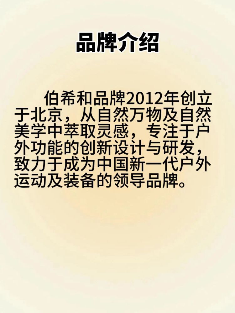 📆品牌介绍: 伯希和品牌2012年创立于北京,从自然万物及自然美学中萃取灵感专注于户外功能的创新设计与研发,致力于成为中国新一代户外运动及装备的领导品牌。 🏷️品牌理念: 回归自然WELCOME TO NATURE 🔆品牌主张: 适当远离都市喧嚣,乐享户外,舒缓心灵,感受人与自然的和谐共生 📚品牌故事: 品牌名是为纪念伟大法国探险家PAUL PELLIOT而创立的户外品牌。法国探险家伯希和(PAU...