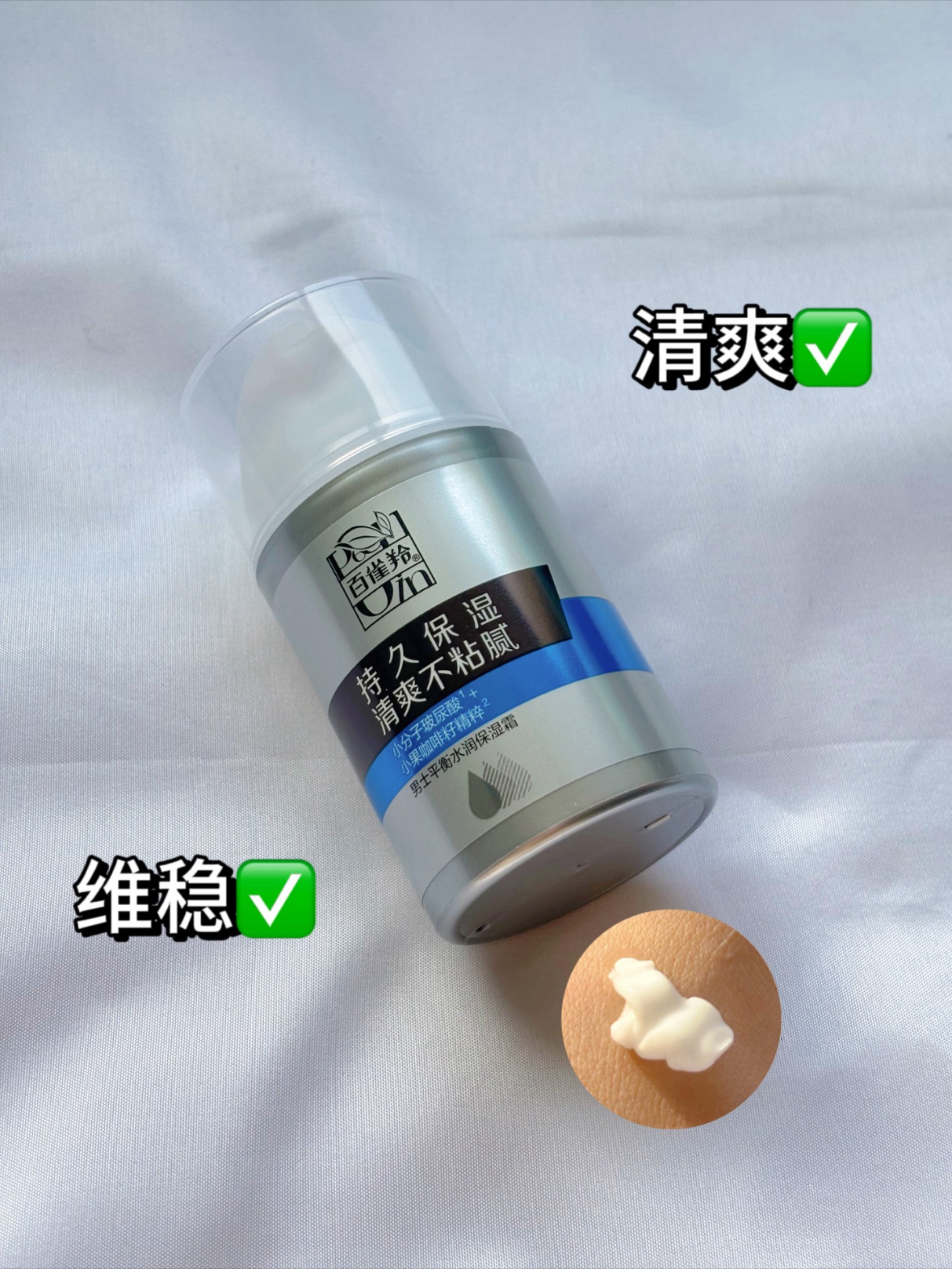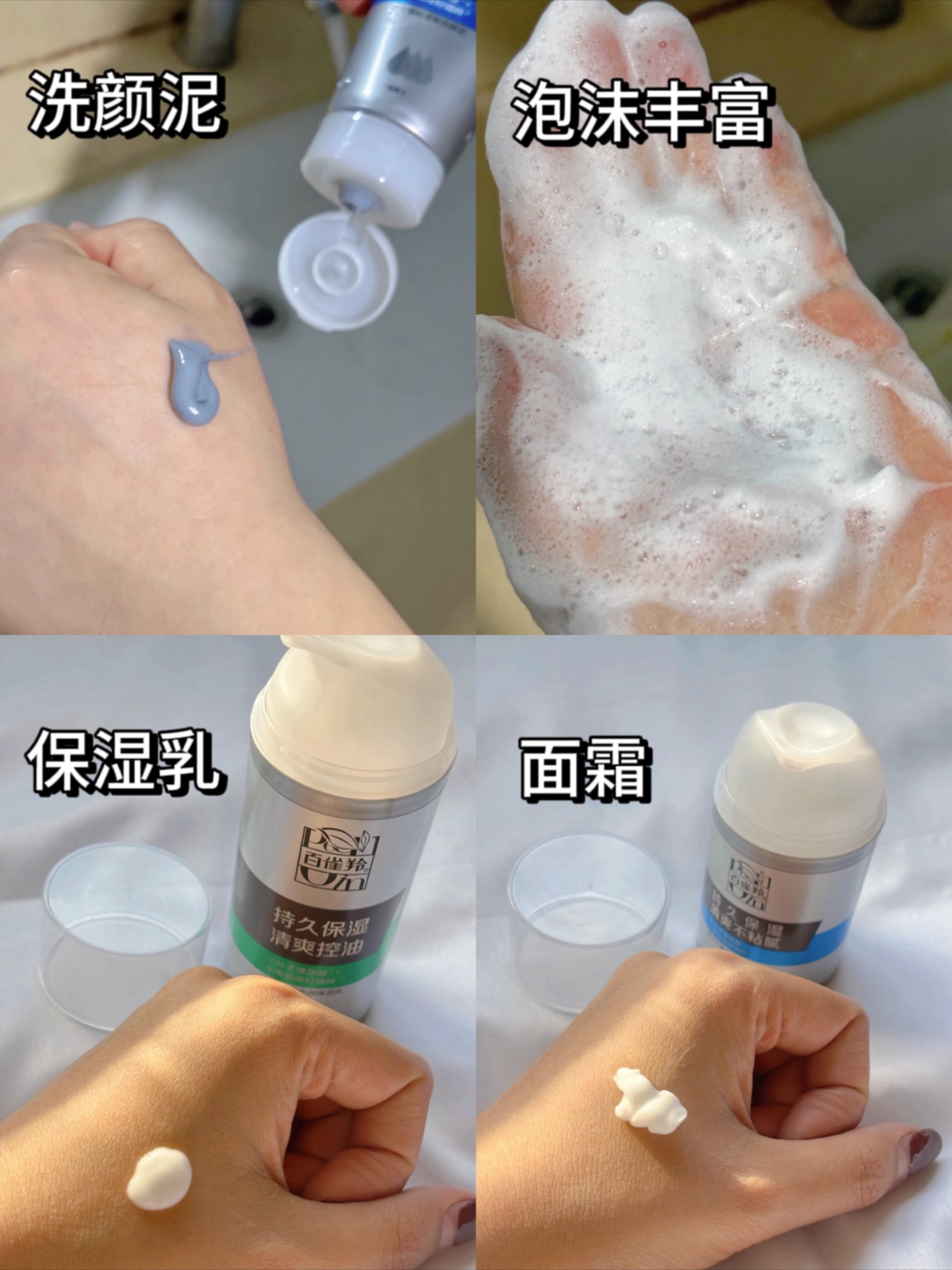 很多男孩子觉得护肤麻烦,瓶瓶罐罐太多,今天我就给大家推荐一款百雀羚的男士三件套,主打保湿+控油,适合护肤懒人 男士焕能清新洗颜泥:火山泥质地,淡淡的海洋香,加点水泡沫就很丰富,洗完之后没啥紧绷感 男士控油水润保湿乳:酸奶质地,挺水润的,轻透,吸收快 男士平衡水润保湿霜:质地稍粘稠,很好推开,不粘腻,不会闷。 洗颜泥-乳-霜,护肤就是这么简单,每天坚持颜值才能up哦,下个精致猪猪男大就是你~