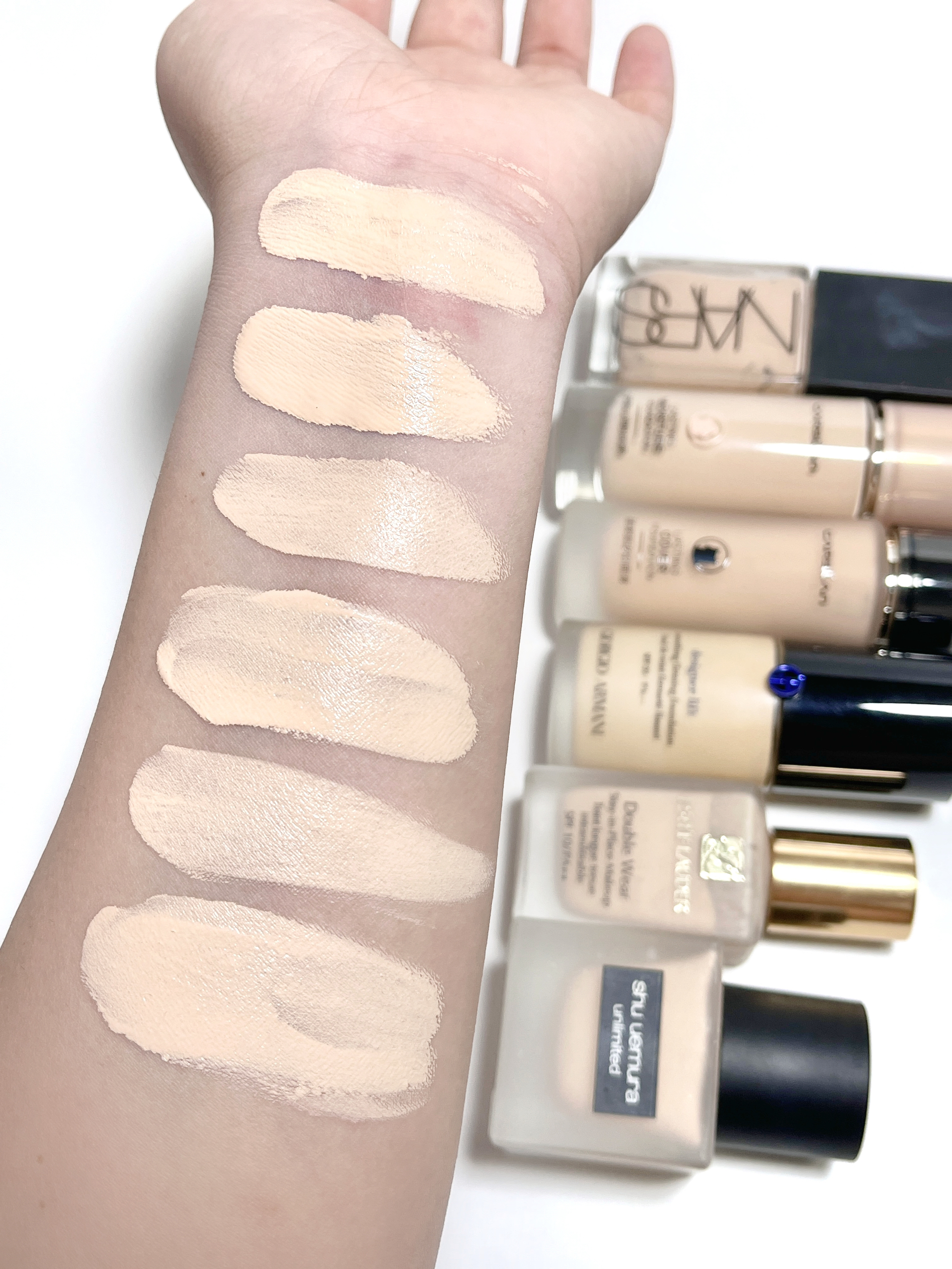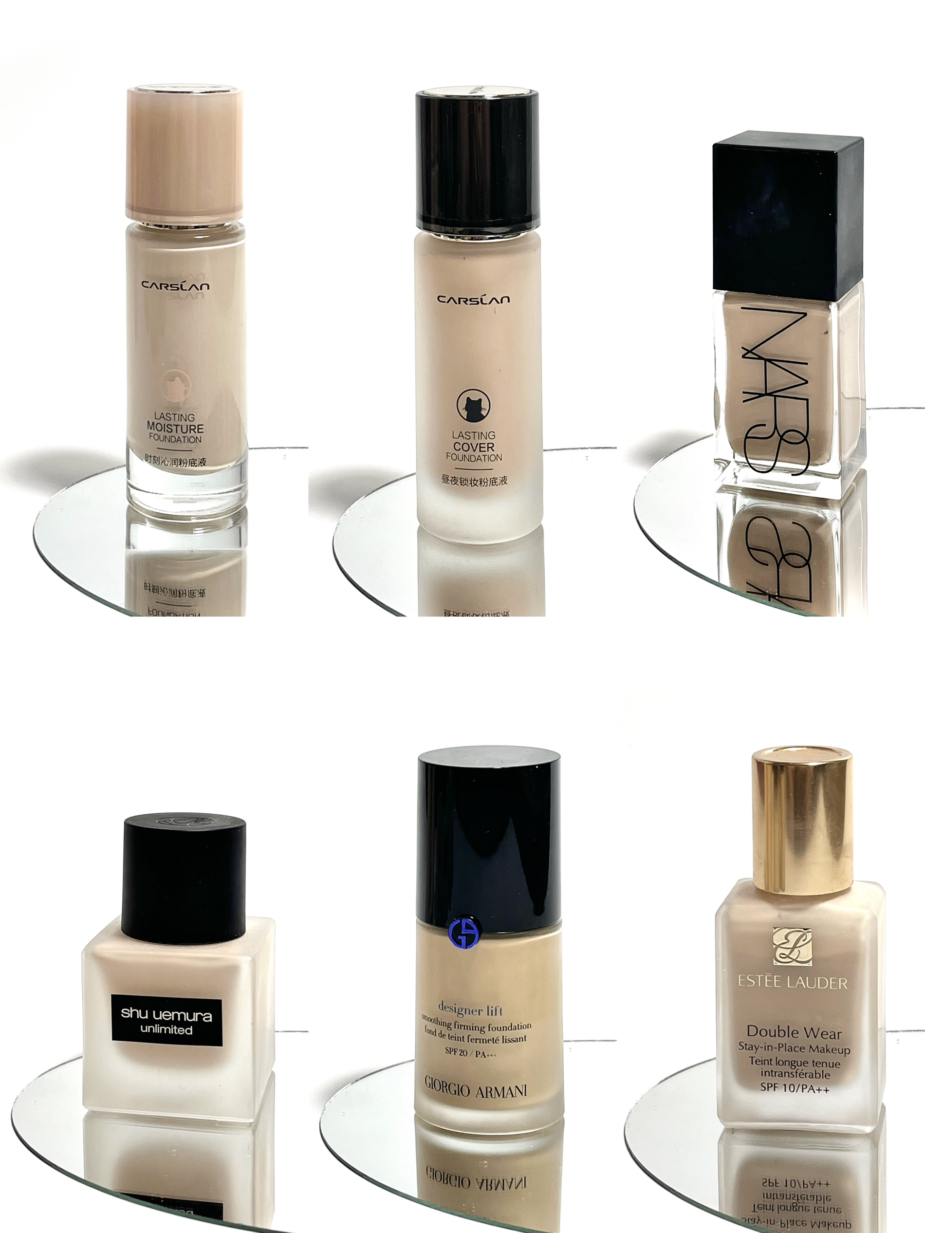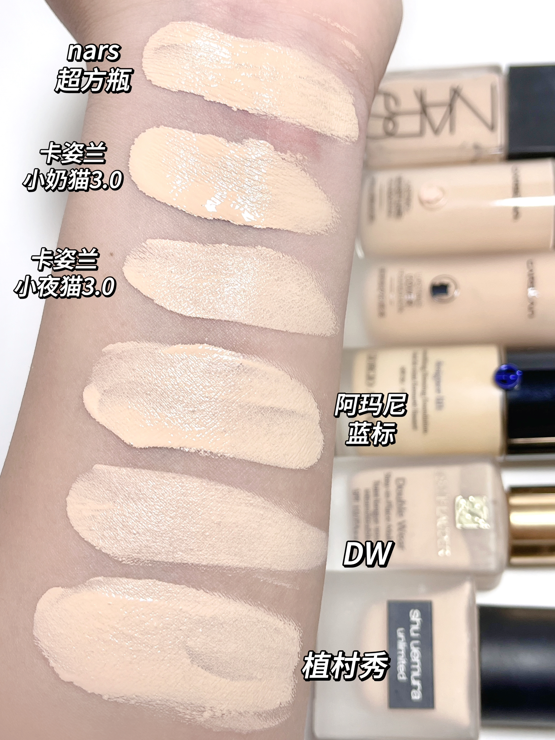 这几款是我夏日常用的粉底液 我是干皮鼻子易出汗 黄一白色 从平价到大牌持妆力都很zan! 上脸都好推开 妈生好皮即视感 而且这些粉质都挺细腻丝滑的 目前都没有脱妆斑驳的情况 个顶个的牛 把底妆焊在脸上了