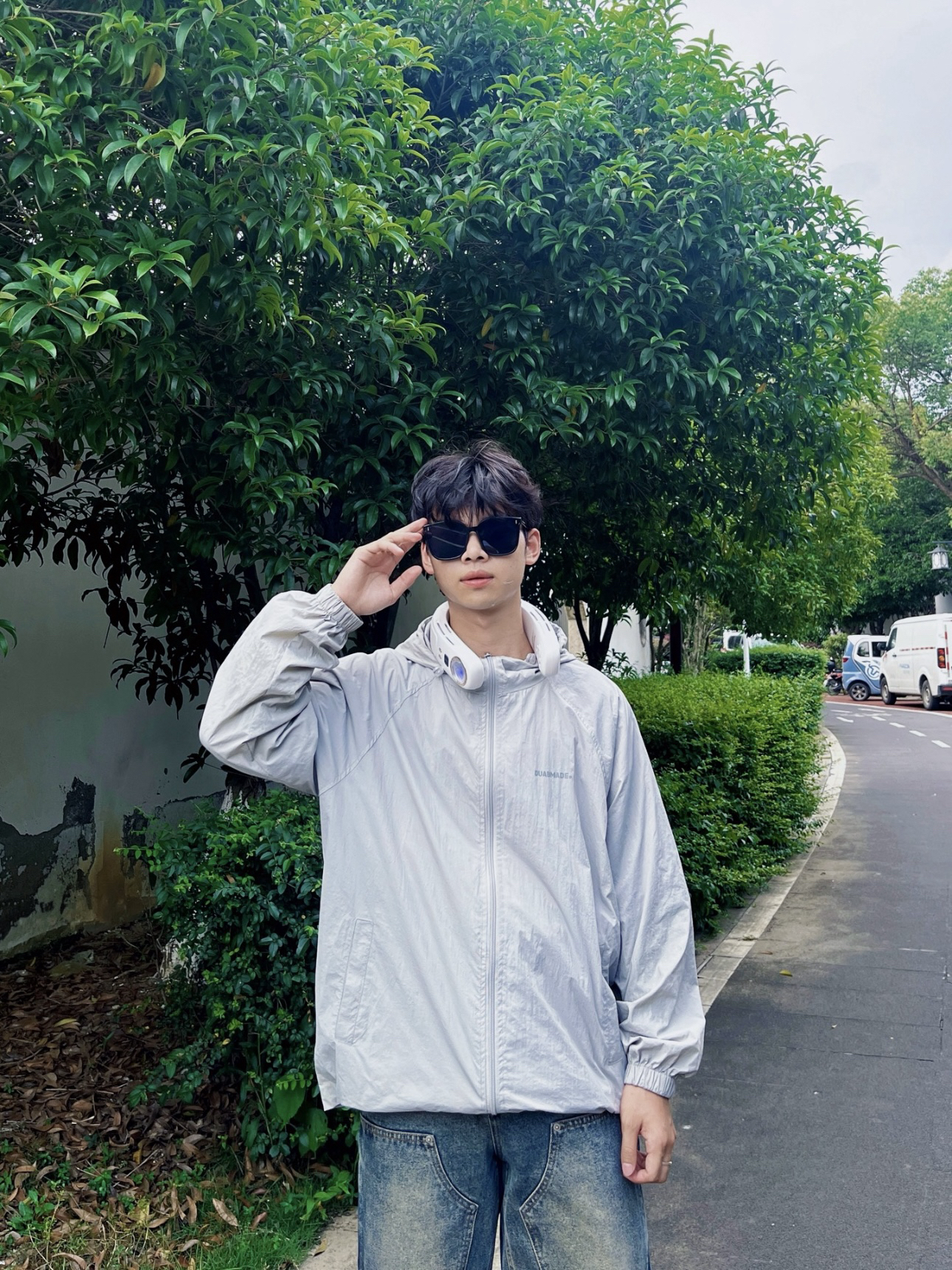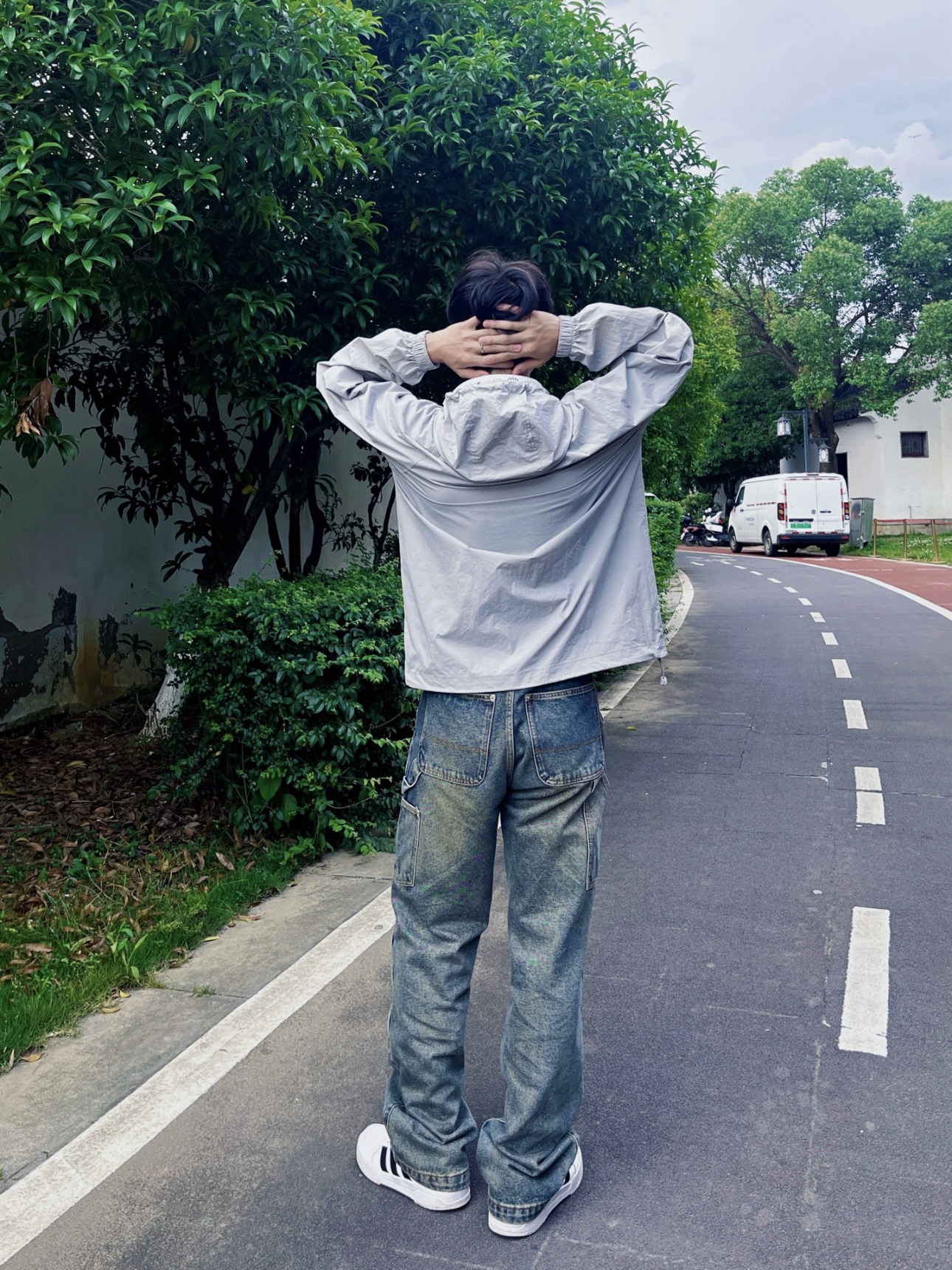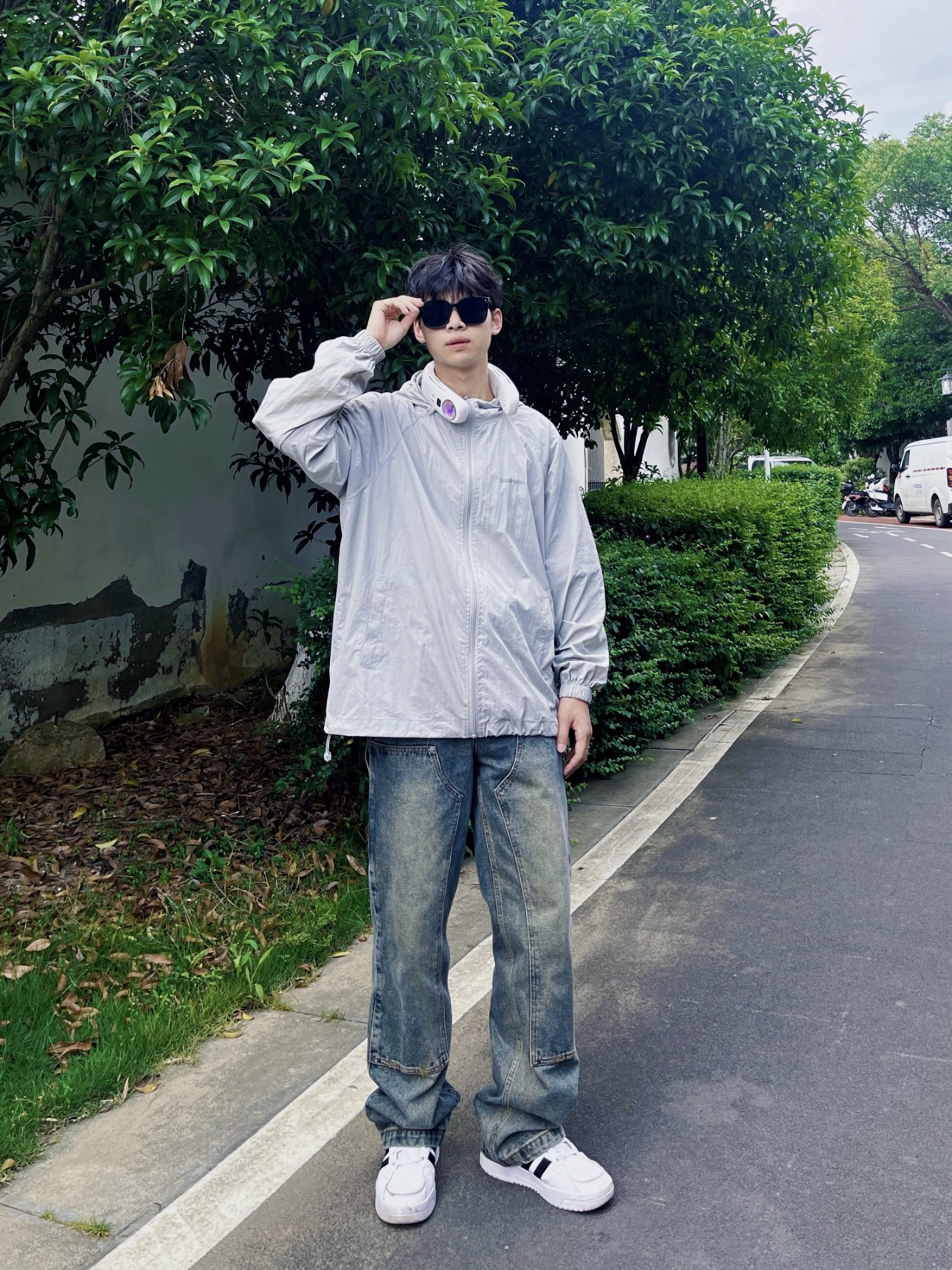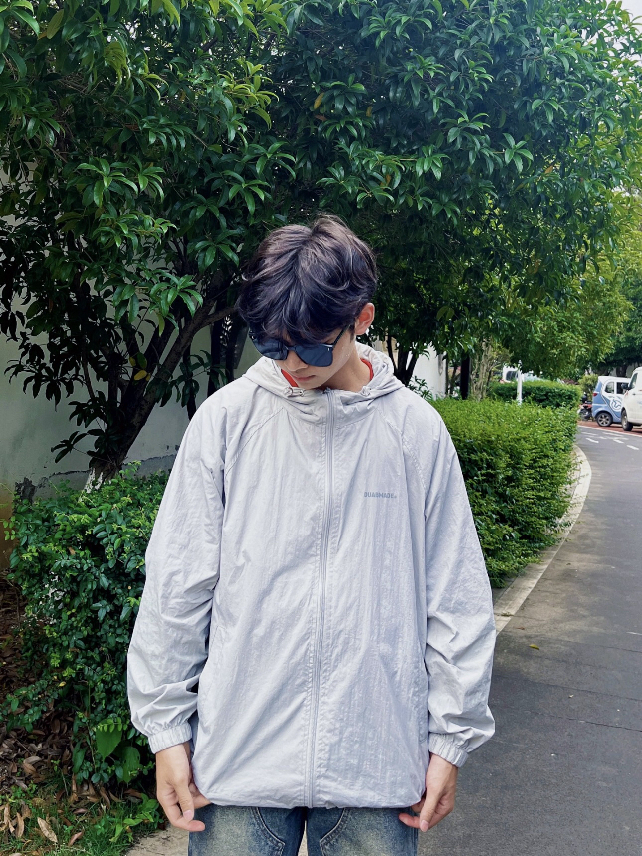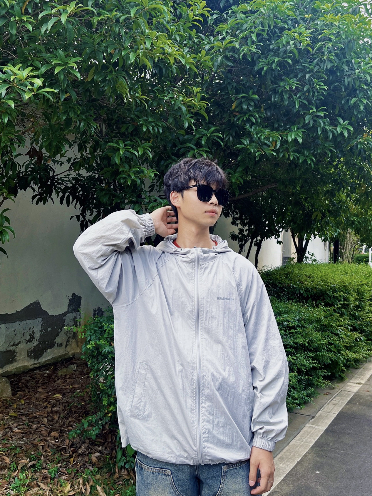 顶着35度烈日出门,一款好的防晒衣是必不可少的。 上衣👔:灰色防晒衣,颜值超高,防水和spf50+防晒,衣服在两侧还有帽子那都有抽拉绳设计最大限度的包裹了我们的肌肤,唯一的缺点就是不透气,会比较闷热。 裤子👖:美式牛仔裤,直筒版型,不挑身材面料硬挺有型,复古泥黄色,看起来更有质感。 鞋子👟:阿迪达斯的板鞋,简约好看易搭配。