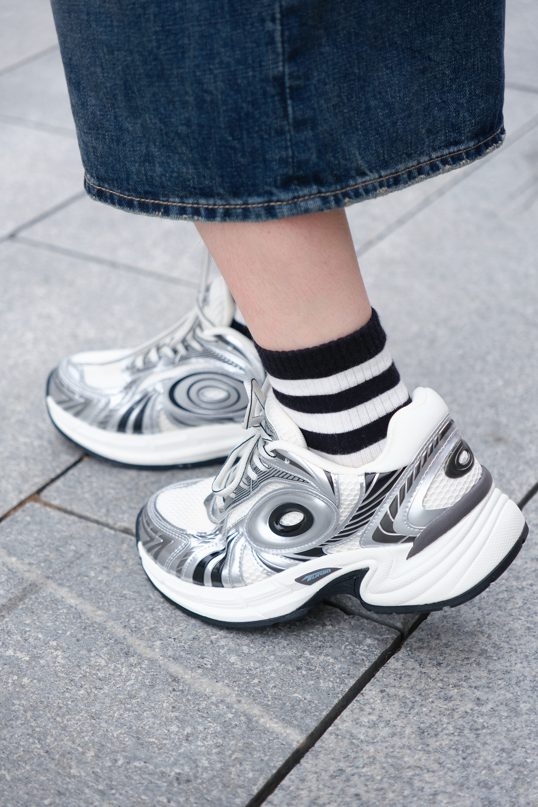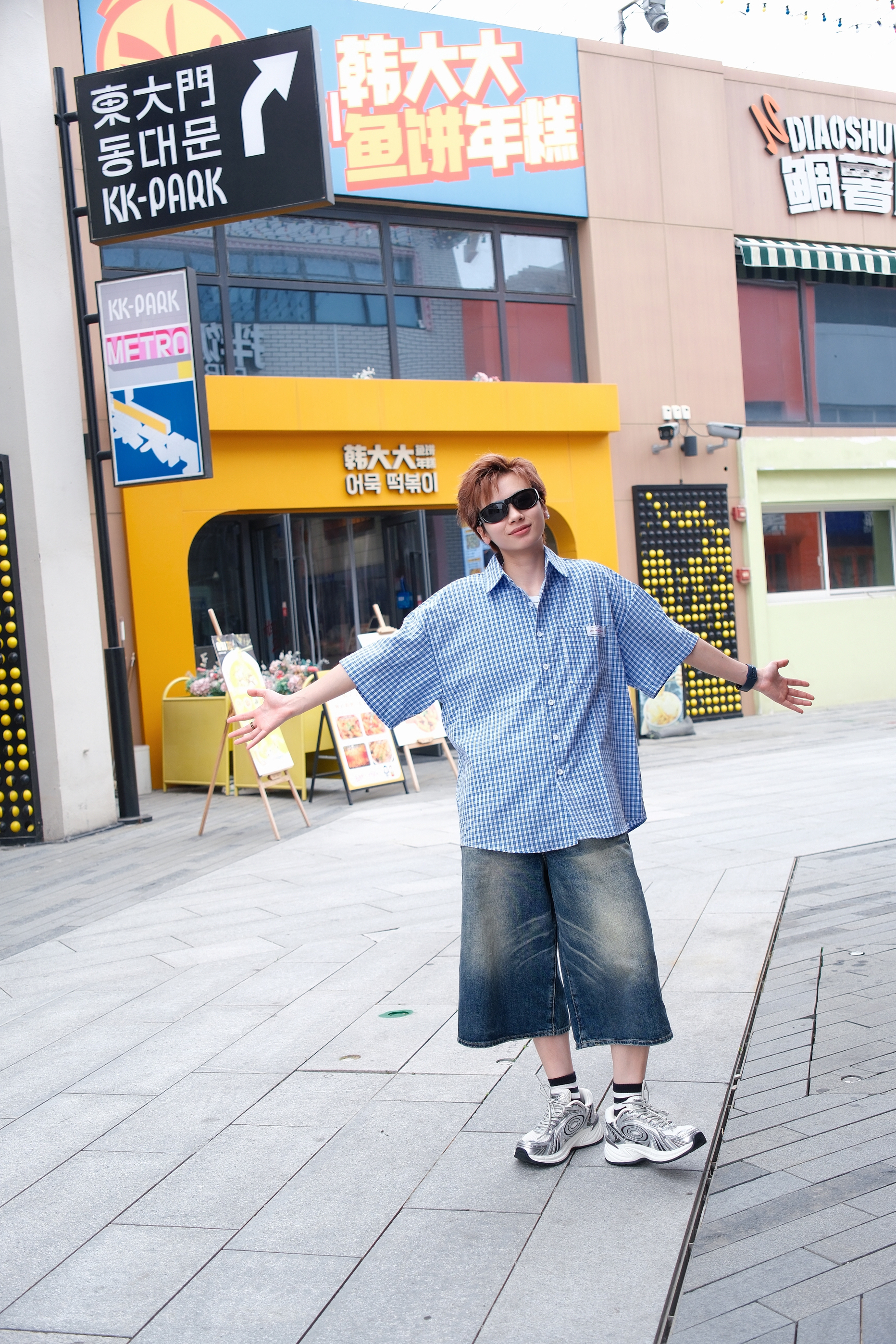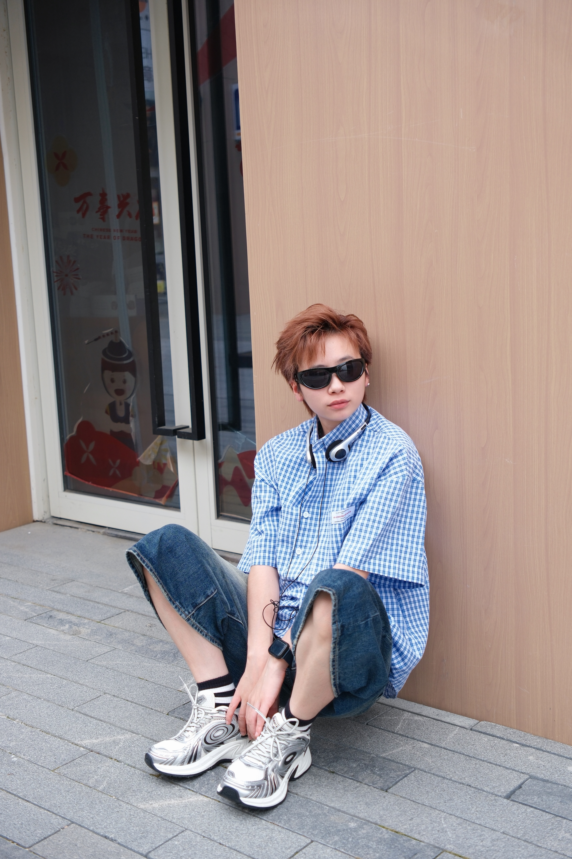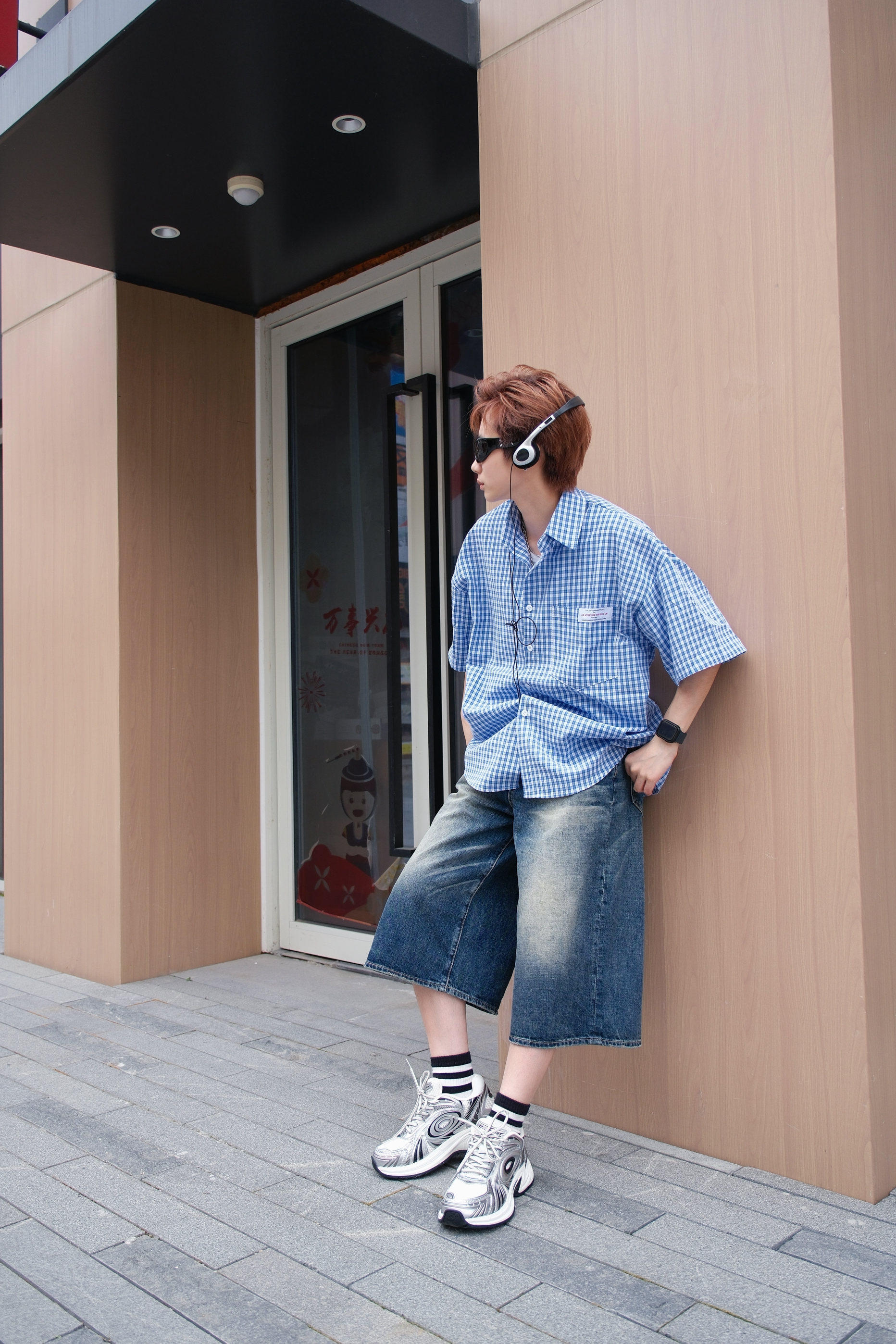 夏天穿中裤就很chill 最近很🔥的七分阔腿裤型,上身很显瘦 水洗做旧的蓝色,街头感十足 上衣搭配一件蓝格子衬衫,就比较干净清爽 最后来一点黑白条纹袜搭配old order的涡轮跑步鞋 白银配色非常百搭,侧边银色的线条感有点千禧复古风 网眼鞋面夏天穿,透气又舒服 厚底的设计,差不多增高4cm左右 上脚也很轻便✅