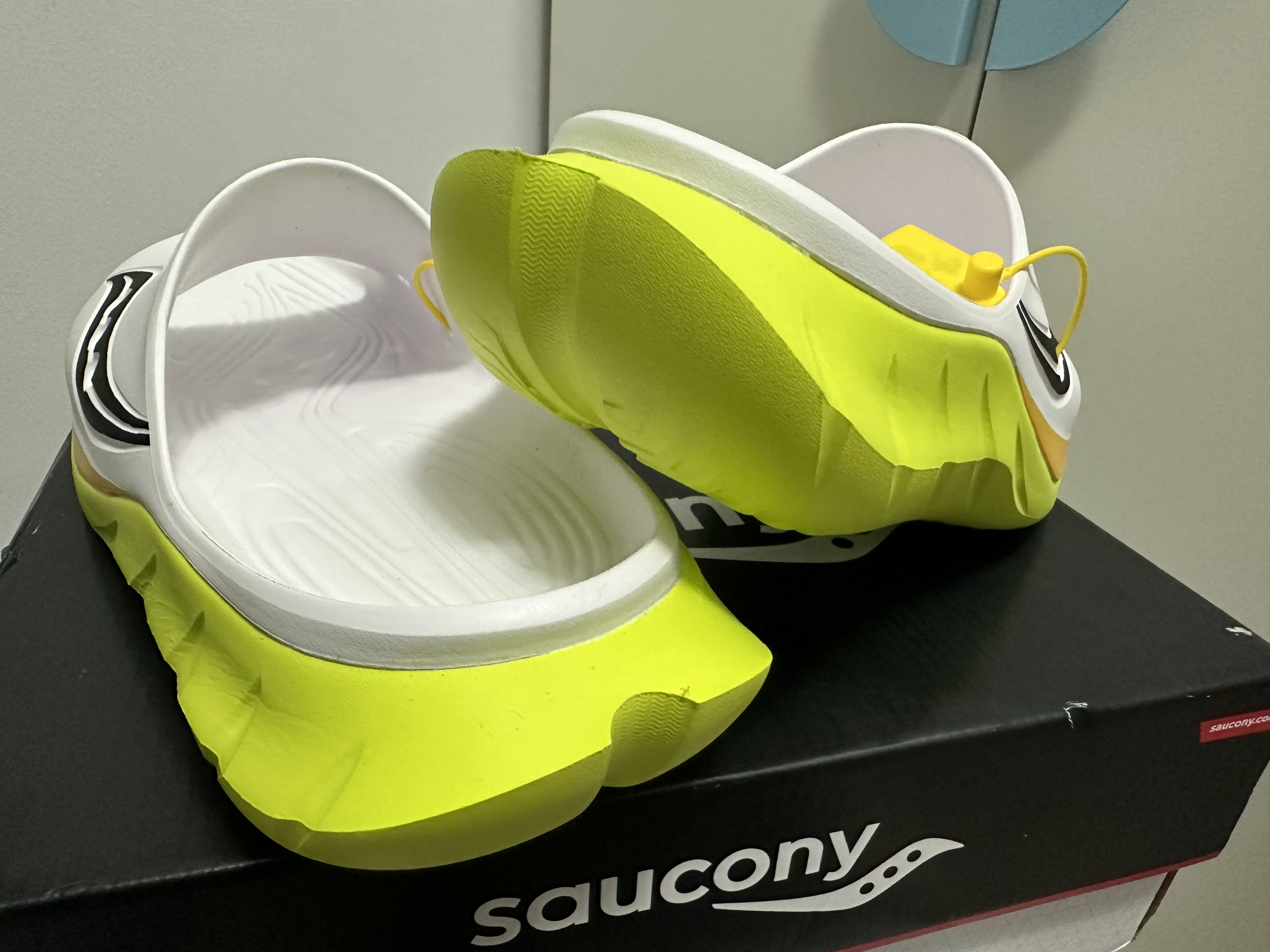 这双索康尼的拖鞋简直颠覆了我对拖鞋的认知😂 不知脚感舒服那么简单 还有一种觉得可以直接穿去公园跑步的拖鞋 找天真的可以穿去外面试试跑步😝 真心推荐没穿过索康尼的朋友可以去试试,怪不得最近那么多人买索康尼的跑步鞋去跑步,原来产品真的不错👍👍👍 拖鞋都已经惊艳到我了 粉了粉了…
