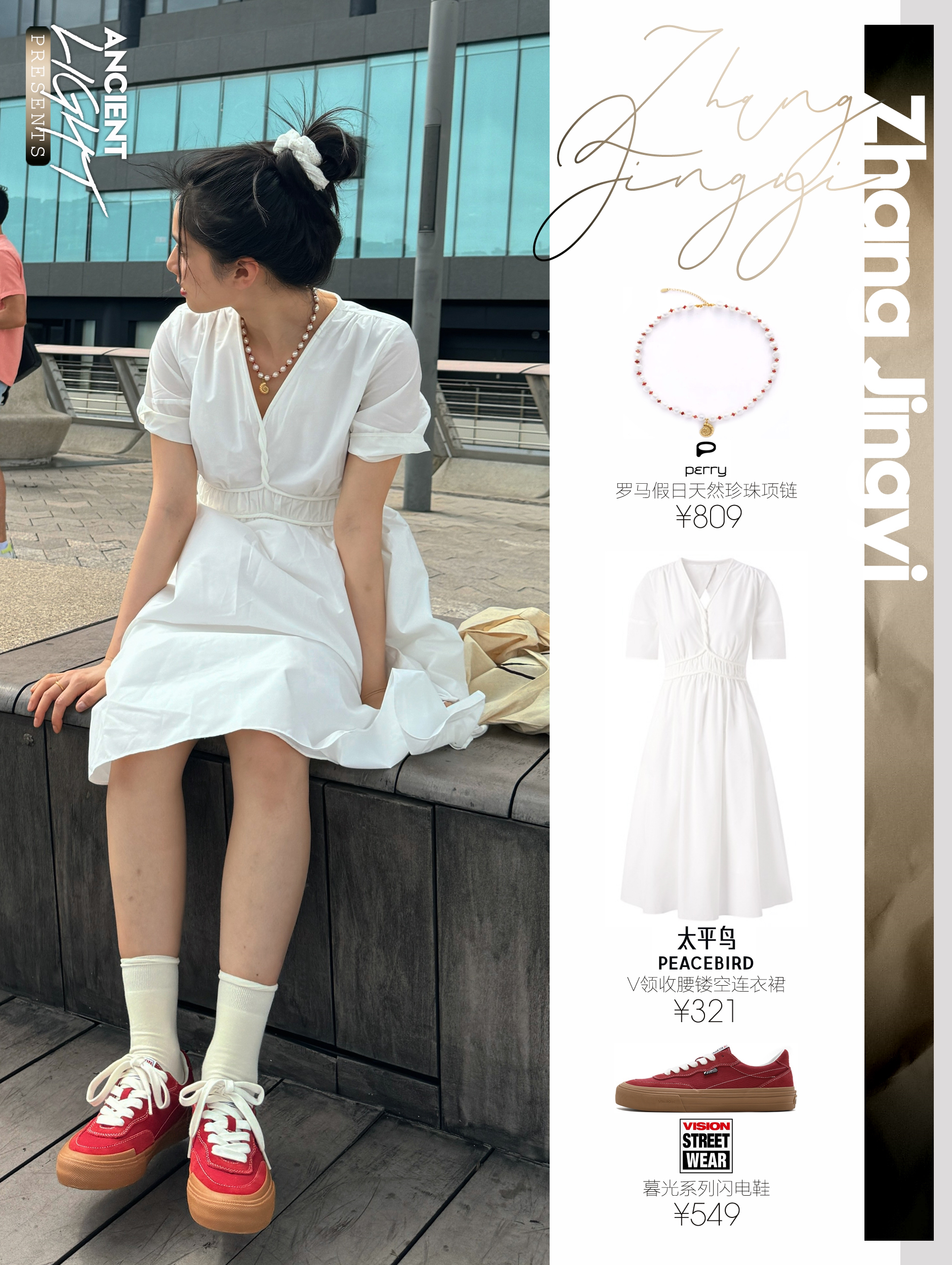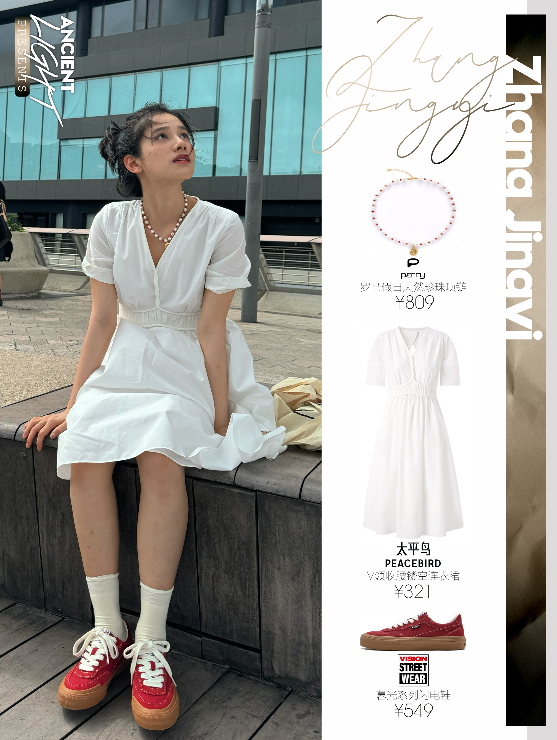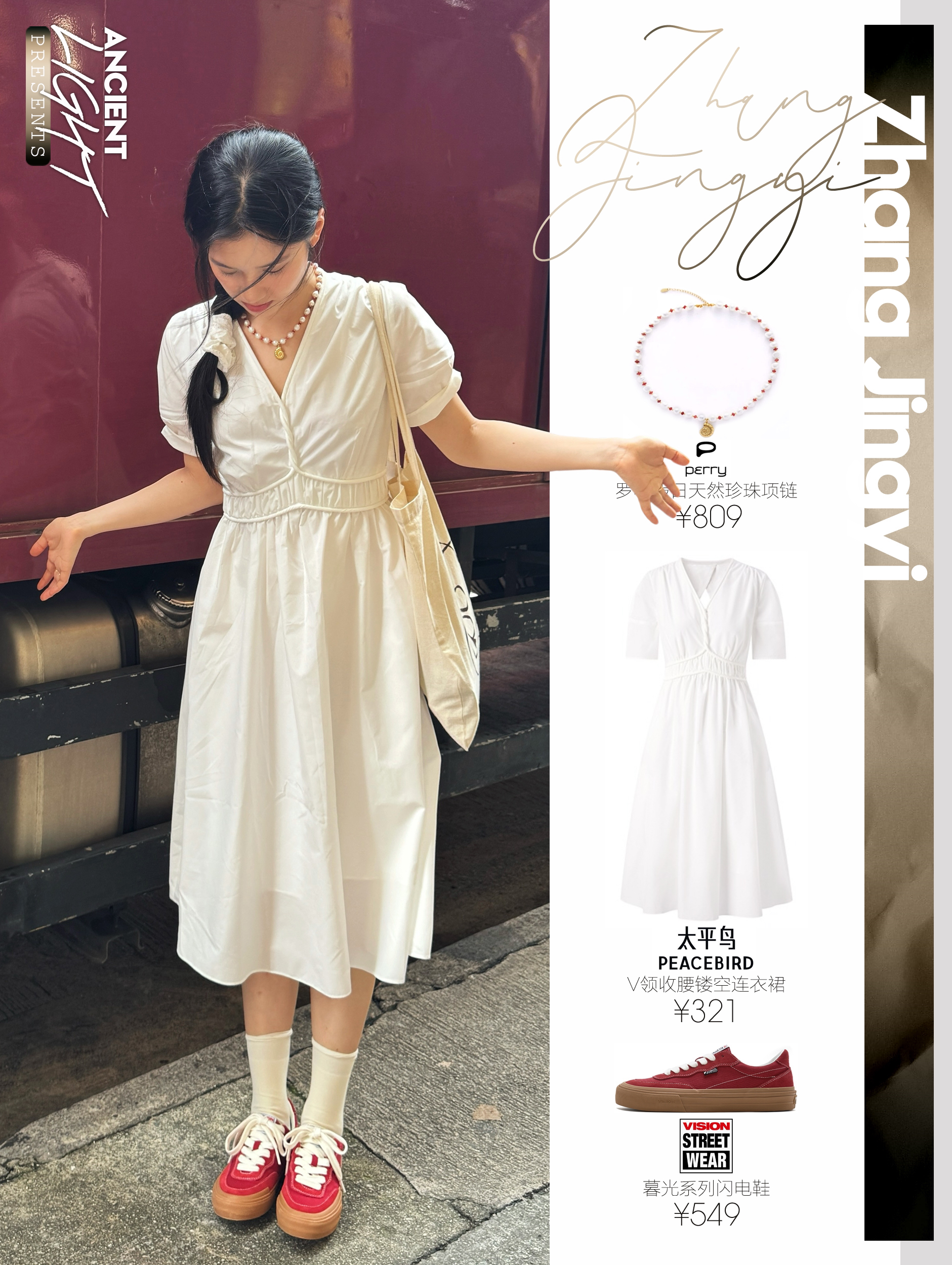继续在香港游玩的张婧仪最近会被很多粉丝偶遇,真是羡慕啊,可以和喜欢的人见到,白色的裙子搭配珍珠项链,就很公主气息,不修图就直接po图,喜欢这样的自然美,氧气感十足。 项链|perry罗马假日天然珍珠项链 服饰|太平鸟V领收腰镂空连衣裙 货号A8FAE212201 鞋履|VISION STREET WEAR Flat Top经典低帮板鞋 货号V233NY700804