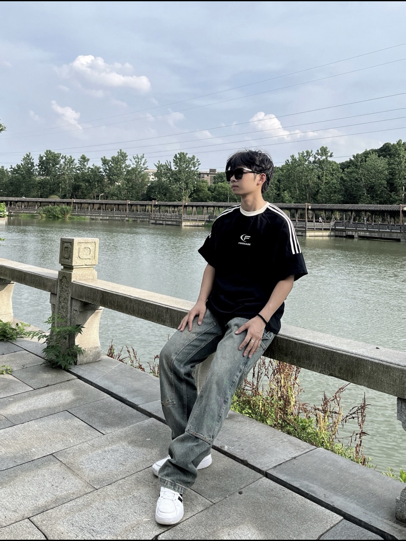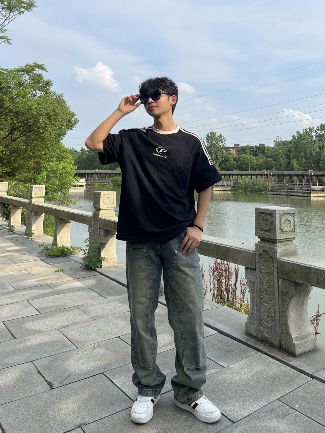 黄黑皮男生少年感穿搭分享,简直不要太好看心 上衣👔:国潮美式复古插肩短袖,衣服面料很好,版型很正,搭配牛仔裤和工装裤都可以。 裤子👖:美式牛仔裤,直筒版型,不挑身材面料硬挺有型,复古泥黄色,看起来更有质感。 鞋子👟:阿迪达斯的板鞋,简约好看易搭配。