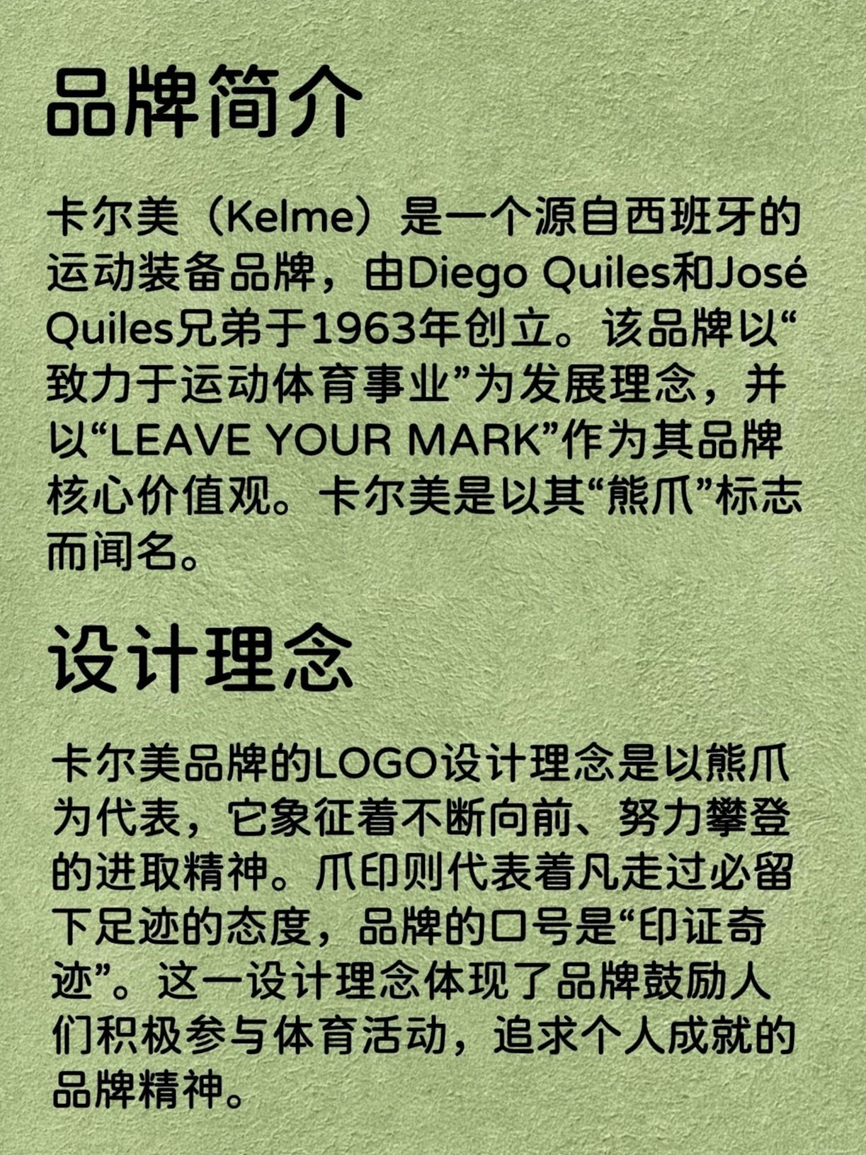 🌷卡尔美(Kelme) 源自西班牙,始于1960年,是西班牙著名运动品牌,创办人为Quiles兄弟。 🌷2014年6月,卡尔美品牌正式进入中国。2018年12月,卡尔美体育用品有限公司(中国)与卡尔美(西班牙)双方达成协议,成为中国资本、中国制造主导的世界级体育用品品牌。 🌷卡尔美体育是一家集体育用品研发、设计、制造、销售;体育赛事(活动)组织承办、体育场馆经营、体育传播等业务的综合性体育产业公司...