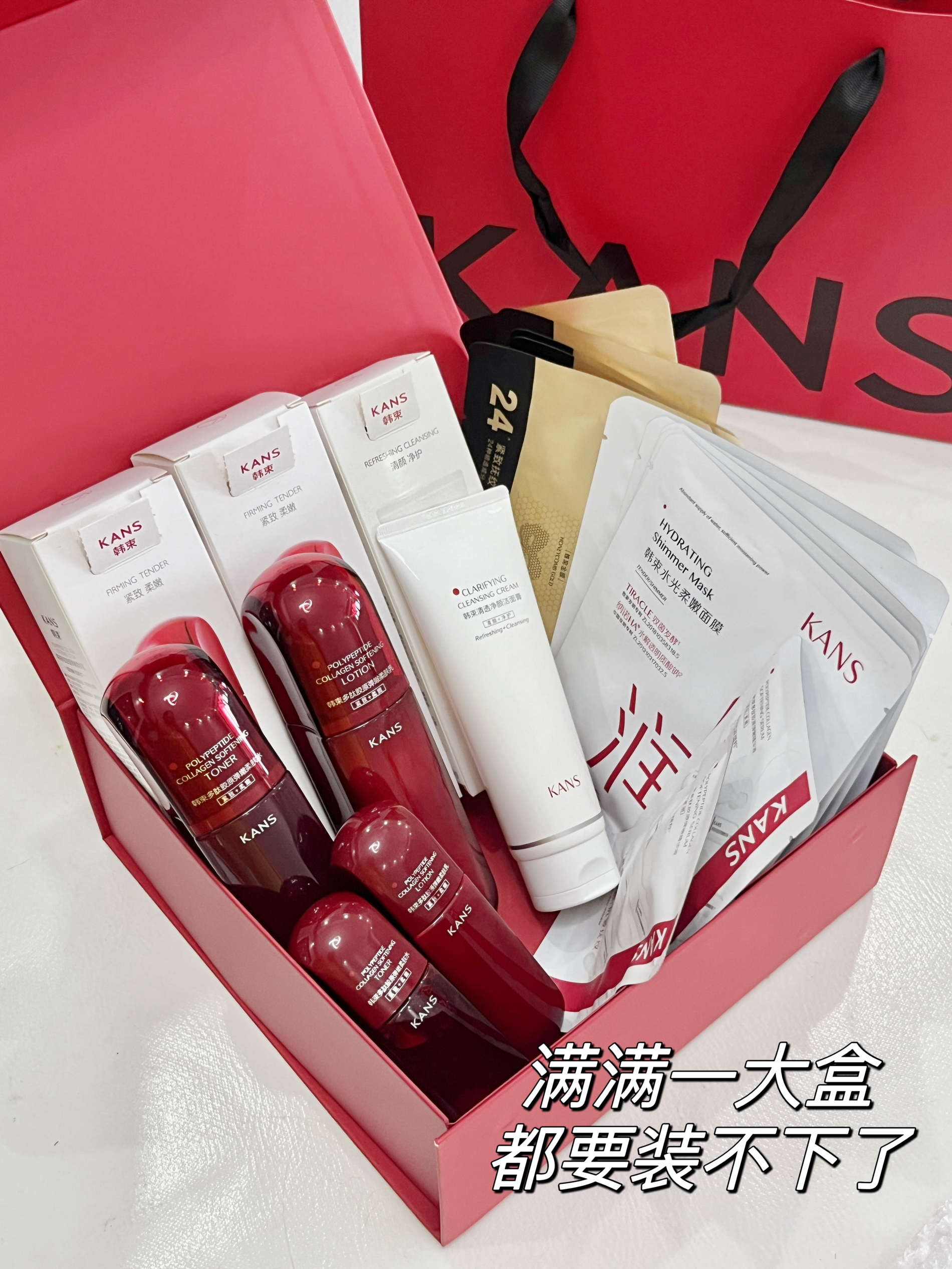 试问哪个女孩不想要啊,这一套真的好有仪式感啊 韩束真的好会啊,三件套竟然送了这么多赠品 差点都摆不下了呢 主要是洗面奶和水乳,对付经常熬夜暗沉的皮肤 还送了10片面膜,次抛精华,水乳旅行装 而且质地都比较清爽,夏天用也是0负担哦 不担心会油腻,清清爽爽的过夏天!