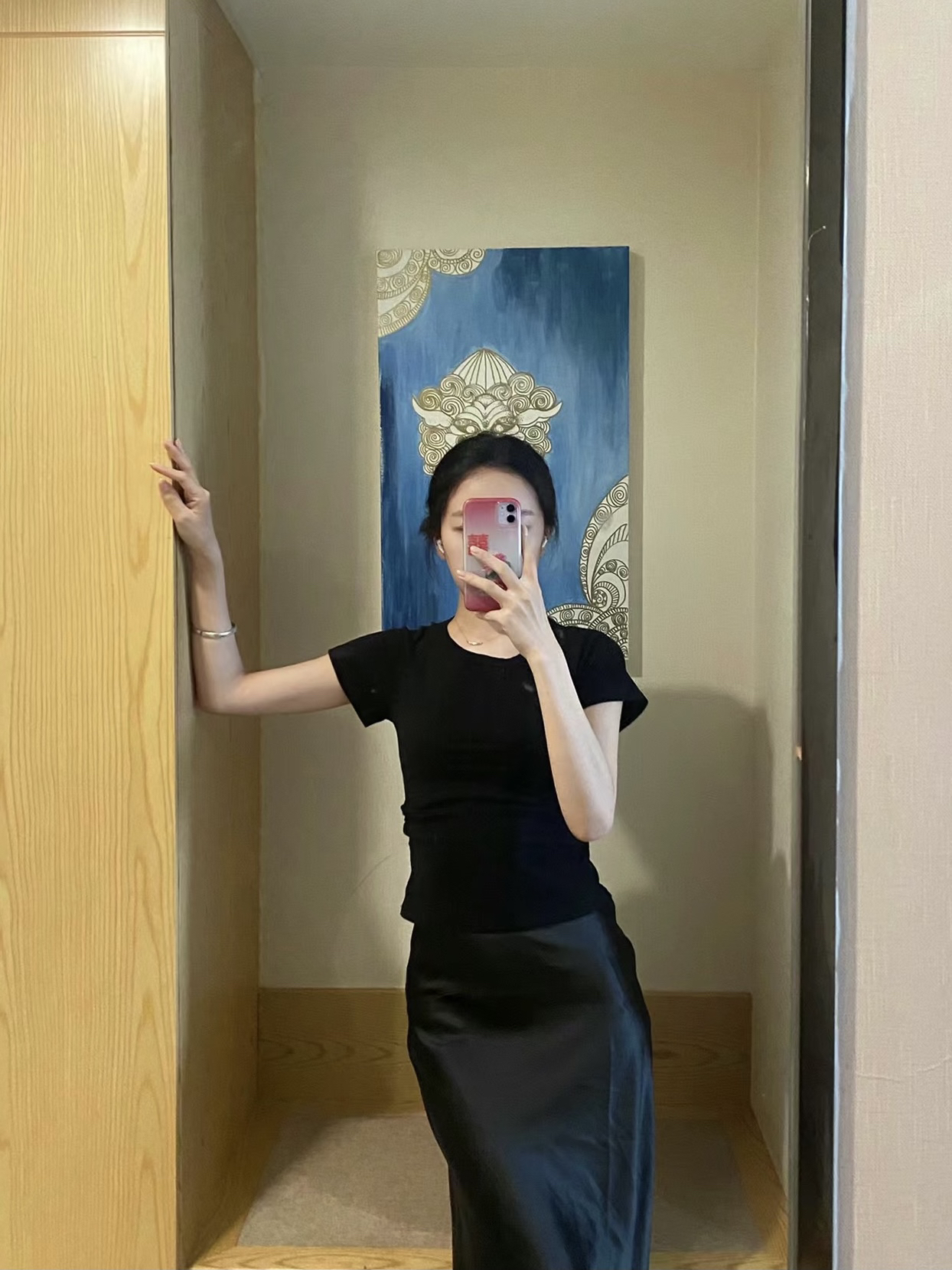 作为一个梨形身材的的人 选裙子是最纠结和痛苦的事情 纠结好久入的醋酸半身裙 质感和光泽都嘎嘎好!! 梨形身材的姐妹🉑️冲!!