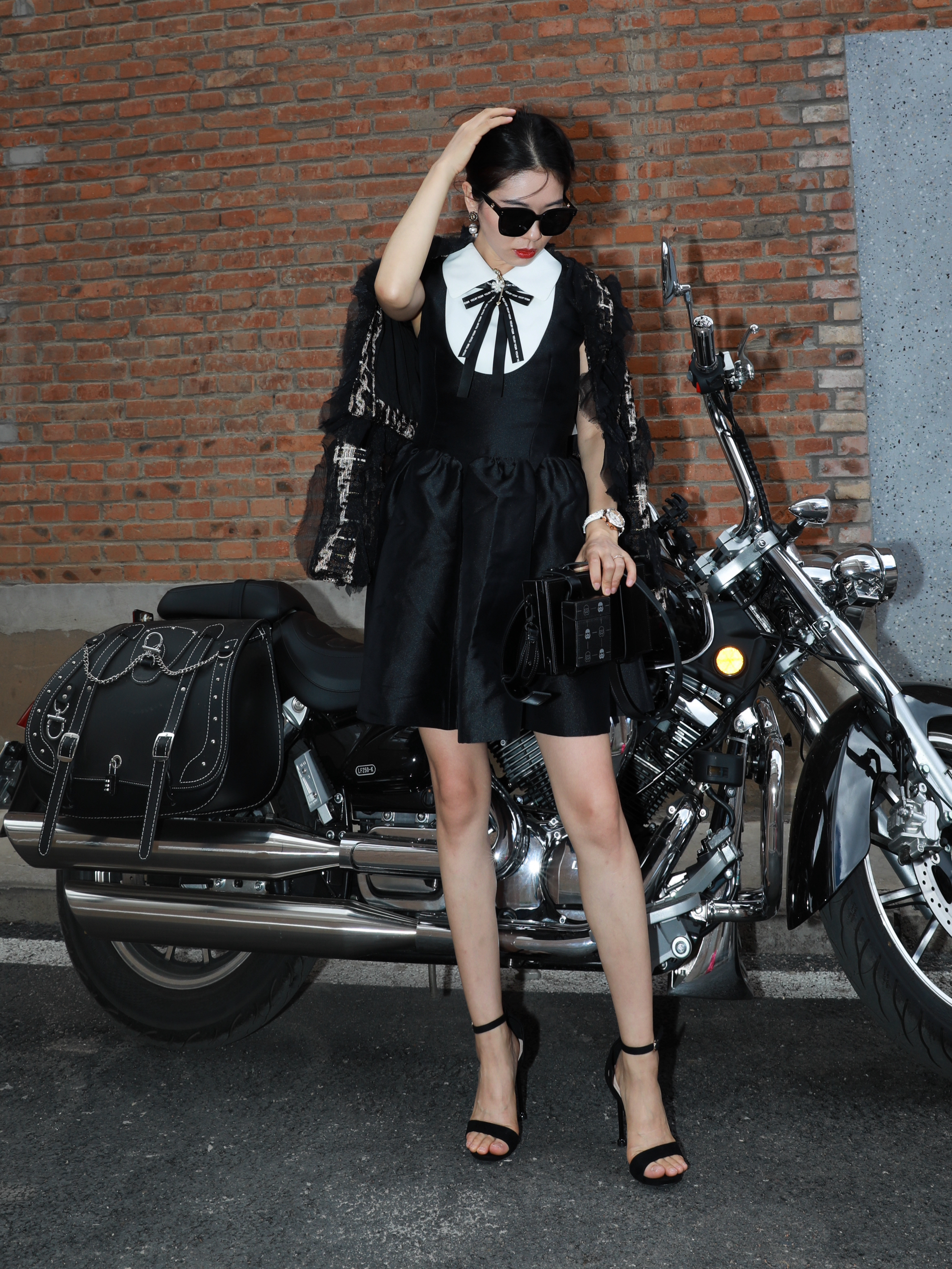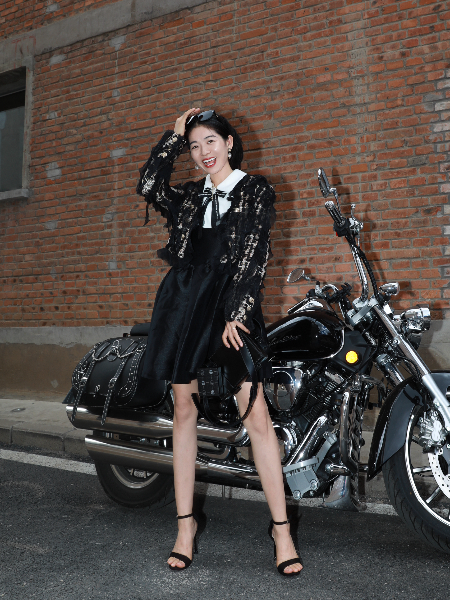今年彻底get了小香风的好 真的可法式可港风还可以甜酷~ 百搭小甜心🤩必须给你们看看 一件Charlie Luciano的夹克 黑金色真是贵气呢🥰 设计感拉满,材质很舒服,贴肤无压力 搭配小香风的裙子…绝上加绝 妥妥的Celine风女孩显瘦又好看! 站在我的机车旁边,哼 生人勿近,气场王没错儿了🤏