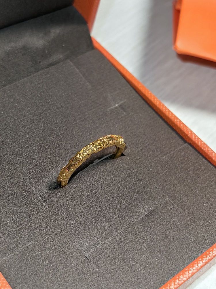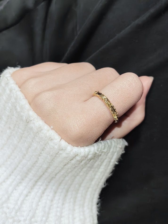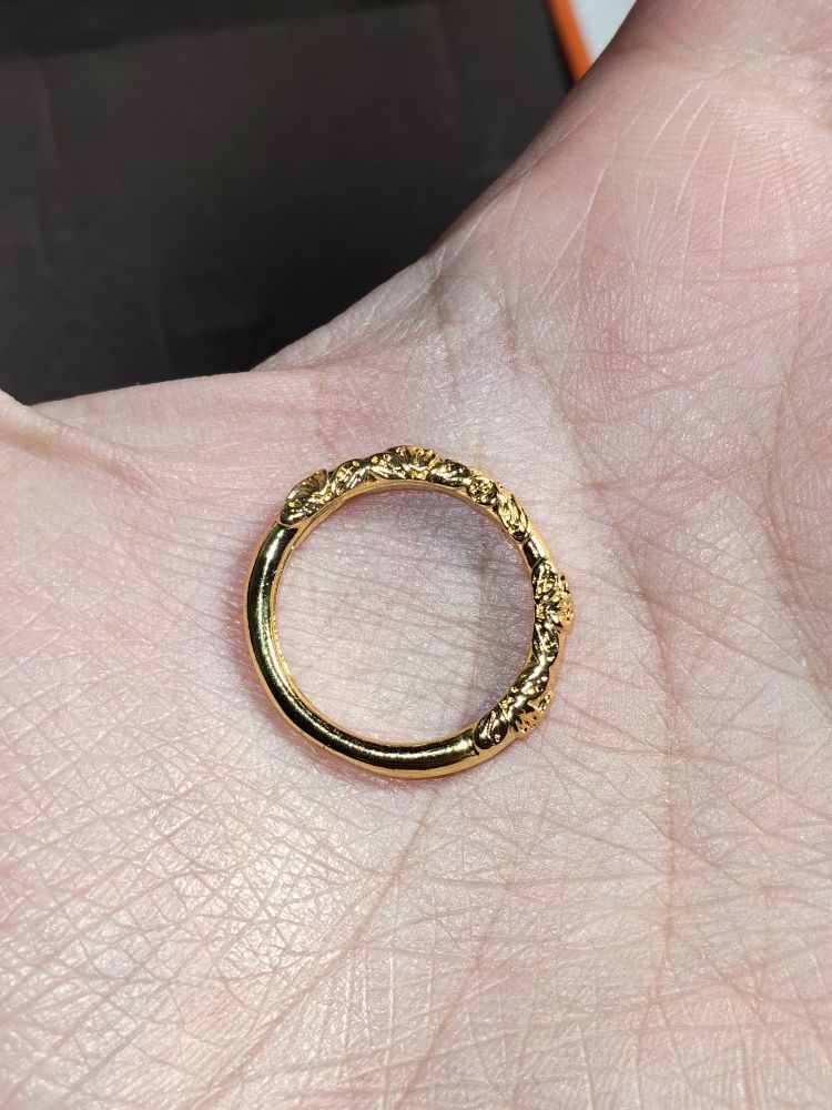 前几天买了第一个黄金戒指。做工很好,而且真的金光闪闪~戴在手上主打一个简单大气。紫荆花的设计蕴含许多美好含义和寓意。送母亲送女友也很合适~