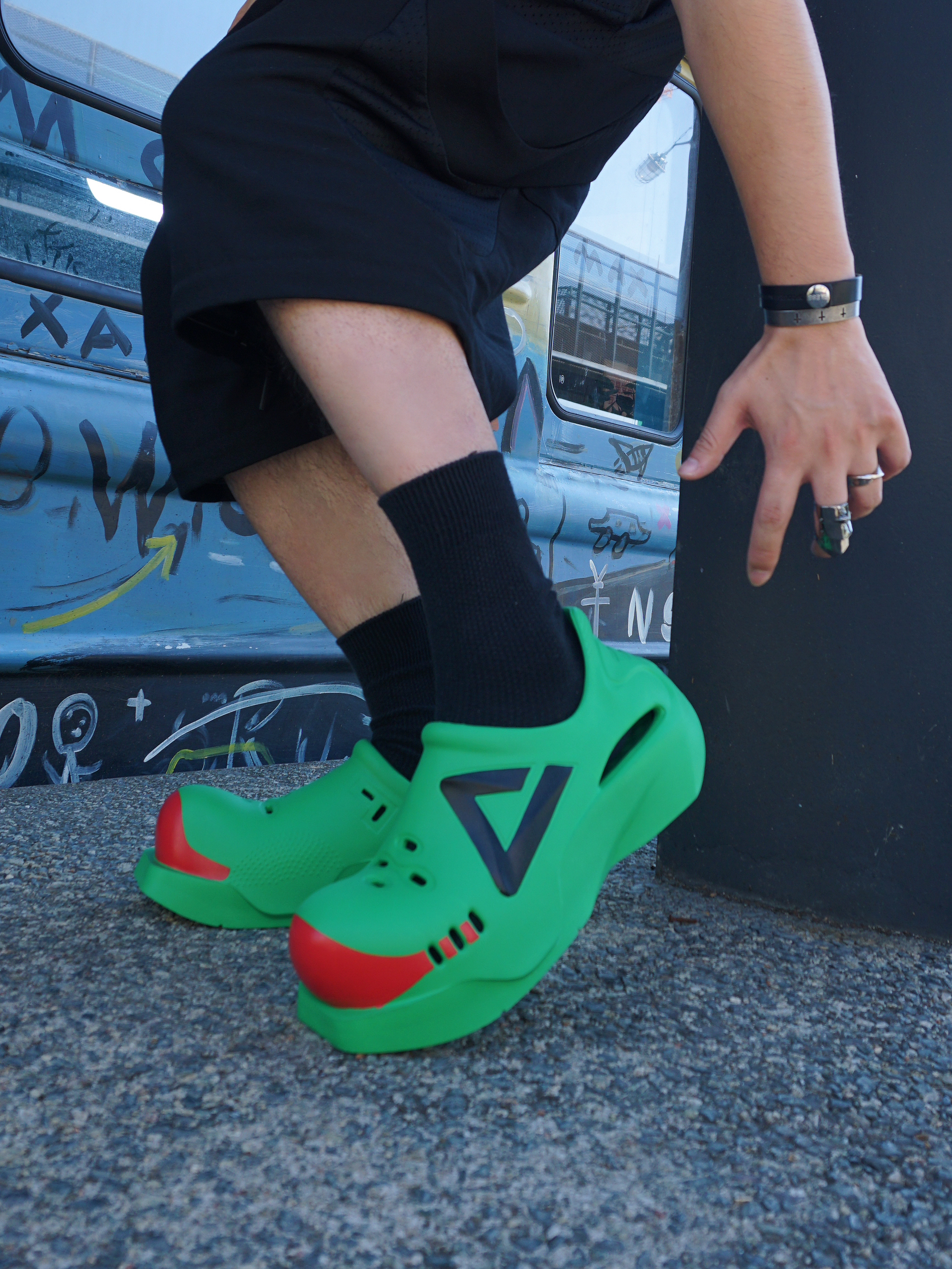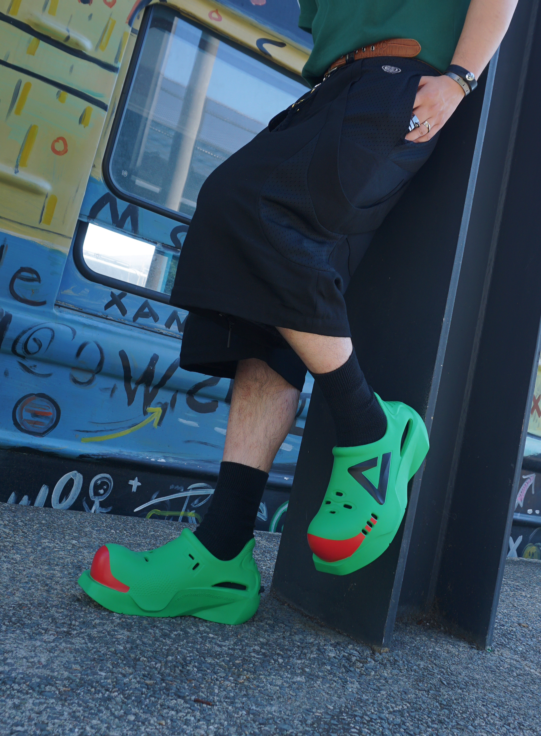夏日顶男出街让开❕我的鞋子会变形💚~ 这你受得了吗哈哈😆帅出别样的高级度🌪, 不允许任何人不知道我的鞋子会变形💡❗ 为心头爱的 匹克 态极嘟嘟鞋搭了造型: 黑绿配💚绿色解构短袖➕阔腿短裤叠搭, 运动型男or街头酷盖🛹都能拿捏New Vibe~ 除了墨镜贝雷帽🏴点缀细节给到风格之外, 近期天天出门都穿的匹克嘟嘟鞋🍉太乖了吧❕ 一鞋两穿----随时变换人字拖🩴或洞洞鞋, 日常通勤随意纵横各种风格🔥爱...