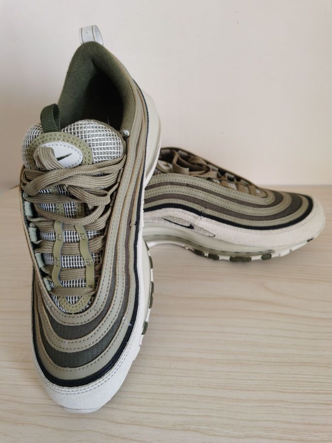 本篇笔记关联了Nike Air Max 97 跑鞋 气垫减震全掌舒适透气防滑耐磨百搭复古织物合成革运动时尚圆头包裹性支撑 墨绿色/棕色等商品,为用户提供真实的使用体验和购买参考。