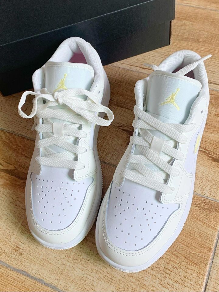 本篇笔记关联了Air Jordan 1 板鞋 运动休闲鞋 复古潮流支撑合成革 GS/纯白色/黄色等商品,为用户提供真实的使用体验和购买参考。