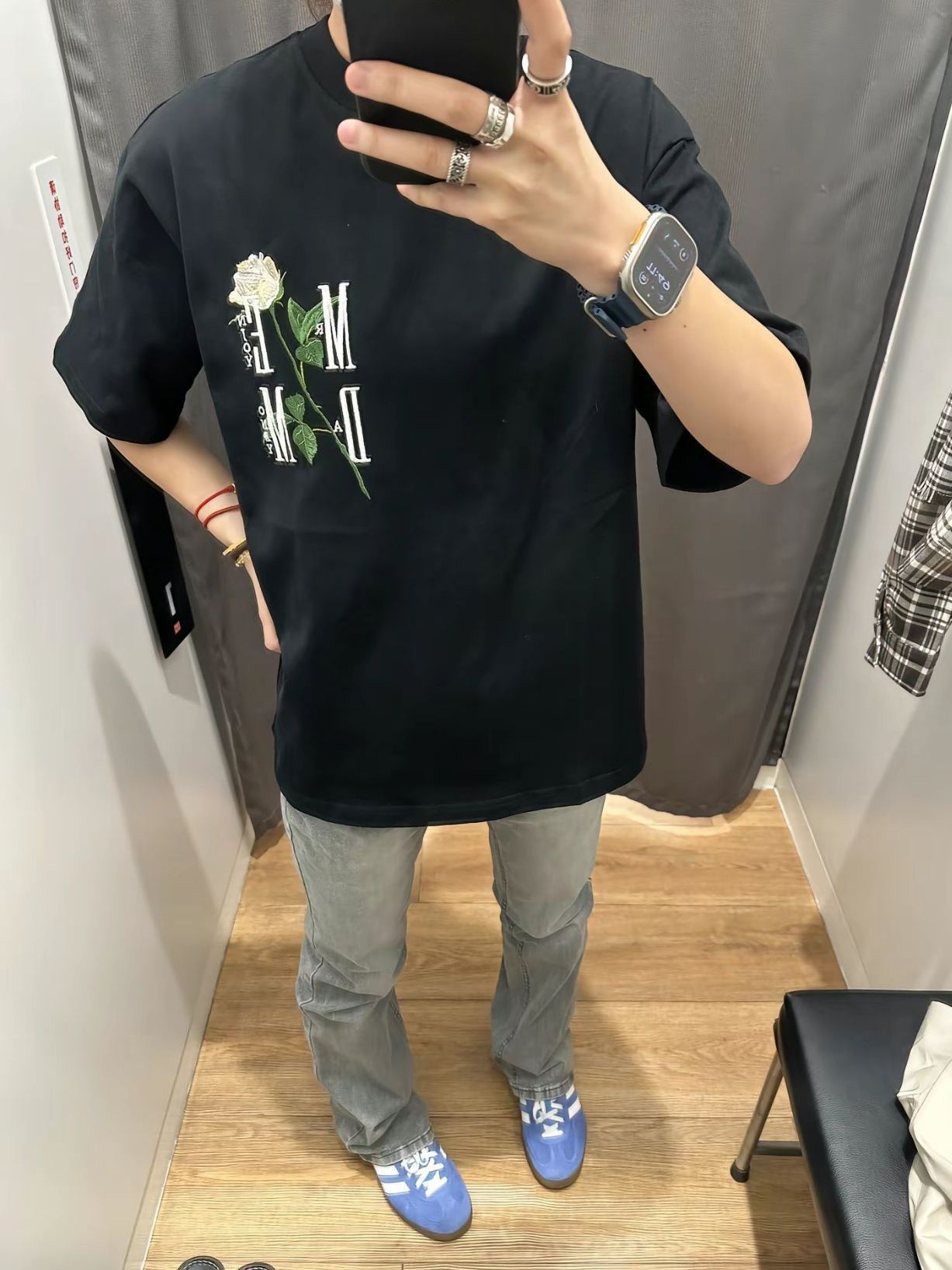 本篇笔记关联了【梓渝同款】MEDM 街头白玫瑰花立体刺绣圆领短袖T恤 MEDM00337 黑等商品,为用户提供真实的使用体验和购买参考。