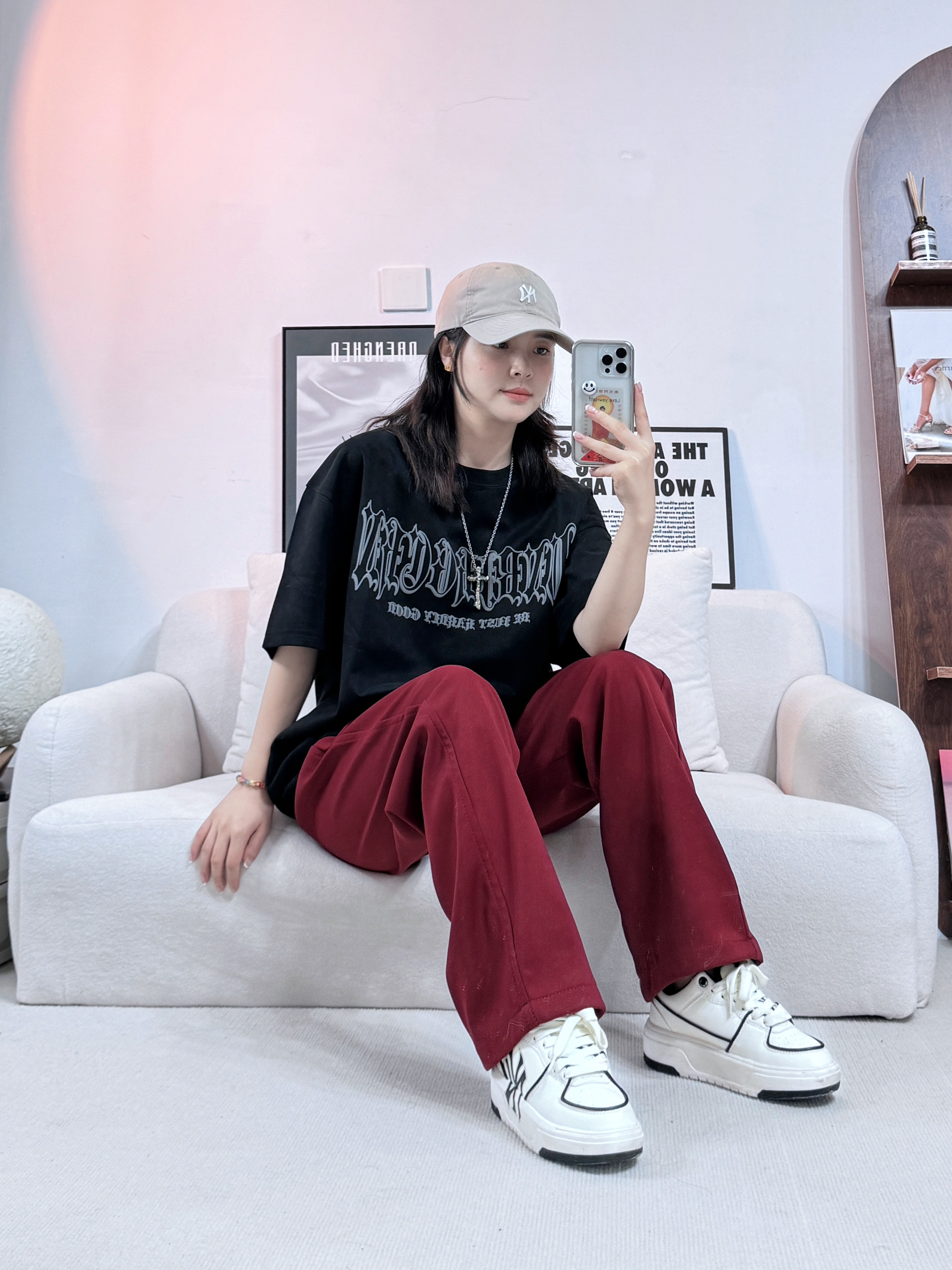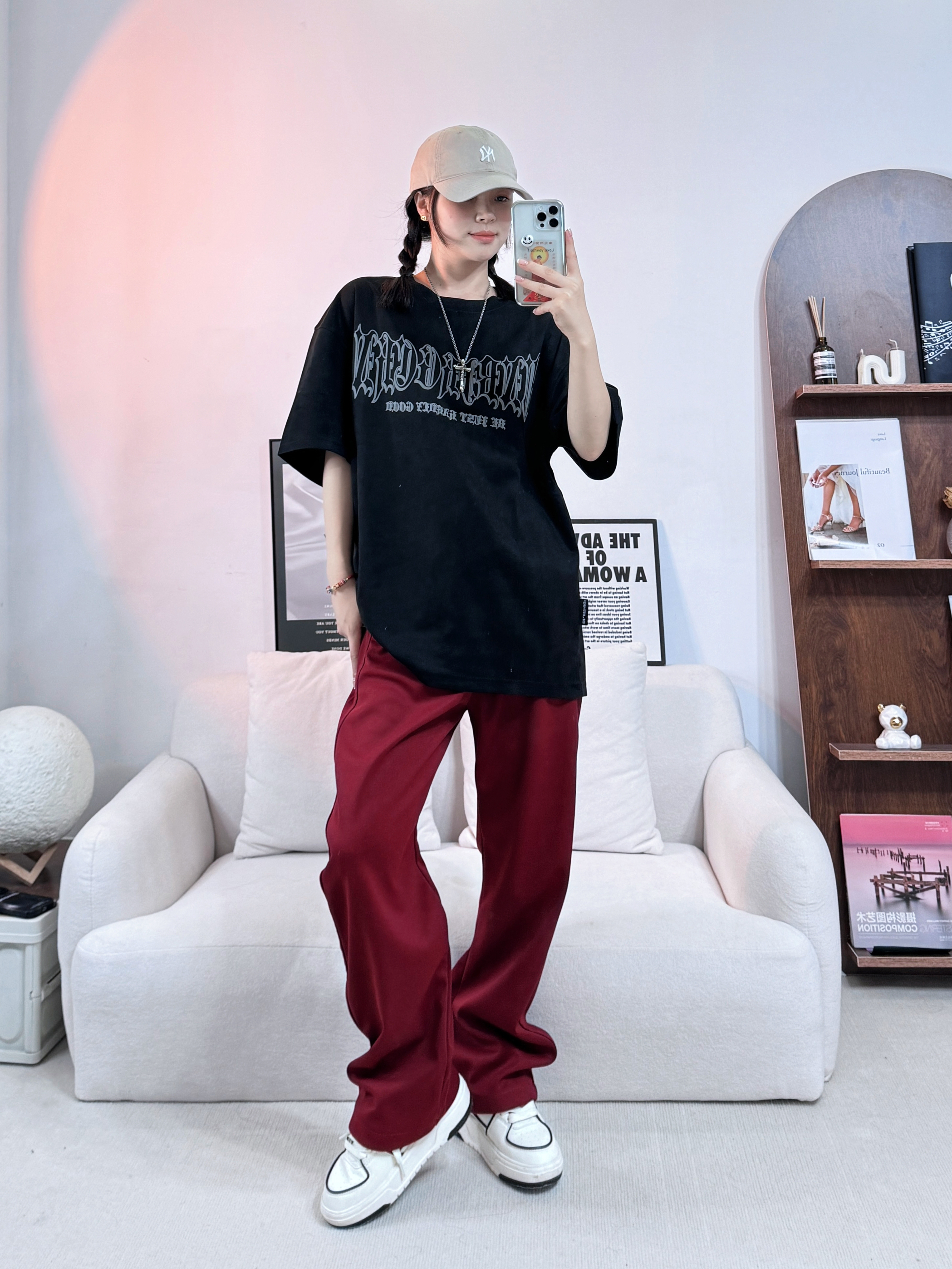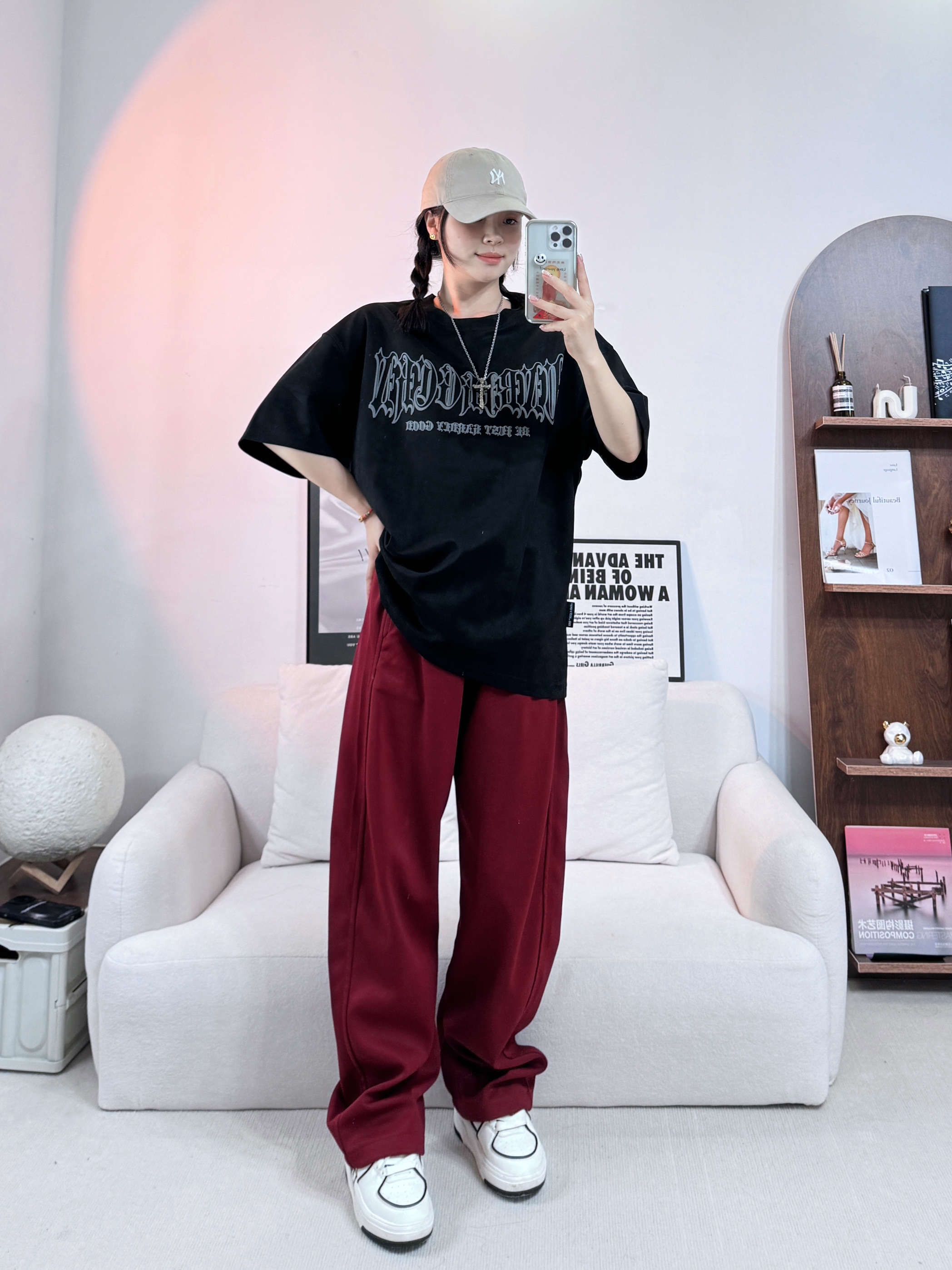 嗨👋最近发现一款黑色T恤 让我爱不释手💗 它的衣服材质不容易皱 前后都有设计图案 不管从正面还是后面看都不错👍 搭配一条红色阔腿裤让你在人群中脱颖而出 不管是约会👀还是逛街都能够轻松驾驭 让我整个夏天更出彩🌈