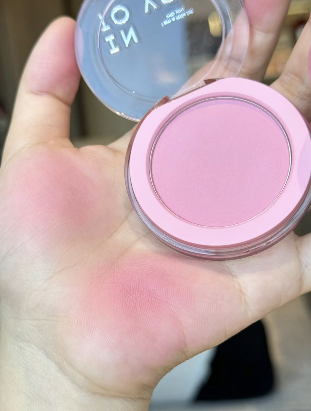 Romand 18 玫瑰水蜜桃,我的灯光偏暖,今天拍的有点橘但是还是好好看,显白又甜妹