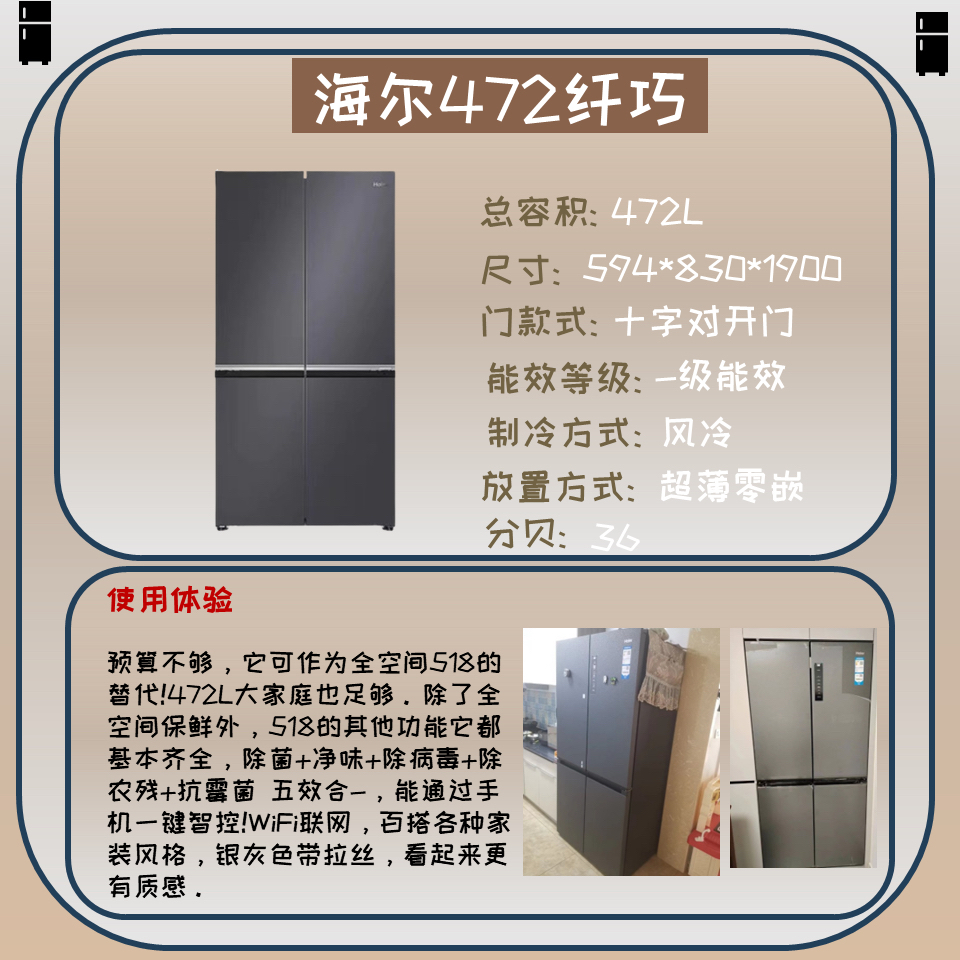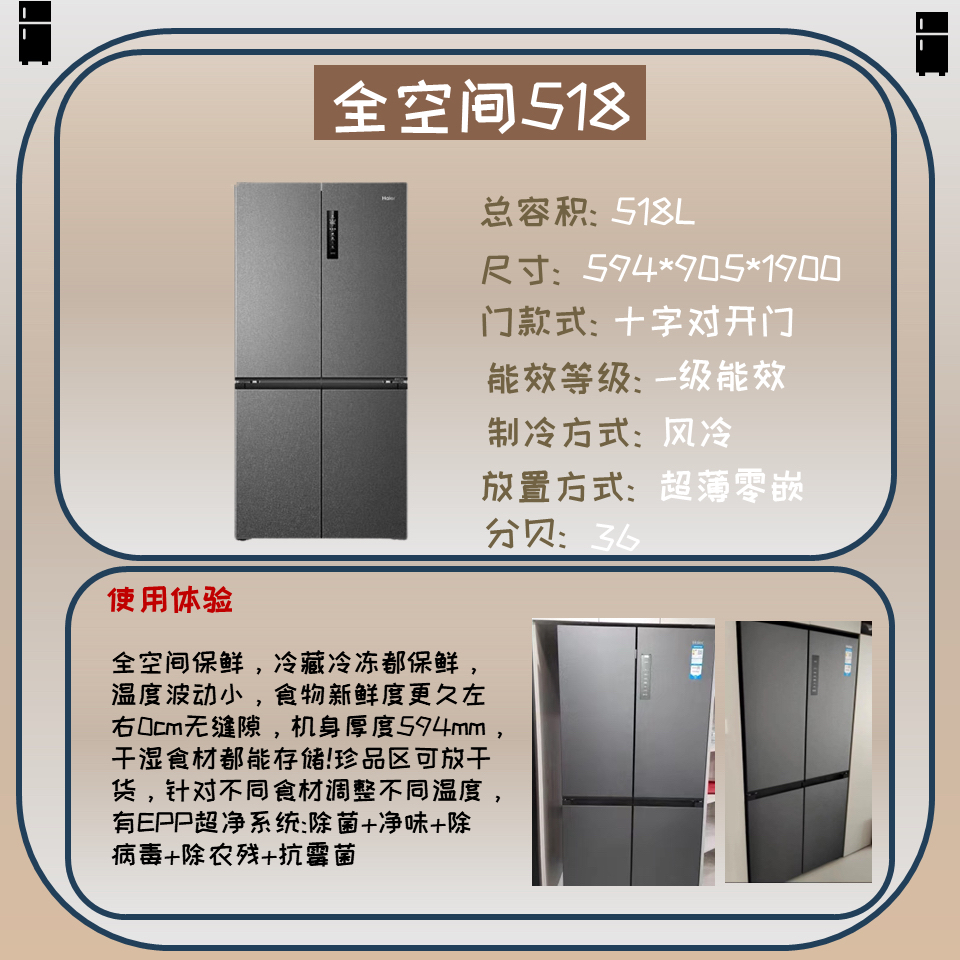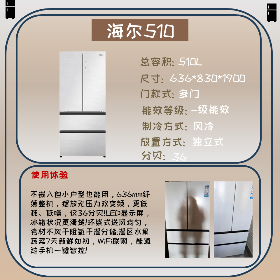 本篇笔记关联了Haier/海尔 四开门冰箱 460L 风冷 零嵌入式 一级能效 全空间 干湿分储 双变频 底部散热 超薄 三档变温 节能 净味 月莹白、Haier/海尔 510L四开门冰箱 家用大容量 干湿分储 双变频 一级能效 风冷 超薄 节能 法式 无霜 BCD-510WGHFD5DGQU1 银白、Haier/海尔 十字对开冰箱 518L 全空间 保鲜 超薄 大容量 零嵌入 一级能效 超净 底部散热 干湿分储 一级变频 阻氧 节能 深度 宽幅变温 秘境银等商品,为用户提供真实的使用体验和购买参考。