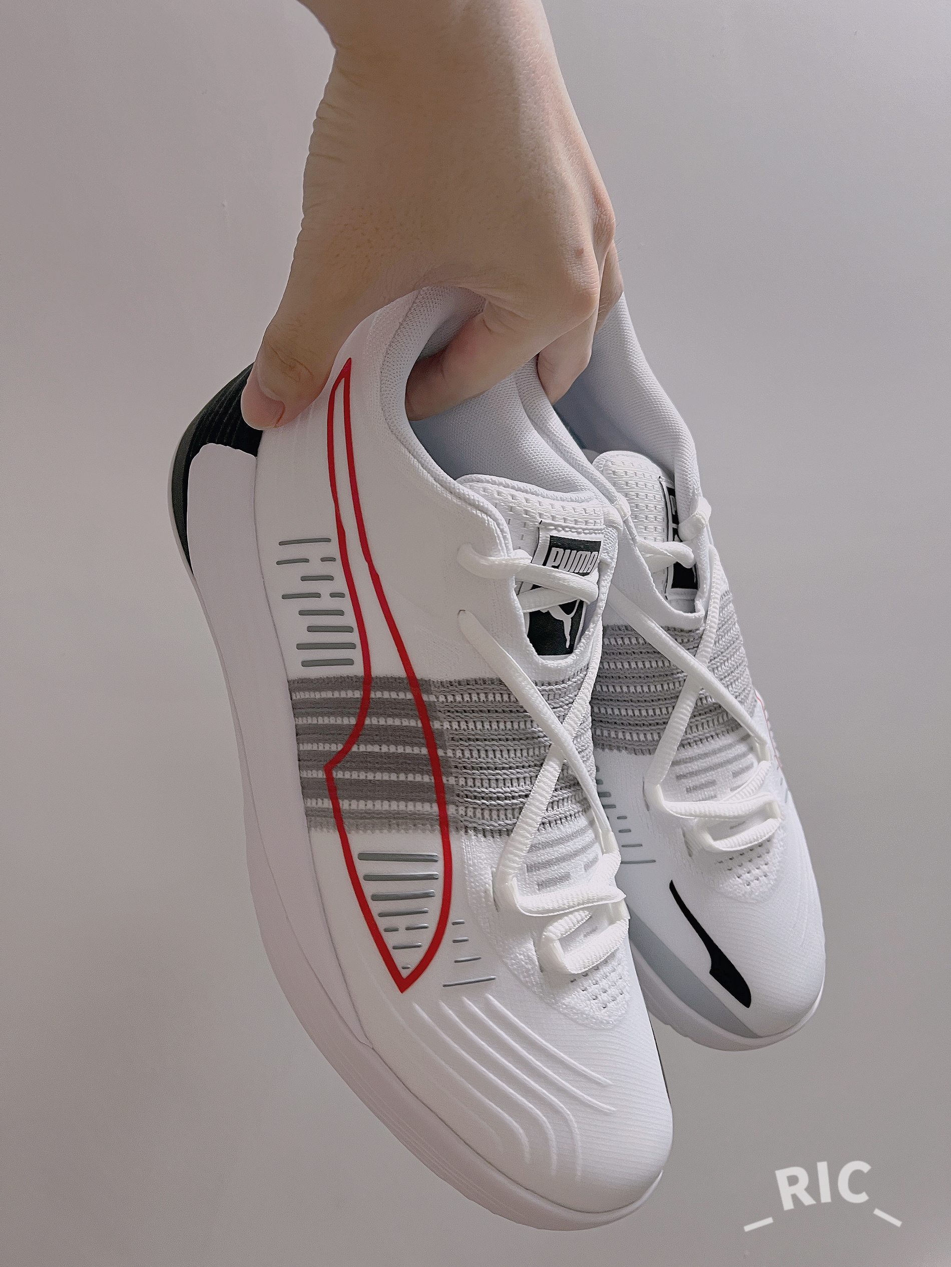 🦵来自PUMA的Fusion Ritro。首先,最显眼的就是鞋带系统中间一个大大的“X”,那是因为鞋身中间的有一圈绑带,在内侧有标注了fuzionfit,即自适应压缩绑带。这个设计在球鞋中真是辨识度十足 🔥这款鞋子的定位应该是兼顾出街及实战的球鞋 👟白色球鞋的颜值是真的高!确实不耽误休闲压马路的时候穿搭 🐆鞋身有非常多的“线条”,整个外形设计简洁又不失细节;鞋带孔的前两组为动态组;后跟的TPU为红...