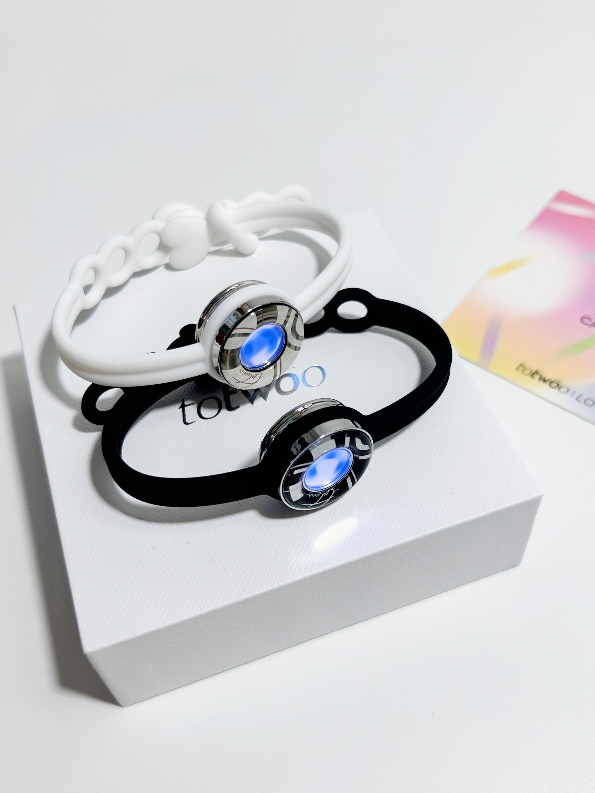 今天来给大家分享一个新奇的异地恋神器~ 就是这个TOTWOO的感应情侣手链 看上去就像是普通的手链一样 我觉得黑白色的话 日常还挺百搭的 但其实它里面是有小巧思的~ 是可以通过蓝牙连接手机上的app的 两个手链配对成功后 当我想念对方的时候 我只要碰一下屏幕 他的手链就会震动发光 异地恋也变得好有安全感呀~