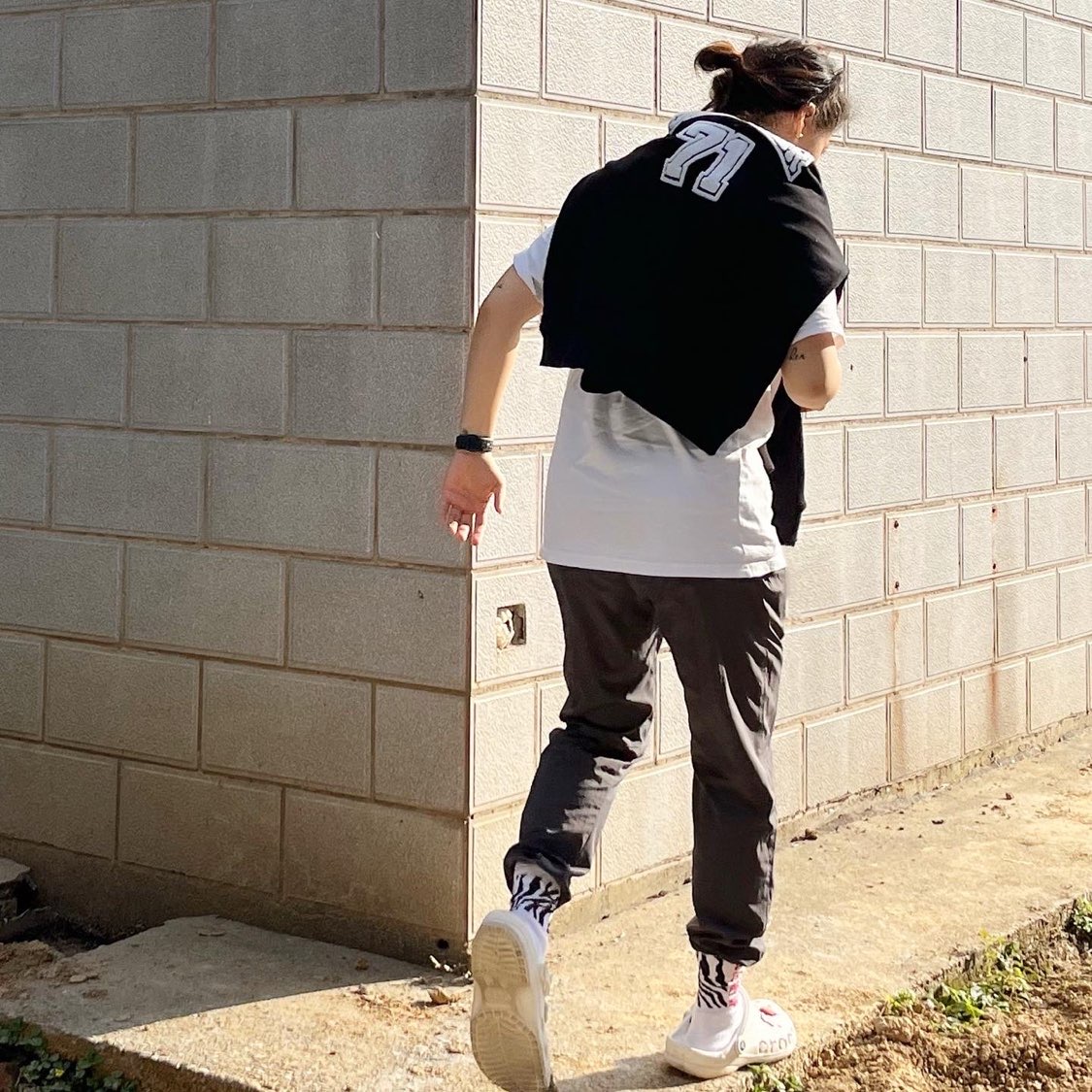 最近这个球衣穿搭好像火到爆了 那我也算是有一件球衣的人 那就赶一下热度吧 虽然球衣是有了但是这个篮球太难约了 各位小姐姐孩子都打酱油了都没空来 咱就是说说好的热爱呢 哈哈哈哈 gtcut这双比我想象的要好穿不少