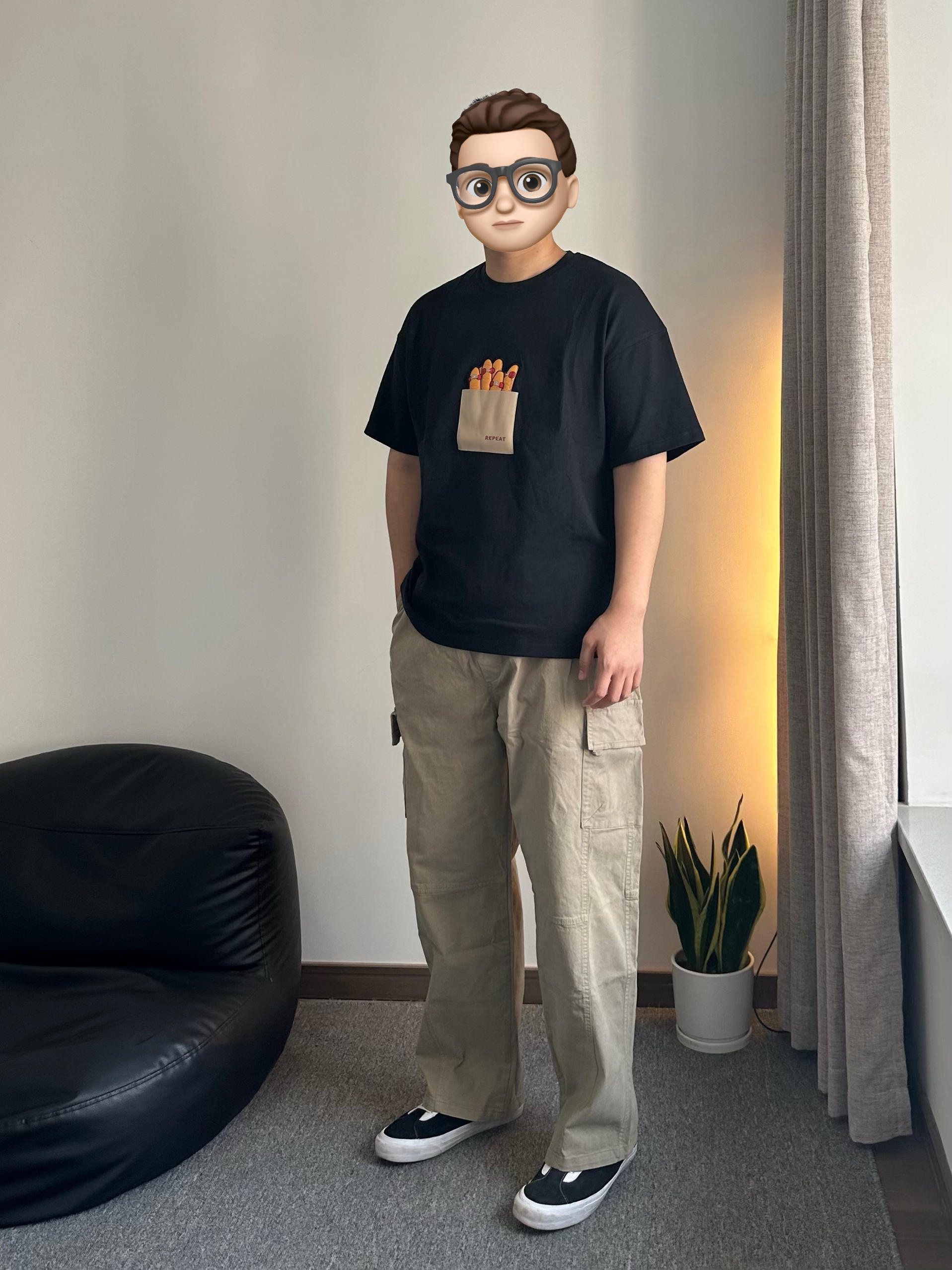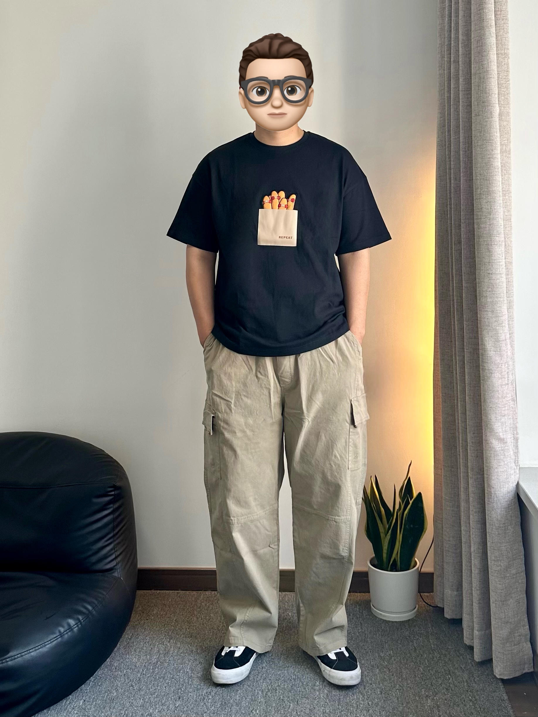 今天冒充板仔🛹 短袖上印的薯条🍟 图案到手才发现其实是滑板 设计别出心裁 配色也很有误导性 有意思的恶搞(裤子的版型也偏向于滑板裤 👍🏻 宽松又兼顾版型😍 OOTD: 👕:恶搞滑板印花短袖 👖:卡其色宽松直筒裤