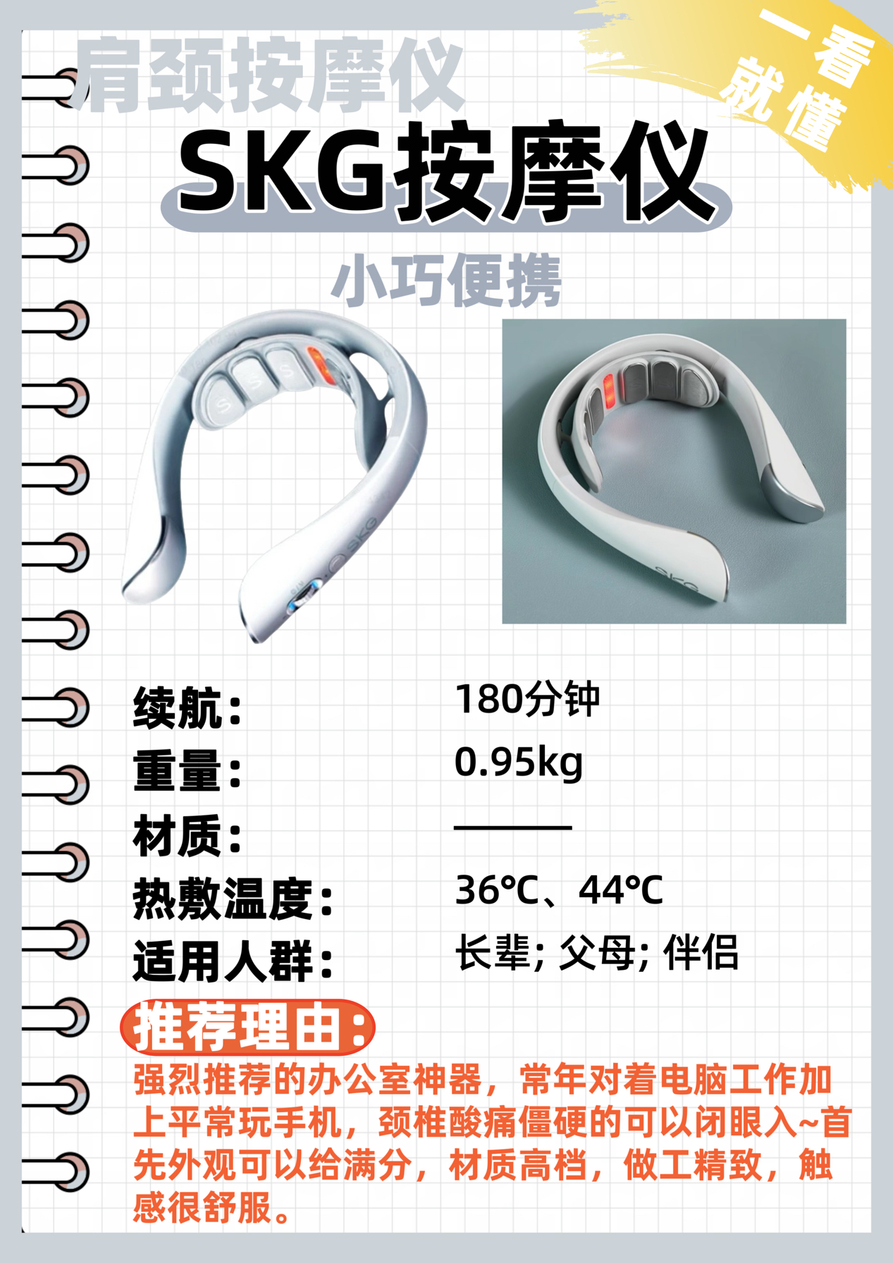 长期伏案工作💼,总是感觉肩颈肌肉酸痛,平时就喜欢按摩一下 最近发现了肩颈按摩仪用起来真的还蛮不错,像人手按摩我们的肩颈,力度也可以,从此之后告别颈椎痛! 选了几款用着不错的按摩仪分享给大家 🌟飞利浦肩颈按摩仪 🌟象术肩颈按摩仪 🌟倍轻松肩颈按摩仪 🌟小米肩颈按摩仪 🌟SKG肩颈按摩仪 🌟奥克斯肩颈按摩仪