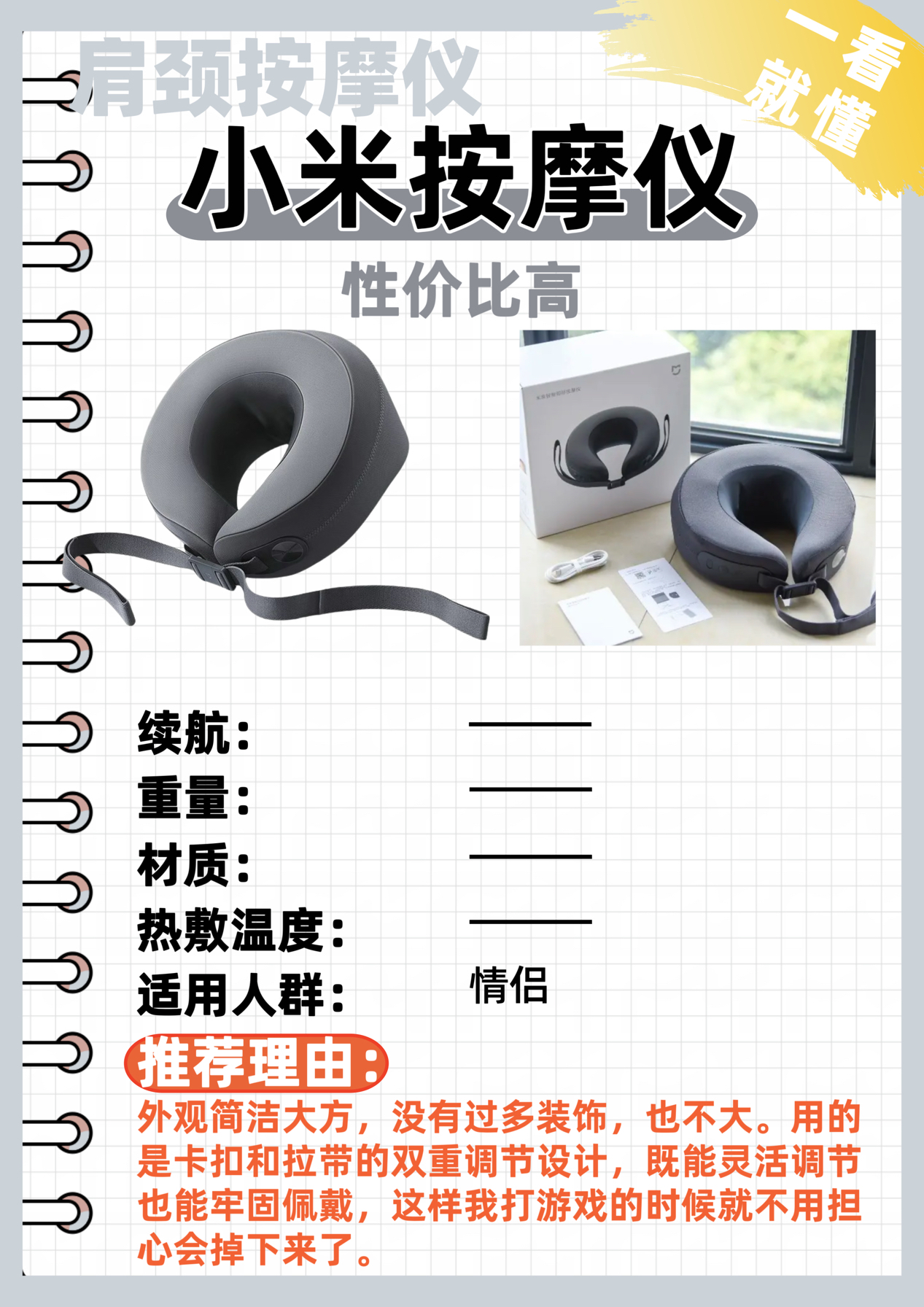 本篇笔记关联了Philips/飞利浦 PPM3204N 肩颈按摩仪 肩颈斜方肌 背部 肩膀 披肩 揉捏 深蓝色、breo/倍轻松 N5mini 肩颈按摩器 热敷放松 斜方肌 颈椎 腰部 背部 揉捏 肩膀 脖子 腰颈部 棕褐色、MI/小米 米家 肩颈按摩仪 热敷 恒温 揉捏脖子 挂脖式 颈椎 肩部 灰色等商品,为用户提供真实的使用体验和购买参考。