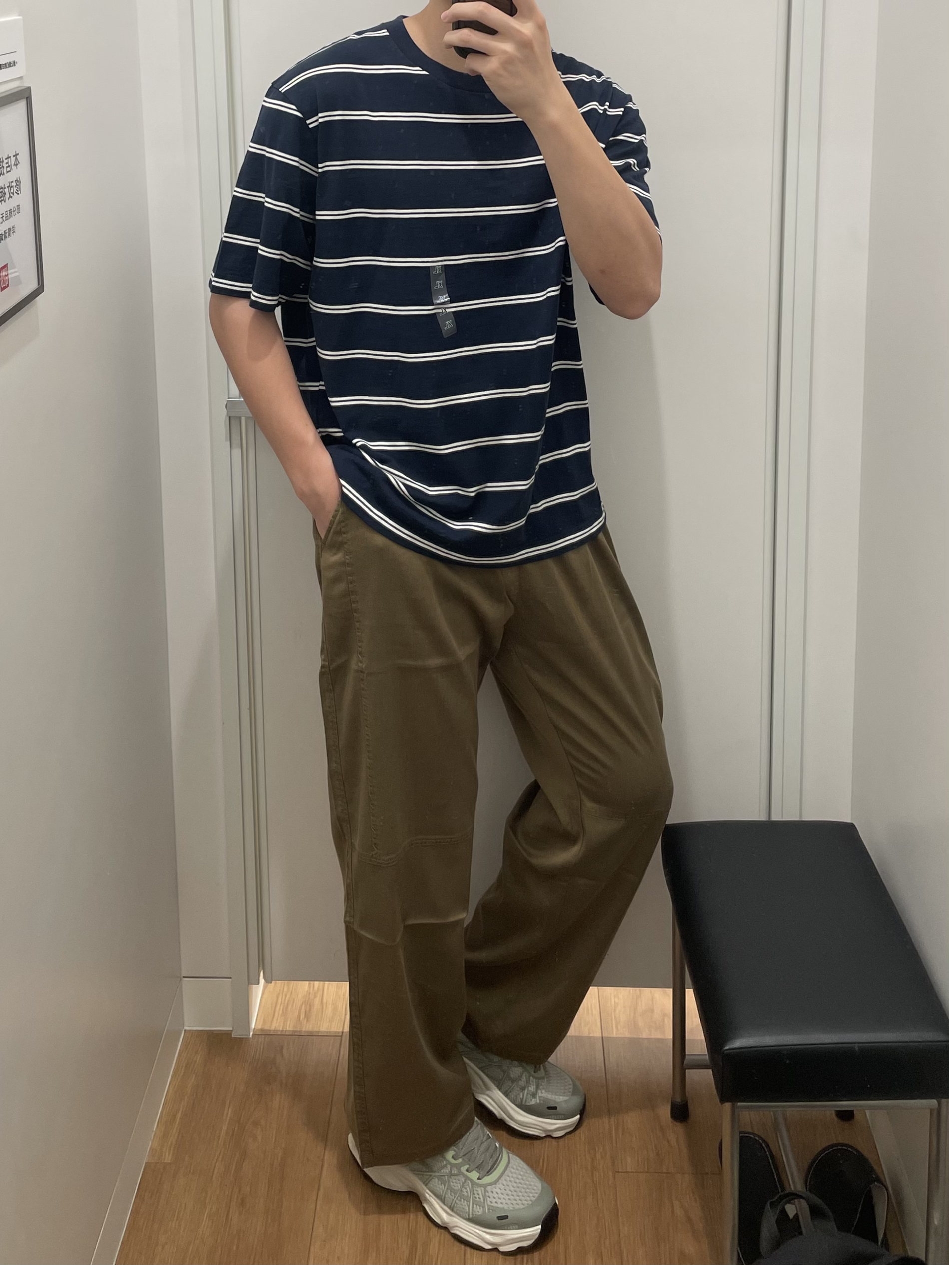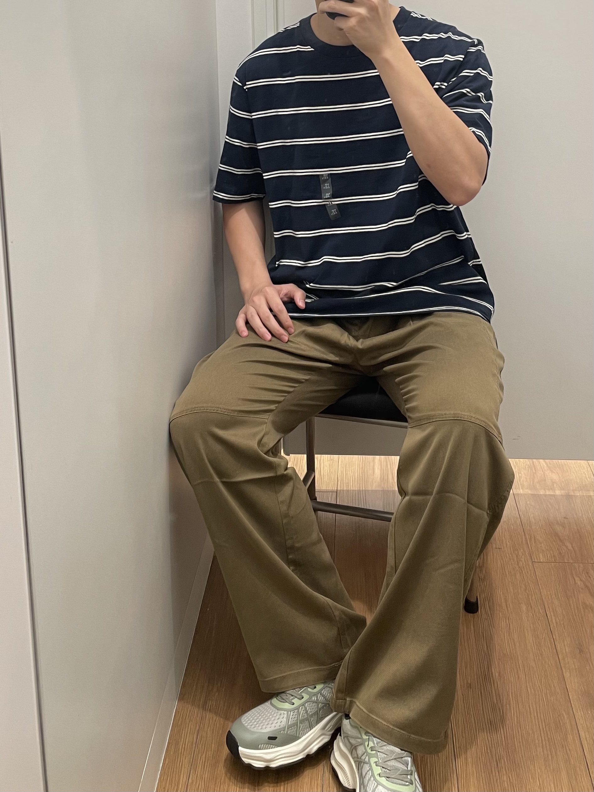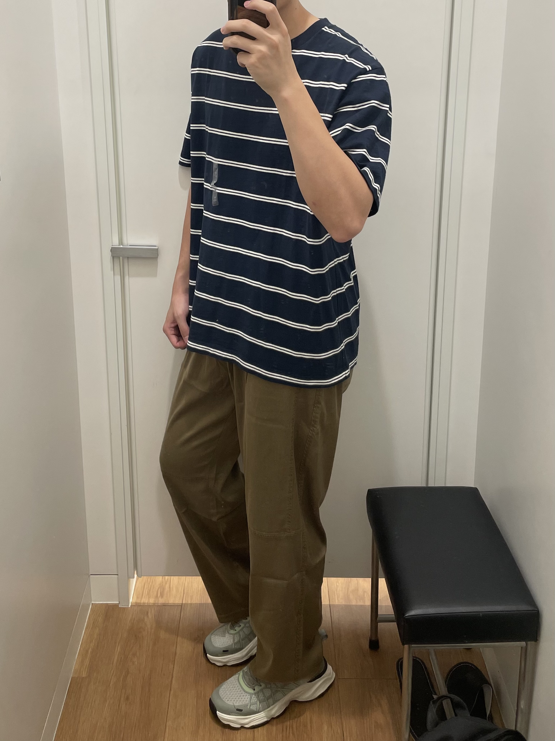 垂感西裤真的太好穿了吧!宽松透气 夏天穿不粘腻 真的很爱诶! 优衣库蓝白条纹短袖 校园感满满 搭配绿白运动老爹鞋 厚底休闲鞋 配色很好看 而且看起来很有夏天的气息 走路不会累脚 yyds‼️