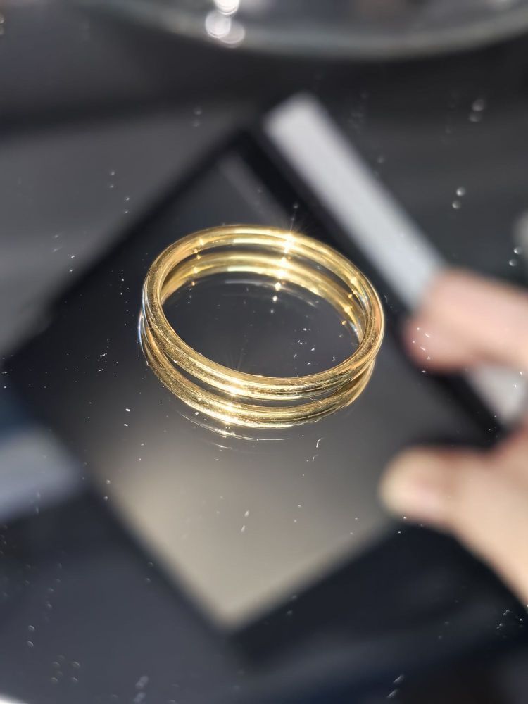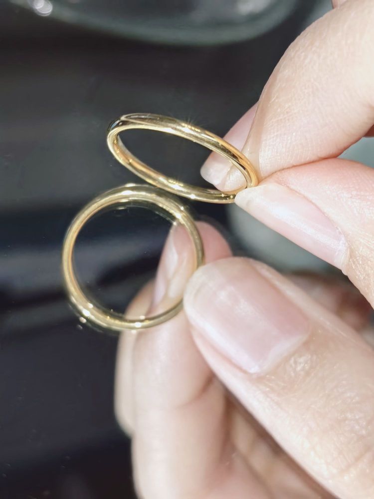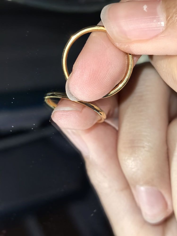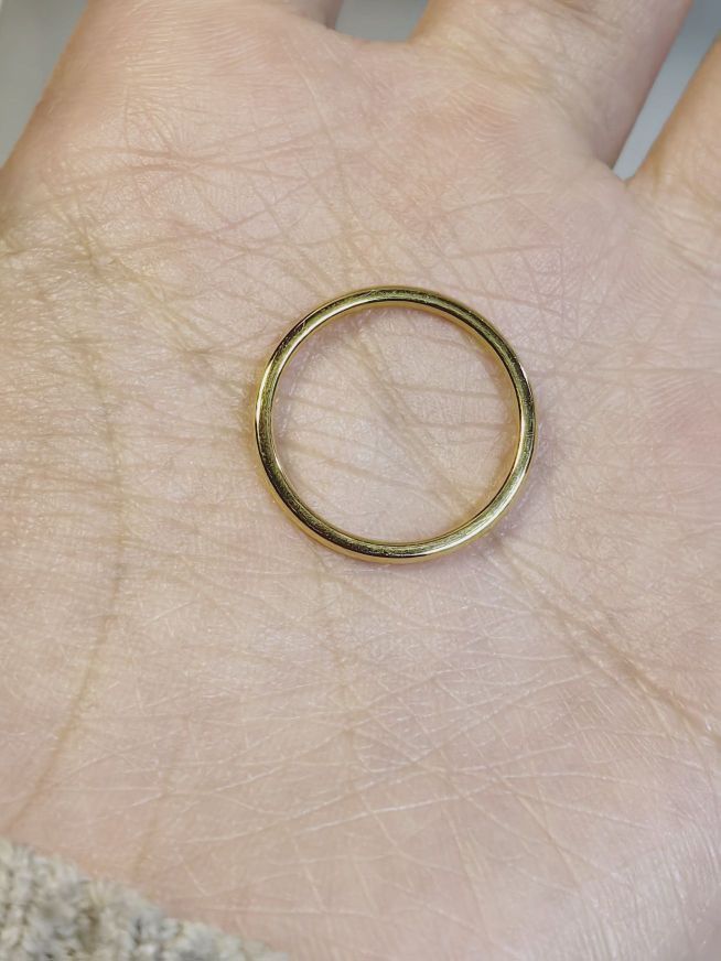 以前一直觉得黄金贵得不行 直到到现在对黄金祛魅 一枚黄金素戒价格也才如此~ 这枚戒指是我第二枚戒指 也是我第一个素戒~ 带起来很合适也不会不舒服 素戒既简约又温柔 有光的时候更加分~