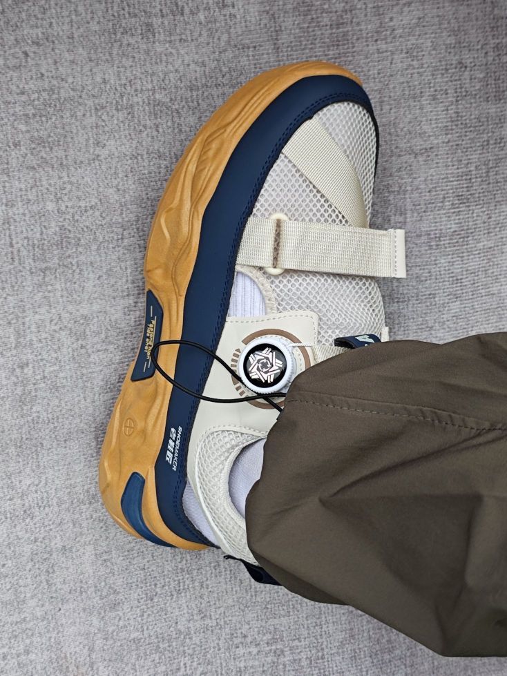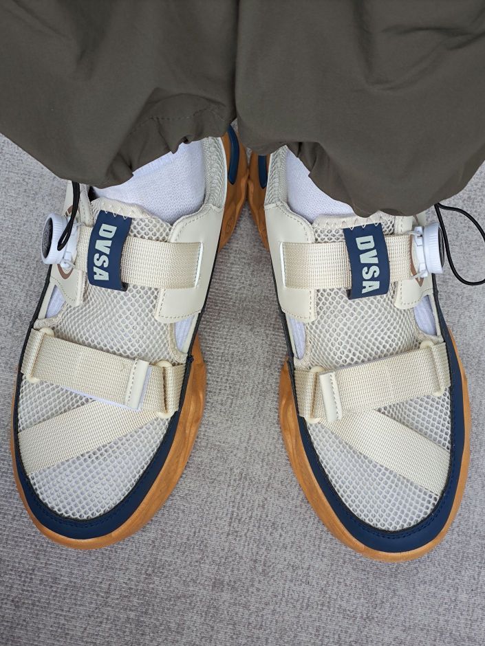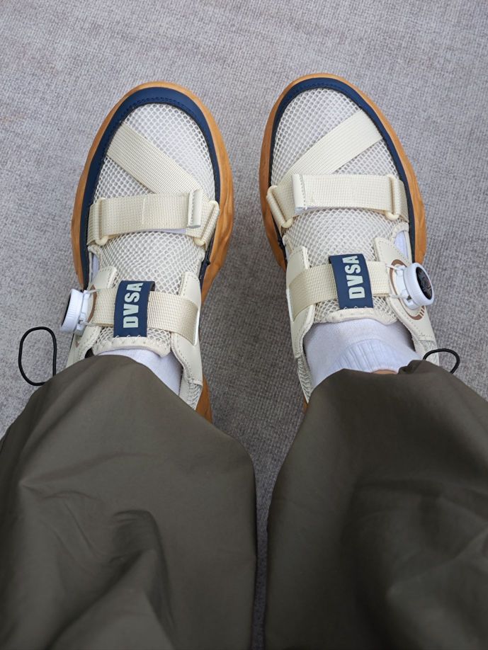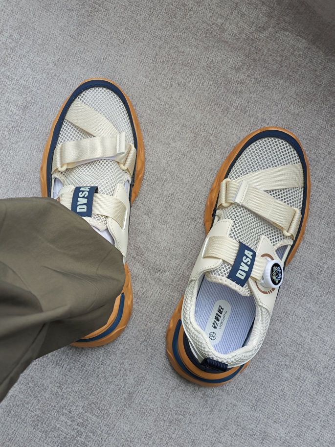 夏天飙升,穿凉鞋很舒服,最近安利了#老鞋匠 的夏日沙滩鞋,蛮舒服的 单层网面设计,很清爽,不捂脚 不用系鞋带,纽扣轻轻旋转就可以系上了 白色卡其底这个配合我好爱,一眼相中了✔