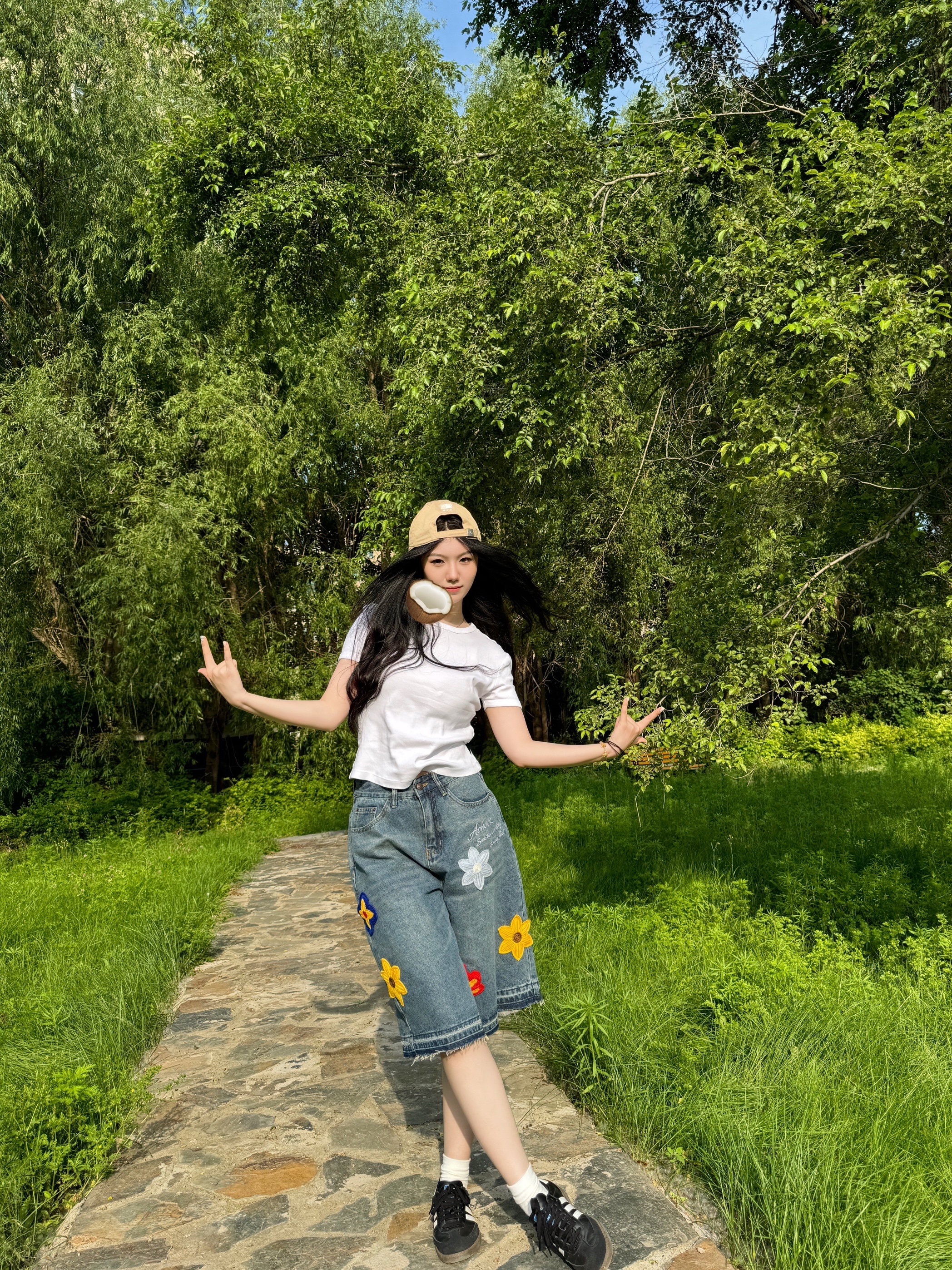 今天穿短t搭配七分牛仔裤👖