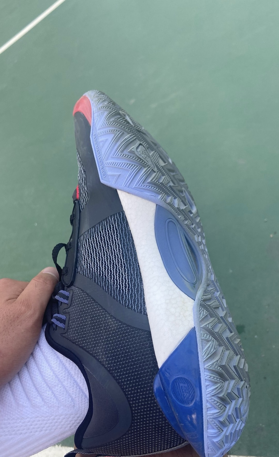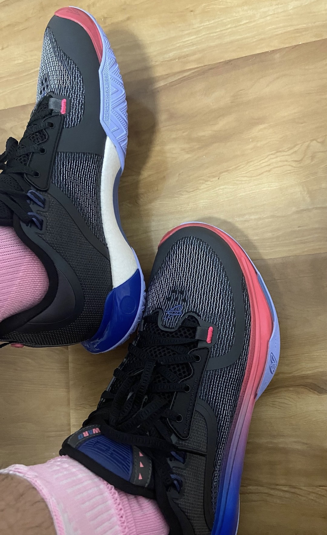 本人185cm,70kg,属于瘦高型选手,平时在球队打1,2号位。这双海沃德5代实战了几场,下面就和大家分享一下我的使用感受: 优点: 1. 颜值:个人买鞋,很重要的一点就是颜值,这双鞋,属于耐看型的,尤其是侧面的红蓝半透明的包边,充满游戏元素,高级感拉满!侧面颜值更是爱到不行。另外, 这个配色耐脏,室内室外随便造,不必担心清洗的问题。 2. 缓震:中底是安踏的全掌氮科技缓震,对于我轻体重的球员,...