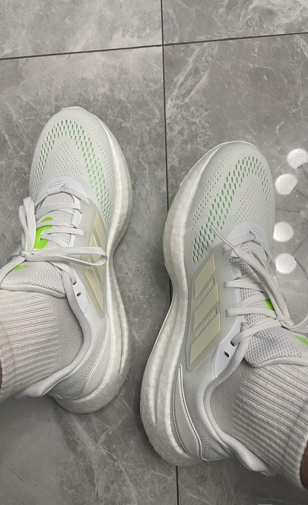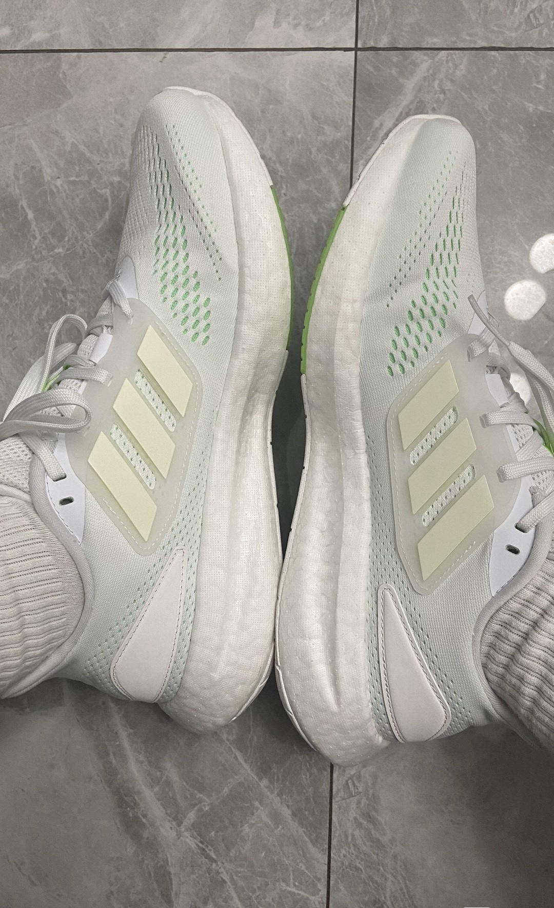 本篇笔记关联了adidas Pureboost 22 跑鞋 网面舒适透气减震耐磨回弹运动织物随心畅跑短跑全掌支撑平跟圆头 绿色/白色等商品,为用户提供真实的使用体验和购买参考。