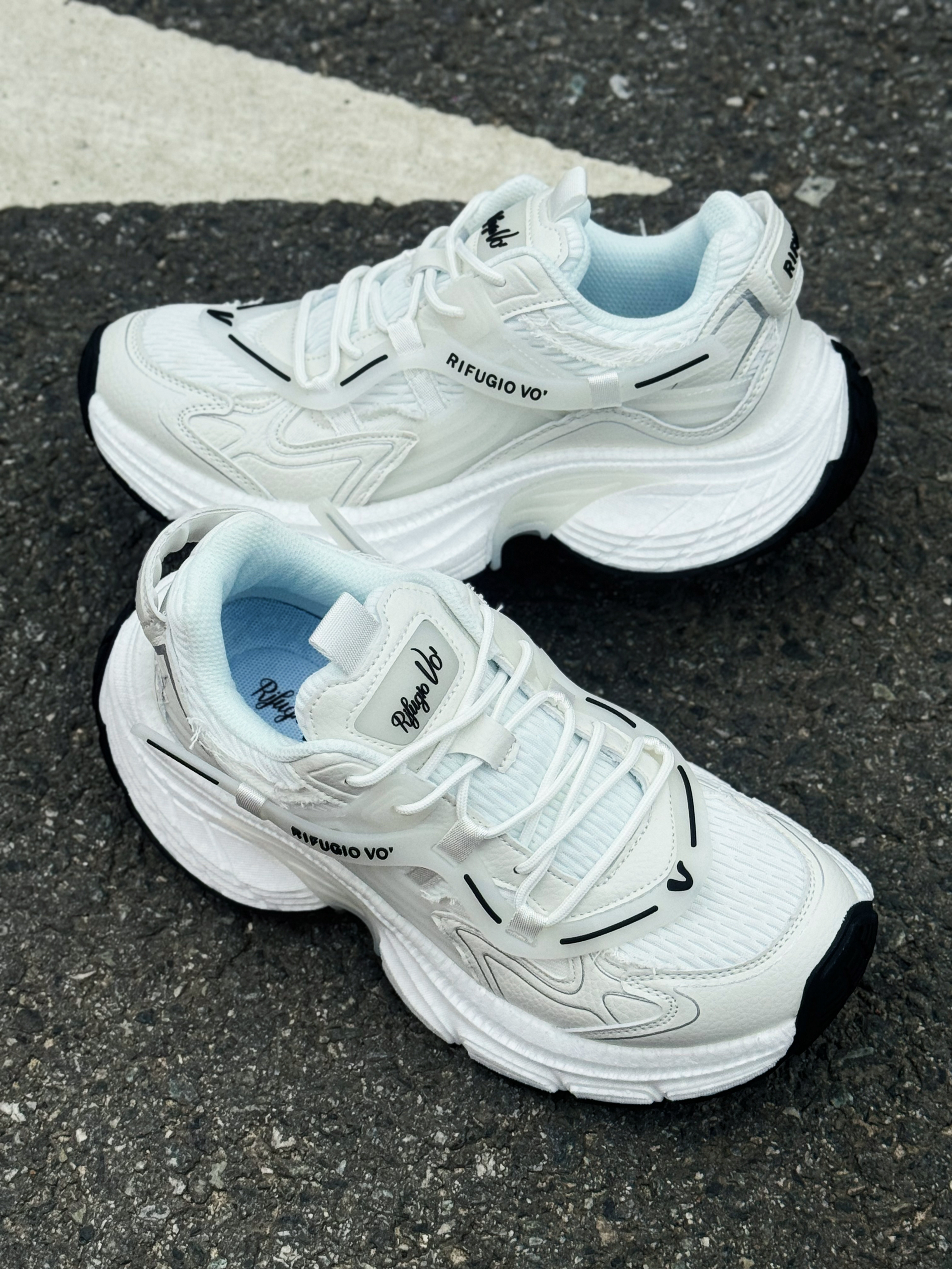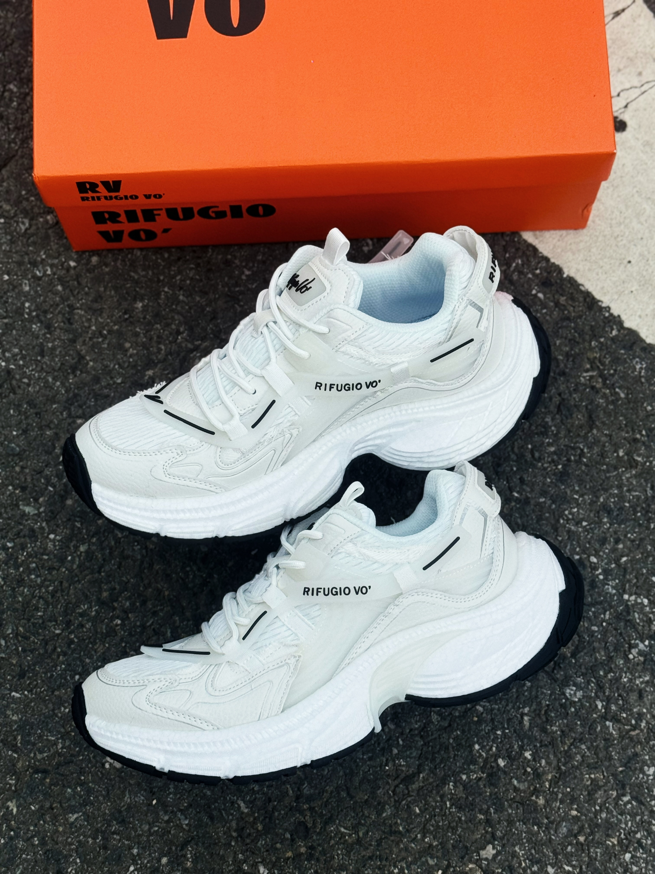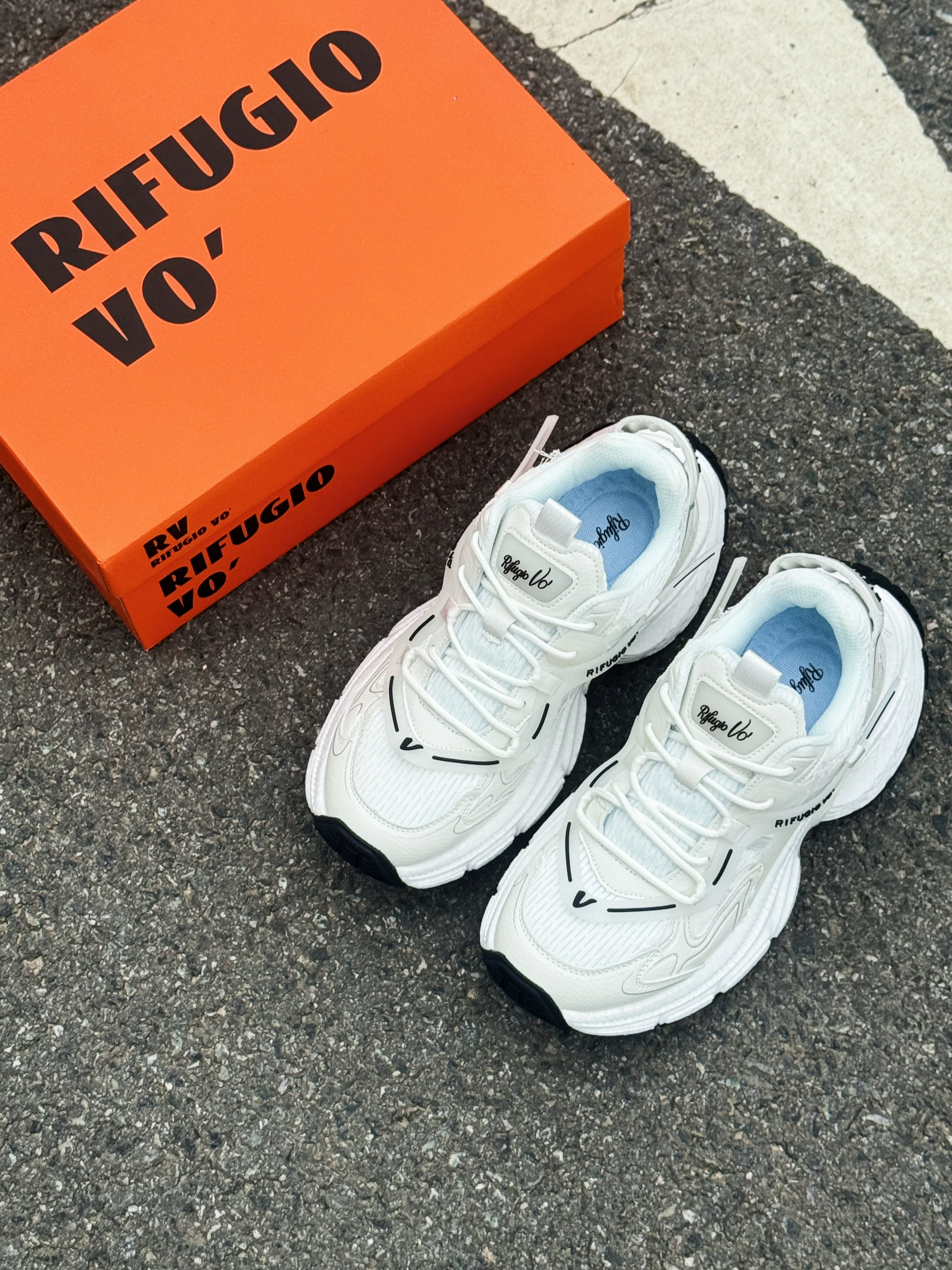 开箱即分享 今天和大家带来一款春夏透气出街好鞋 就是这双Rifugio vo' 复古百搭 老爹鞋 白色 实物到手开箱还是蛮惊艳的 做工很扎实,质感还不错 织物网眼拼接鞋面的包裹透气性不错 上脚很韧弹,还带有不错的增高! 橡胶外底的耐磨和防滑表现问题不大 2开就能入手的价格还是蛮香的 尺码不偏,正码