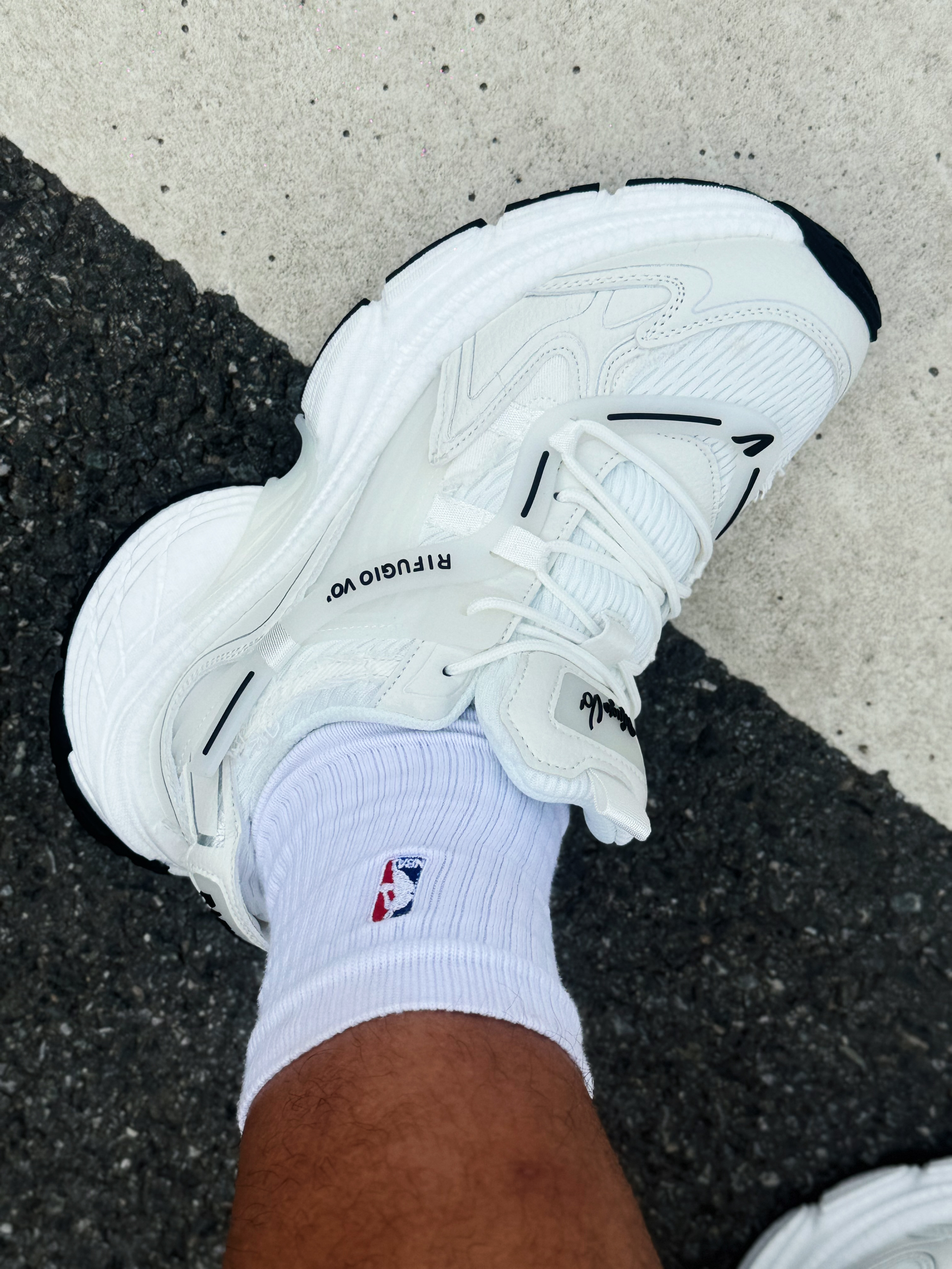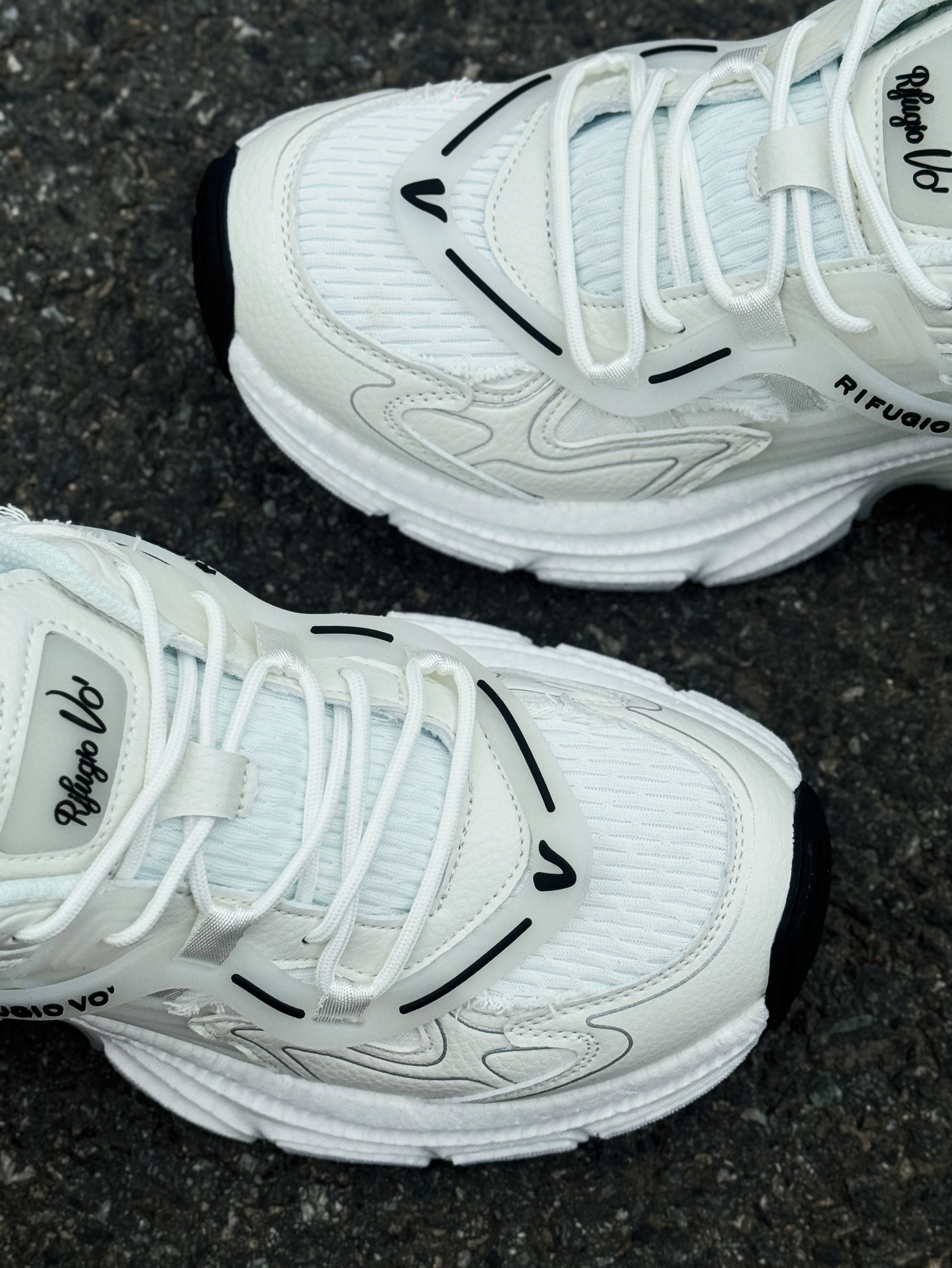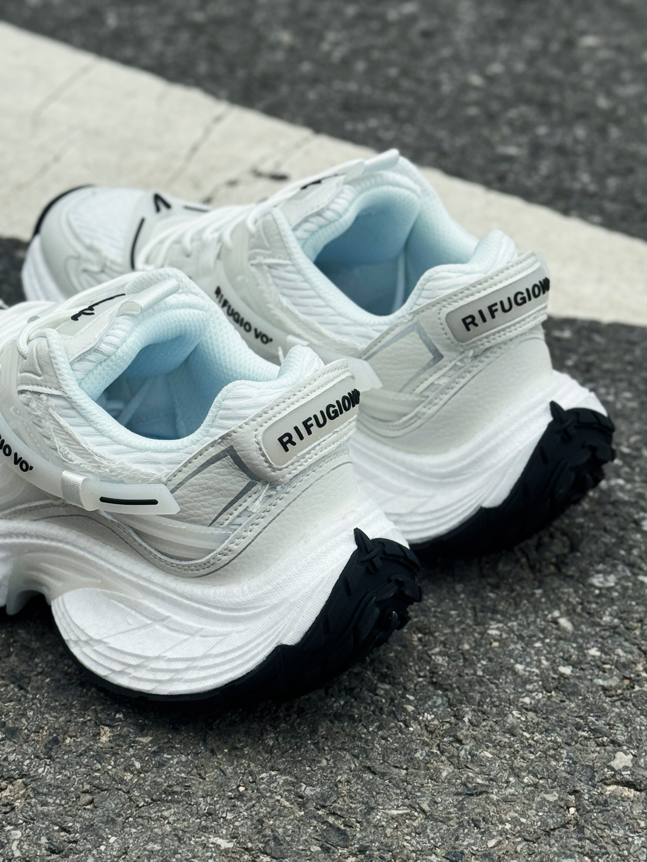 开箱即分享 今天和大家带来一款春夏透气出街好鞋 就是这双Rifugio vo' 复古百搭 老爹鞋 白色 实物到手开箱还是蛮惊艳的 做工很扎实,质感还不错 织物网眼拼接鞋面的包裹透气性不错 上脚很韧弹,还带有不错的增高! 橡胶外底的耐磨和防滑表现问题不大 2开就能入手的价格还是蛮香的 尺码不偏,正码