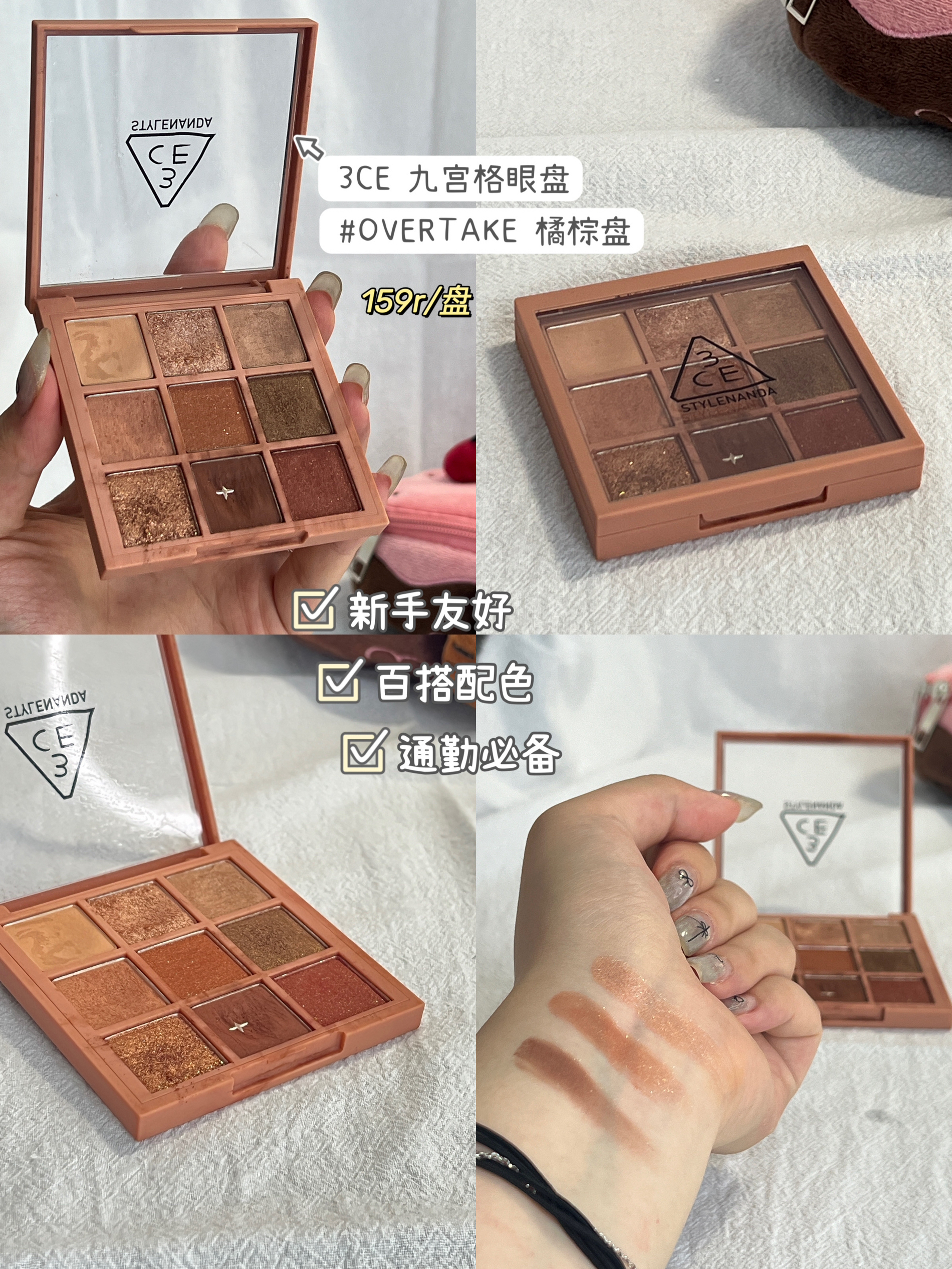 高考结束啦!是不是想给自己换个新造型,迎接大学的新生活呢?别担心,我为你们精心挑选了四款适合学生党的眼影盘,不仅价格亲民,而且色彩搭配超美,绝对能让你在大学里成为焦点!👀 1️⃣ 小奥汀 四色卧蚕粉盘 #02 心动裸粉 这款眼影盘简直是伪素颜神器!裸粉色系非常适合日常妆容,轻松打造清新自然的眼妆。粉质细腻,持久不脱妆,让你从早到晚都美美哒!💖 2️⃣ 3CE 九宫格眼盘 #OVERTAKE 橘...