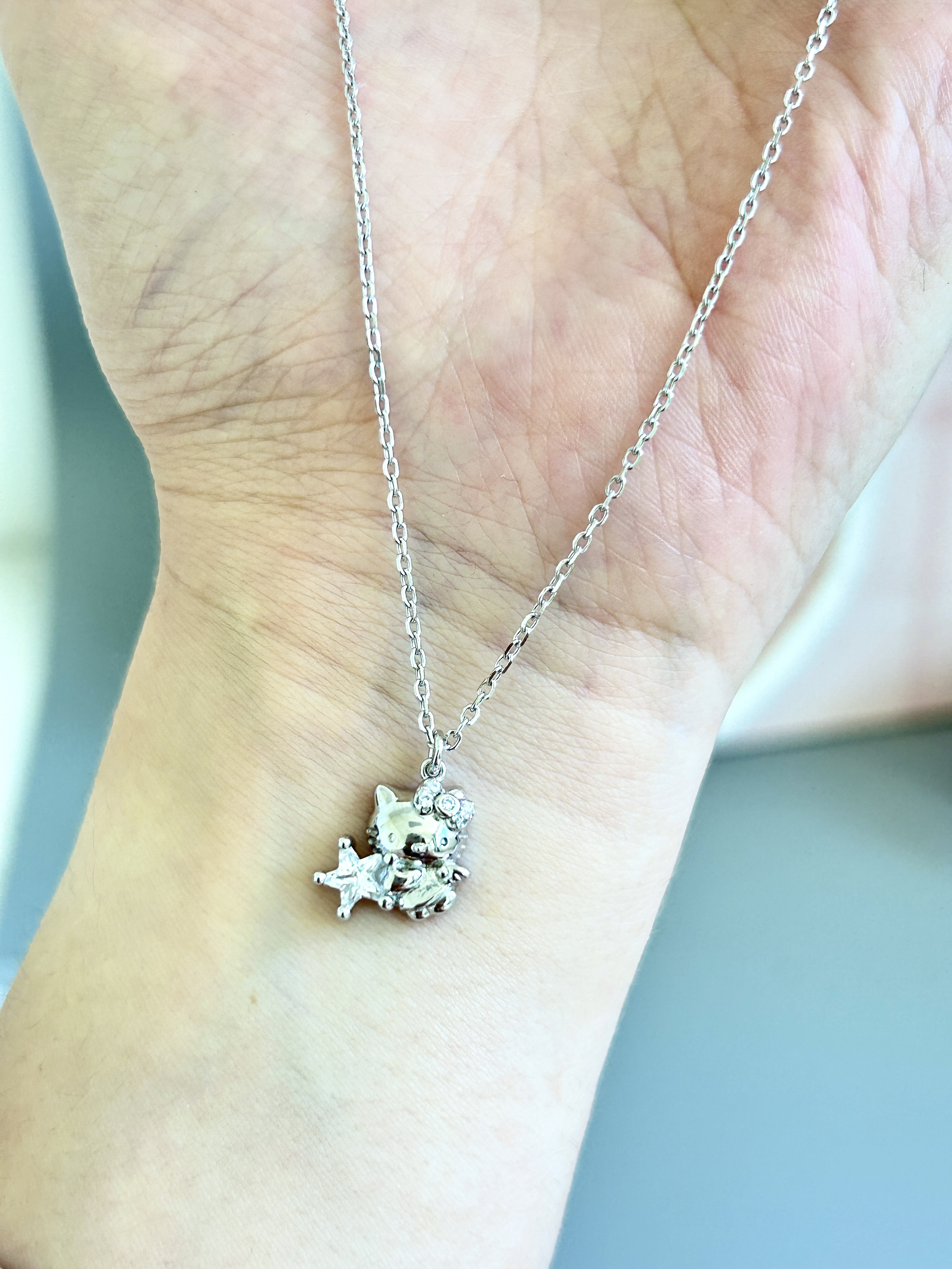 真的好喜欢这种小玩意 夏天尊滴离不开饰品 配小裙子泰漂亮啦 介个可爱的hello Kitty谁能不喜欢呢 925银的材质 带上好好看 谁带谁是公主 配裙子泰绝了 最近都一直在戴它!爱了~