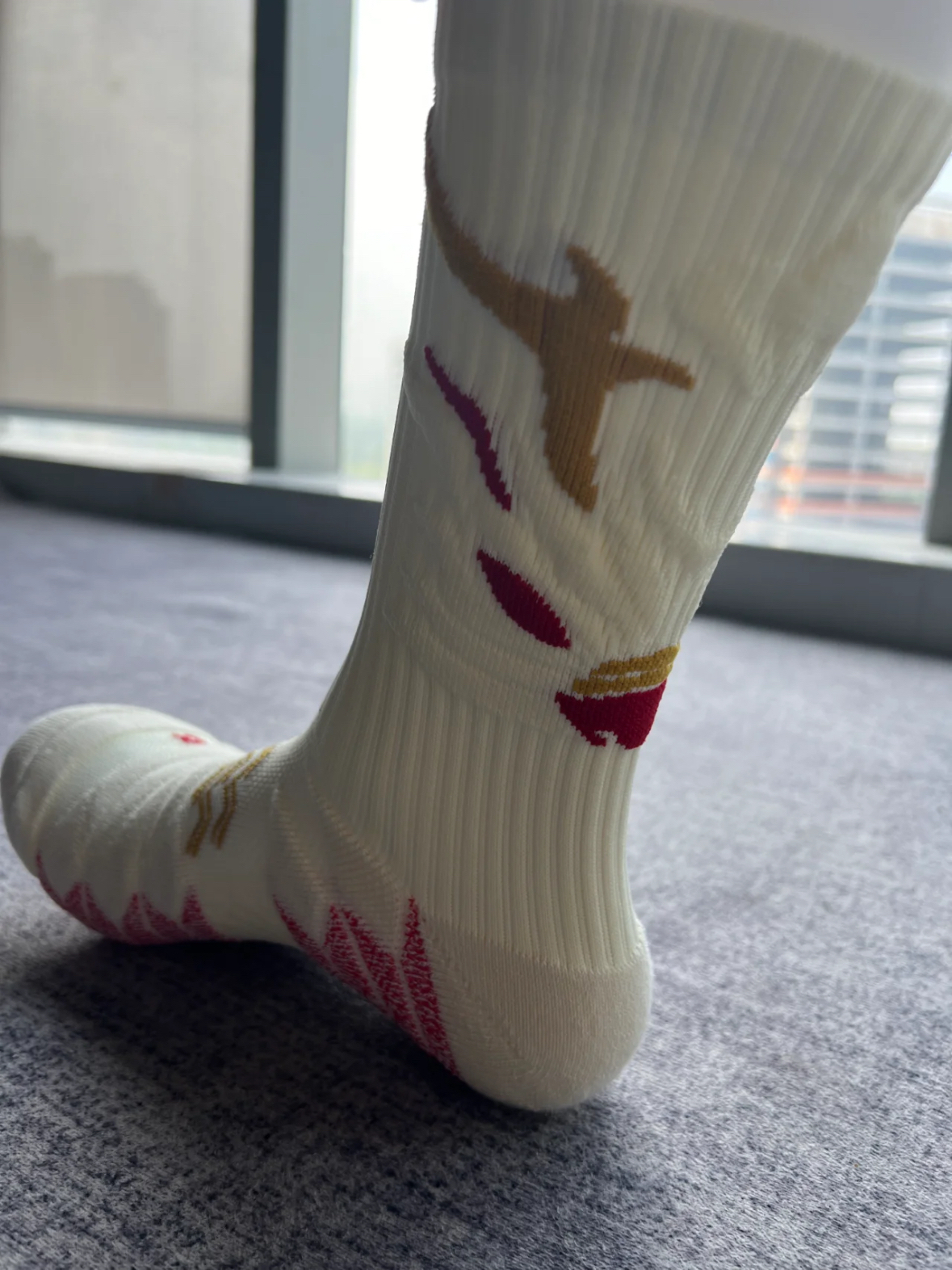 本人178cm,体重75kg,最近入手了一款维动品牌下的离弦pro系列篮球袜,给大家来分享我的感受吧: 1.外观设计:整体袜子颜色很丰富,后跟有个向上的箭头设计,仿佛一个离弦的箭一样,很有力量感,箭头设计是针织的,做工很精细,袜子前侧的小维动logo,这款袜子的设计我真的爱了。 2.上脚感受:实战了几次,加厚的毛巾底设计让我在高强度的实战中也没感觉到脚底打滑,对于汗脚的我来说也能充分的吸汗,长时间...