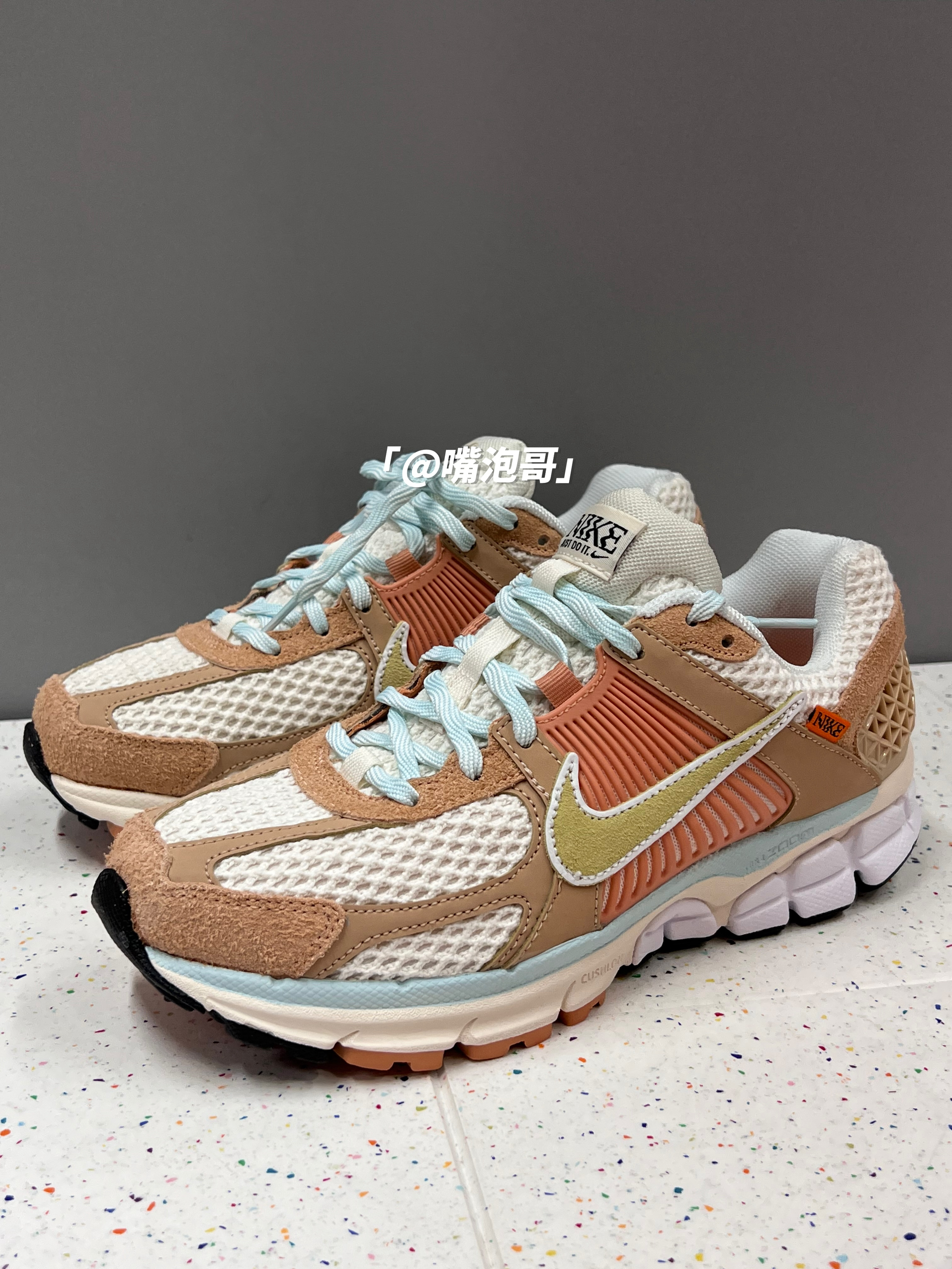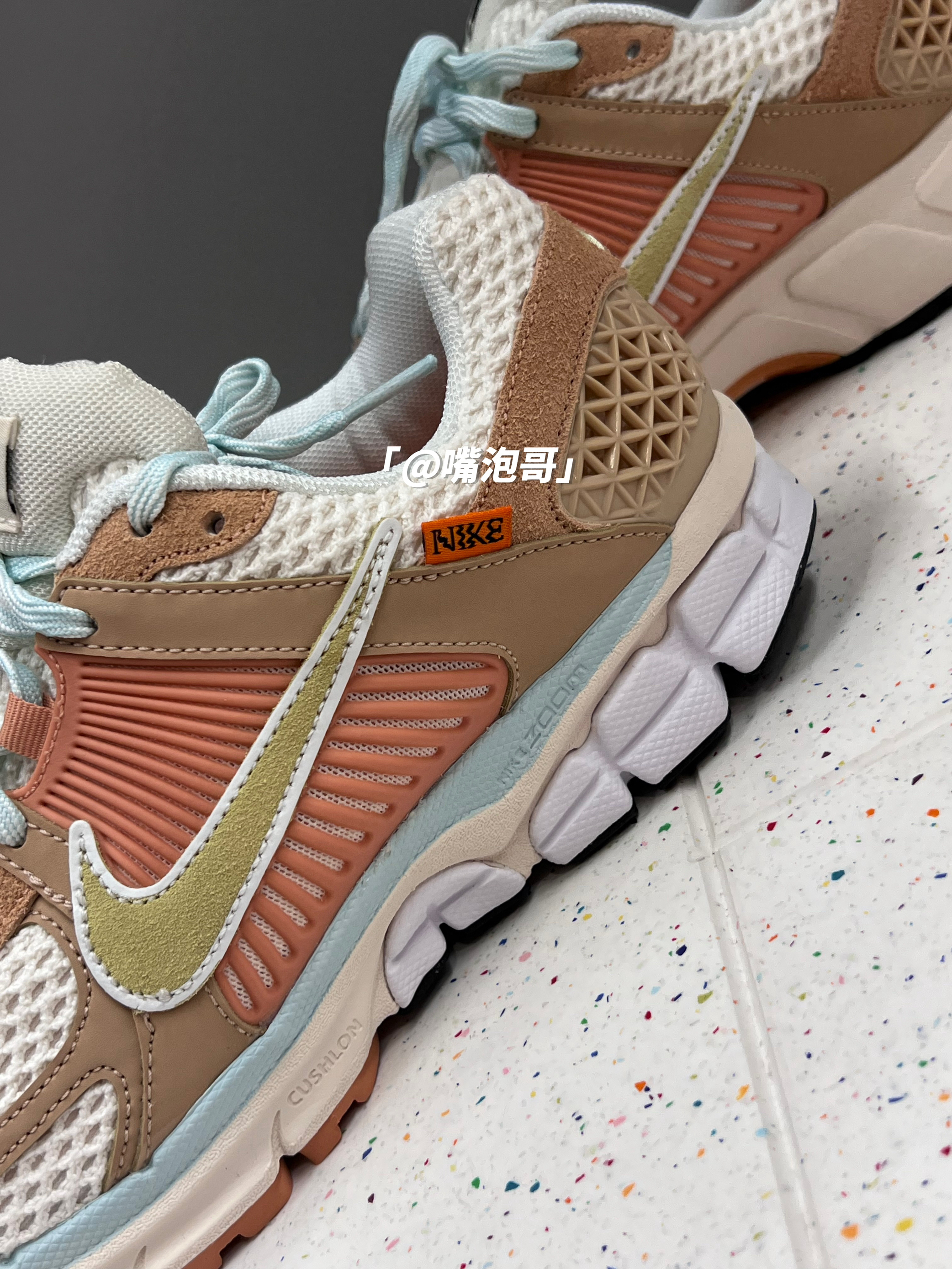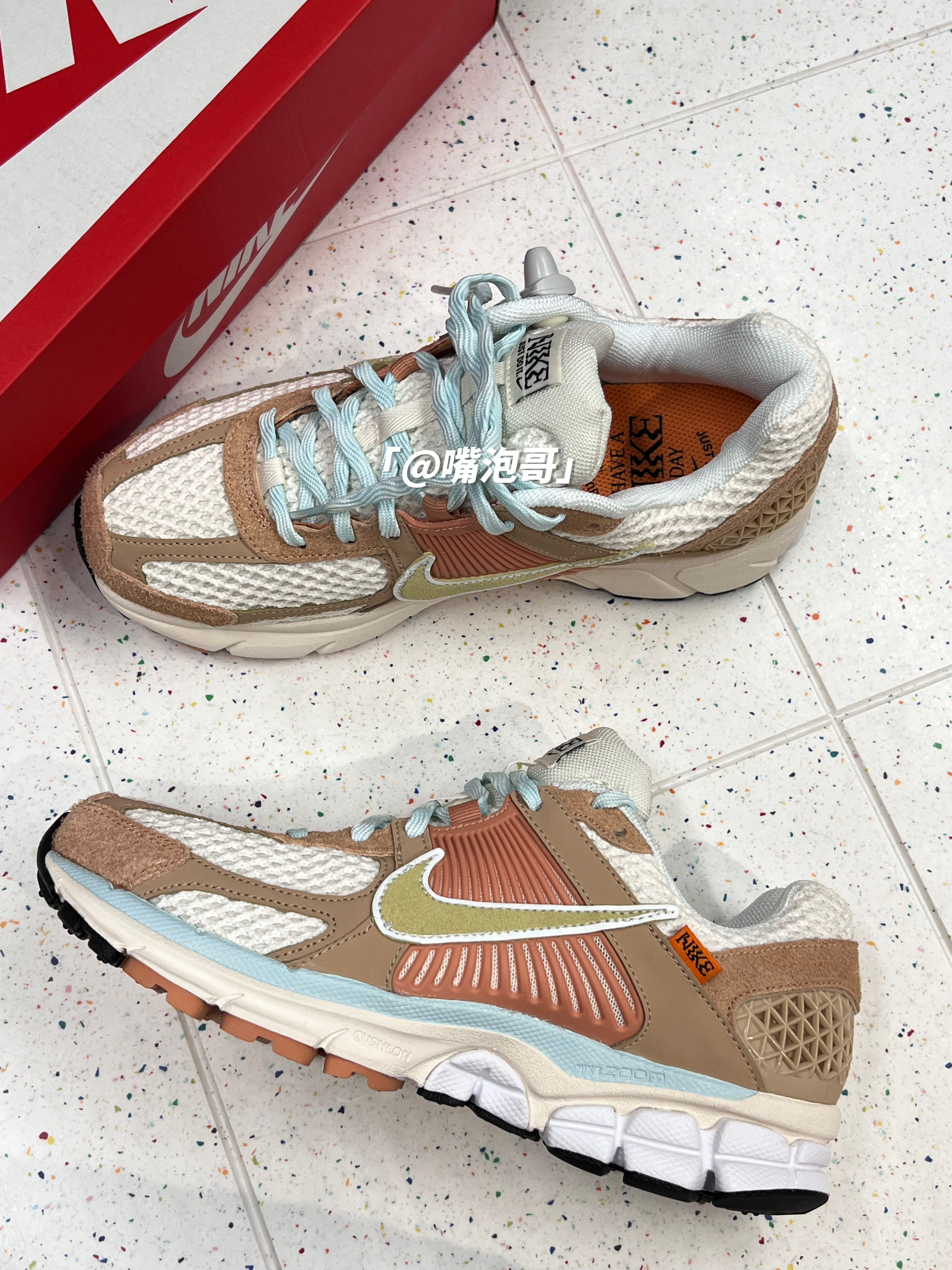 👟:Air Zoom Vomero 5 白棕 简介: 鞋款是一双比较适合夏日的低帮跑鞋,整双鞋子选用了白色与棕色的组合,还是很有复古感的,鞋面用了麂皮与网眼布的组合,搭配上中底双缓震,使得鞋子整体上脚有着舒适的脚感。 细节: 鞋面采用了麂皮与网眼布的组合,使得鞋面有着良好的透气性,同时又很有质感,鞋舌与后跟内里填充柔软,使得舒适度提升,两侧的swoosh选用了复合皮革打造,中底选用了缓...