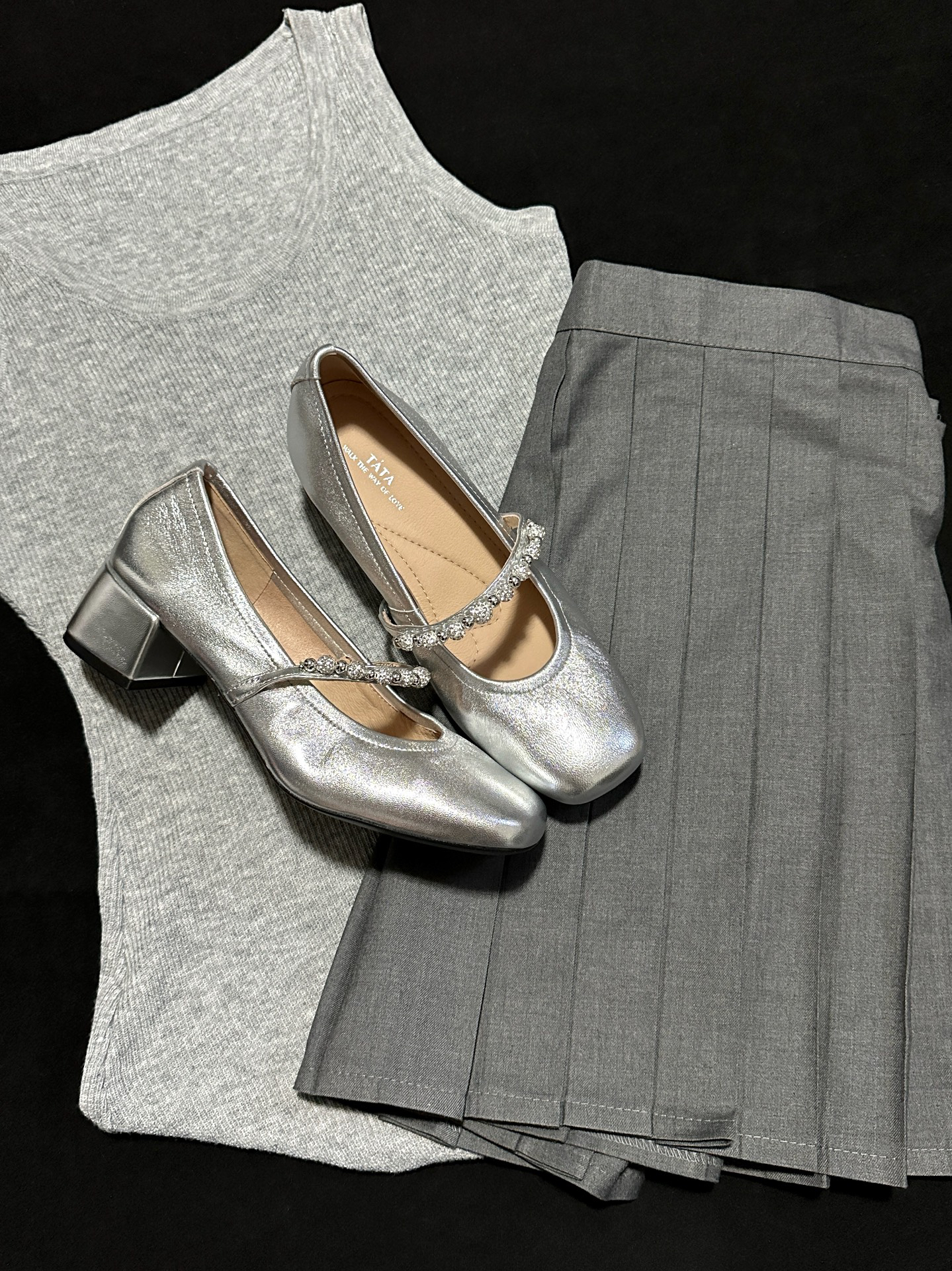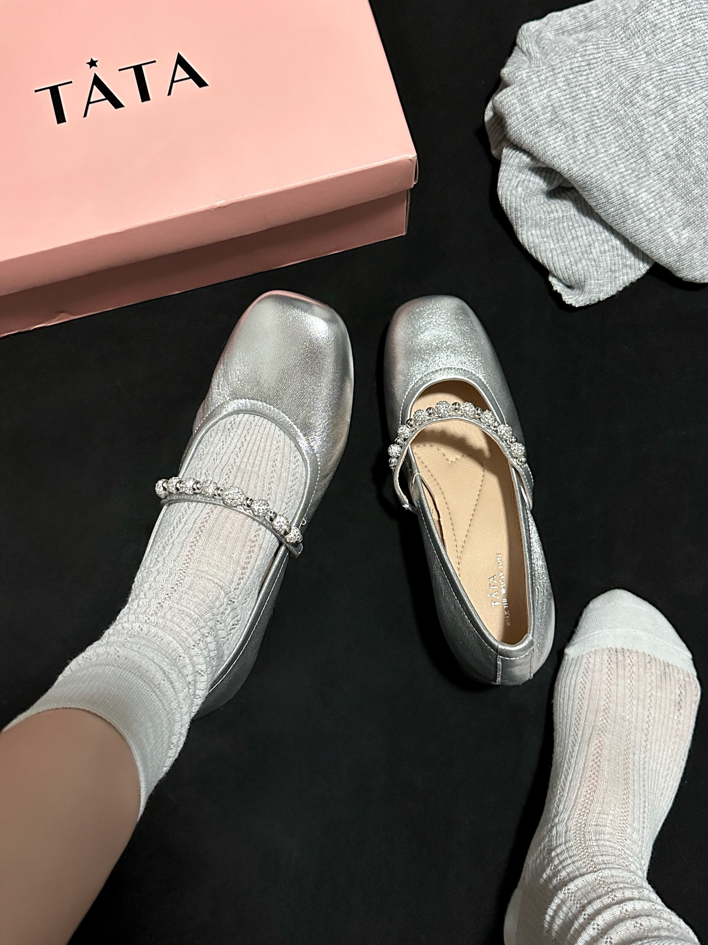 今年夏天被芭蕾🩰风狠狠拿捏住了! 平替我就选择Tata的这双银色玛丽珍鞋 小羊皮鞋面非常细腻 猪皮内里也舒适透气✨ 小方跟可以稳稳得增高4.5cm 富家千金风一整个爱住了~ 搭配袜子穿或者光脚穿都好看🤩 #谁说得物女孩只穿球鞋 #成人礼穿的漂亮鞋 #穿这双鞋做回小公主 #又挖到了宝藏玛丽珍鞋 #穿这双漂亮鞋迎接毕业