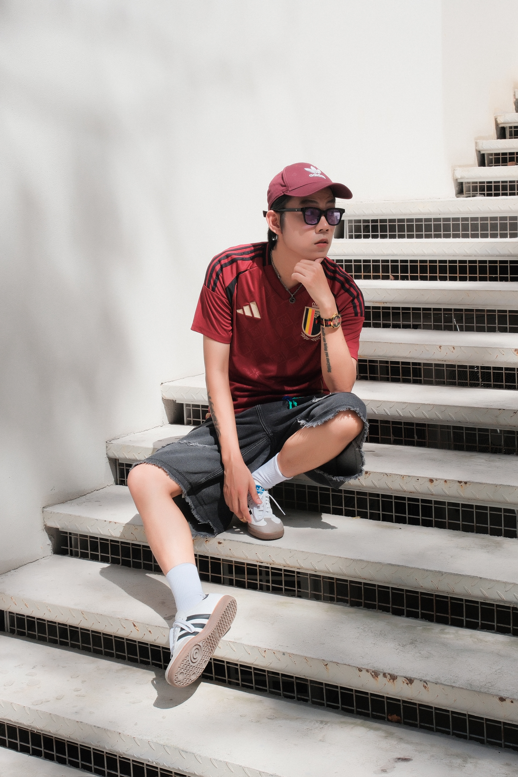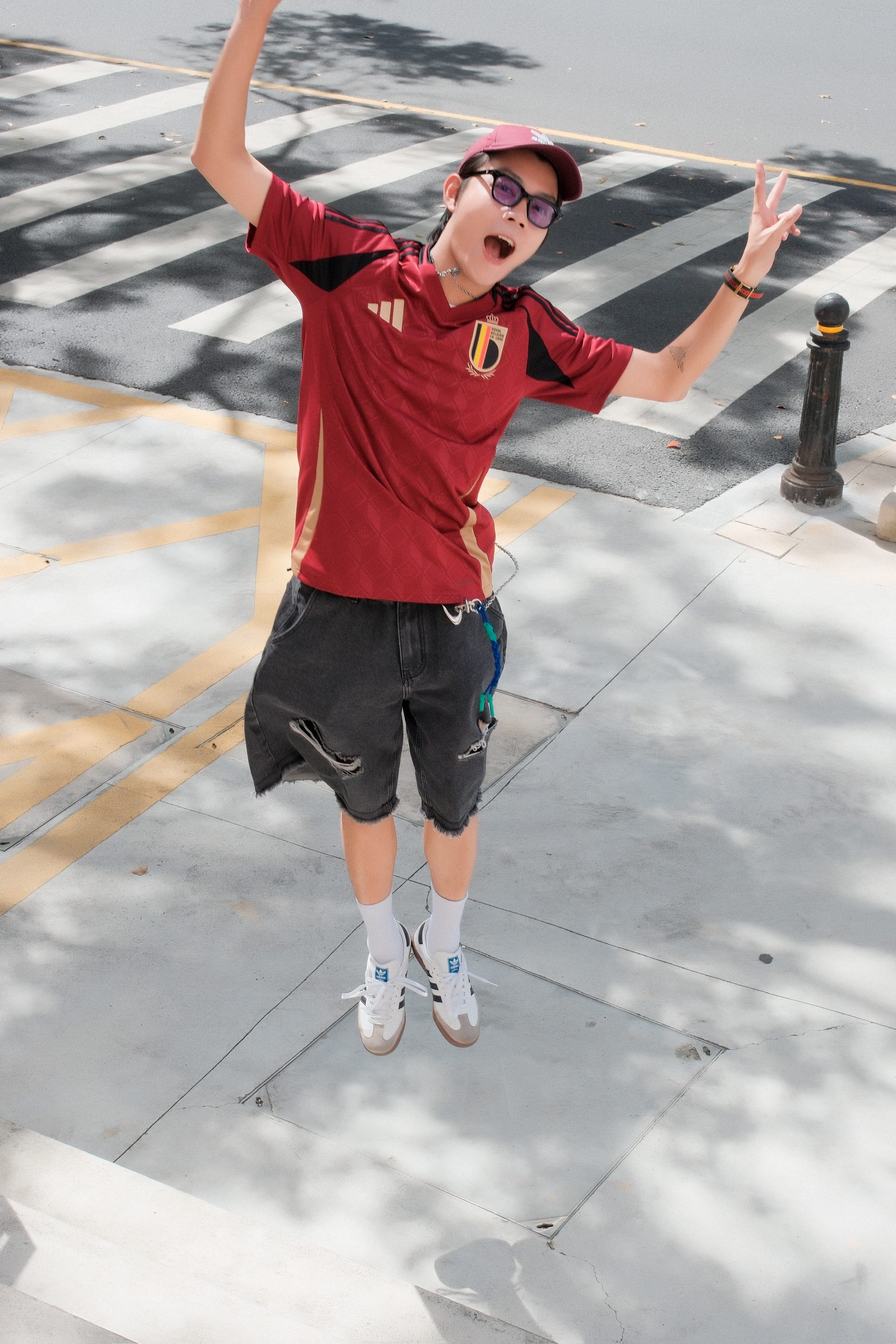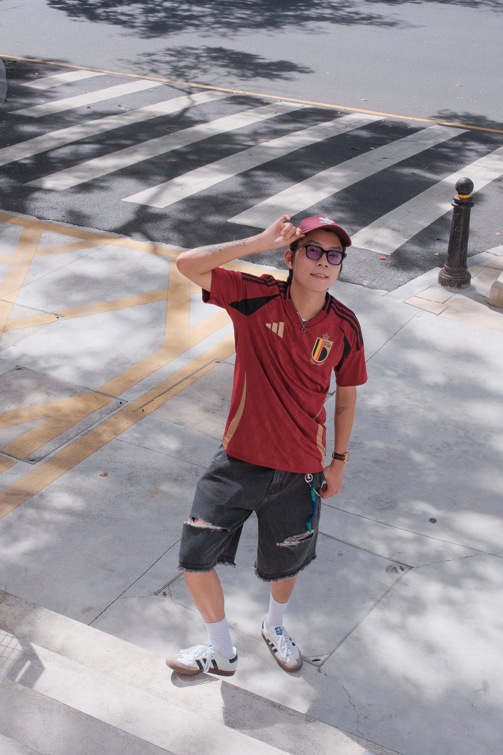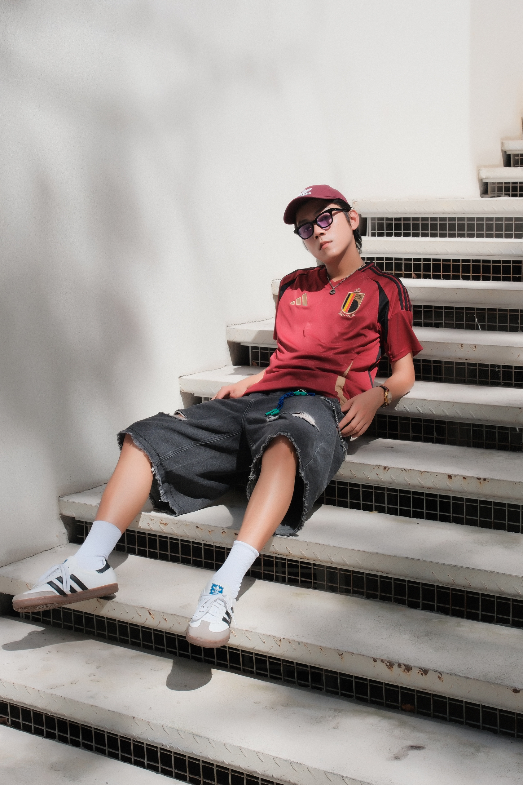 男生夏日chill穿搭 这套撞色街潮复古风格ootd可以说是我的首选了 - 潮流运动T恤的复古设计 上身街头感很足 而且还能给夏日出行带来一抹吸睛色彩 - 夏天闷热 选择黑色牛仔短裤搭配是明智的! 水洗做旧的风格会复古一点 加上破洞毛边增加穿搭的时髦前卫感 今天的ootd就搞定啦~ -