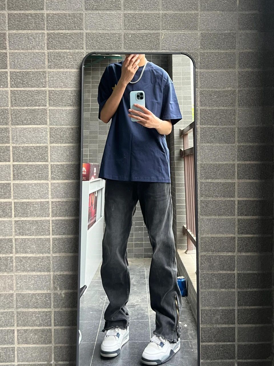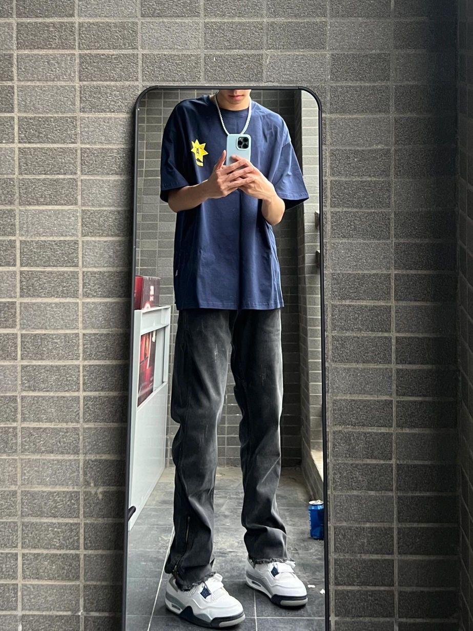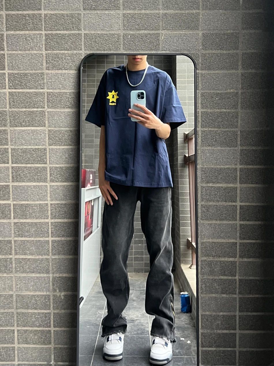 今日我穿着一件蓝色衬衫,胸前印有太阳图案,搭配灰色裤子。我的鞋子是白色与这个裤子完美搭这件衣服给我的感觉看起来舒适又时尚,适合休闲场合或日常穿着,自我感觉穿起来总体效果还是蛮不错滴。