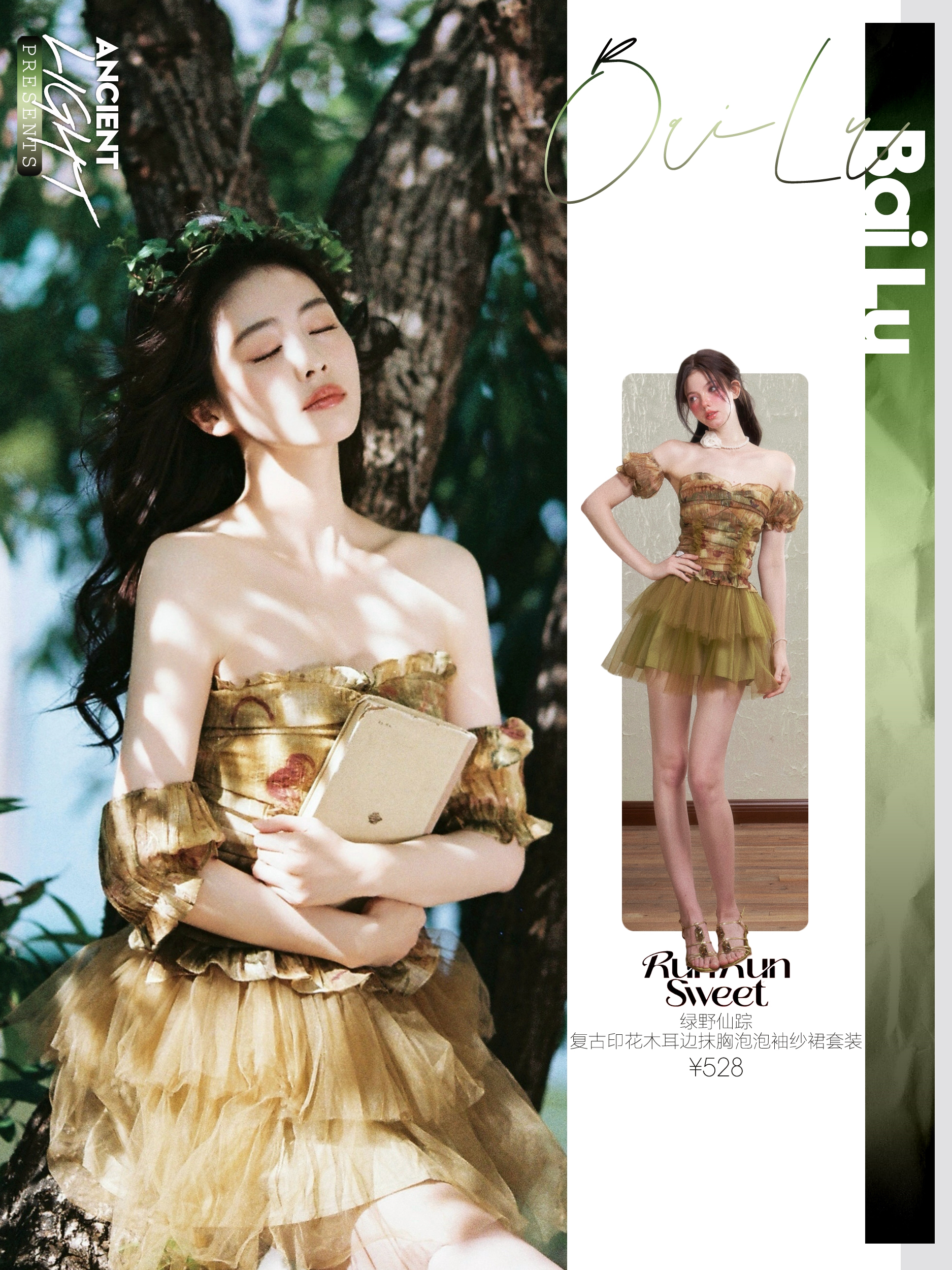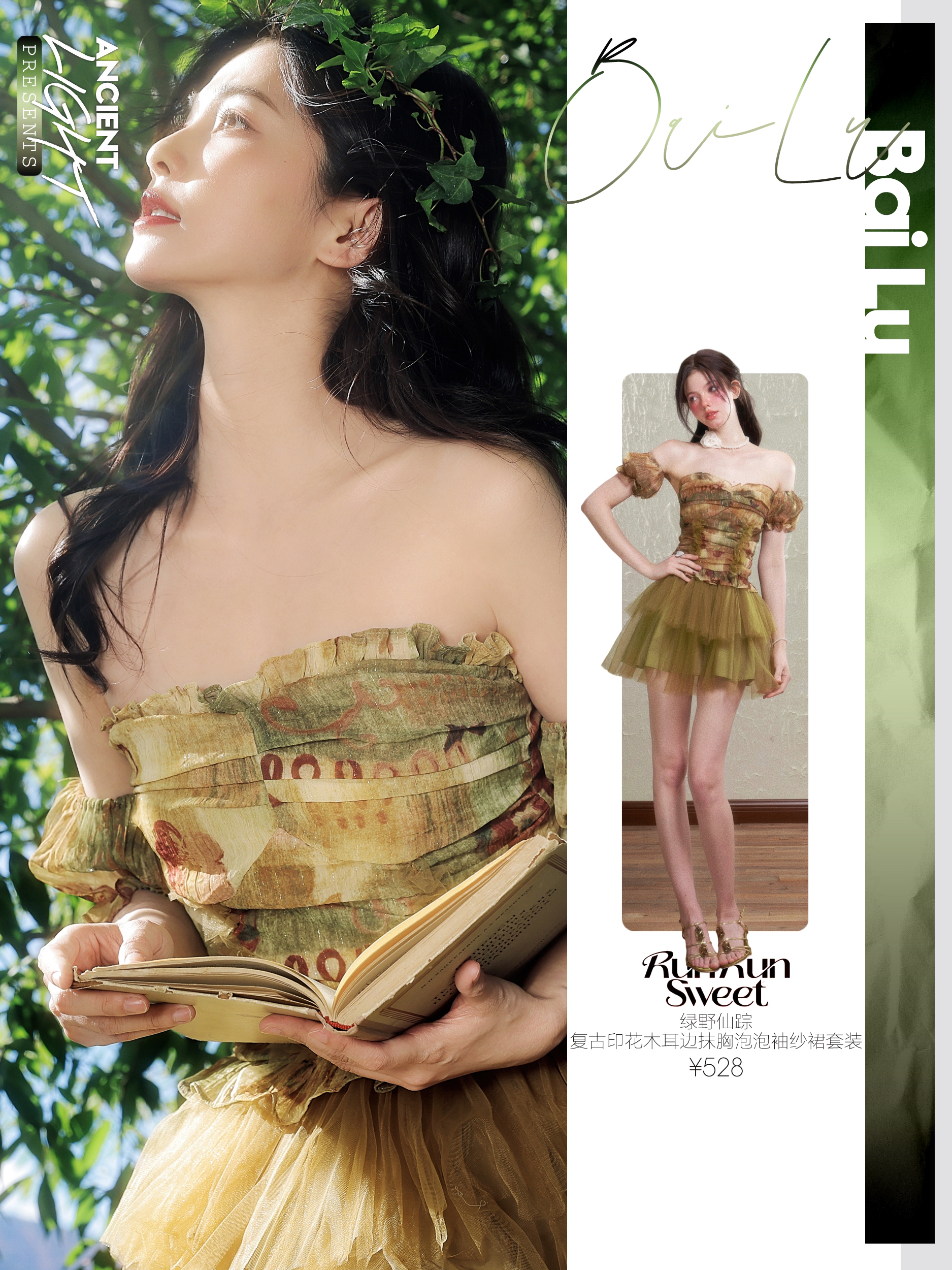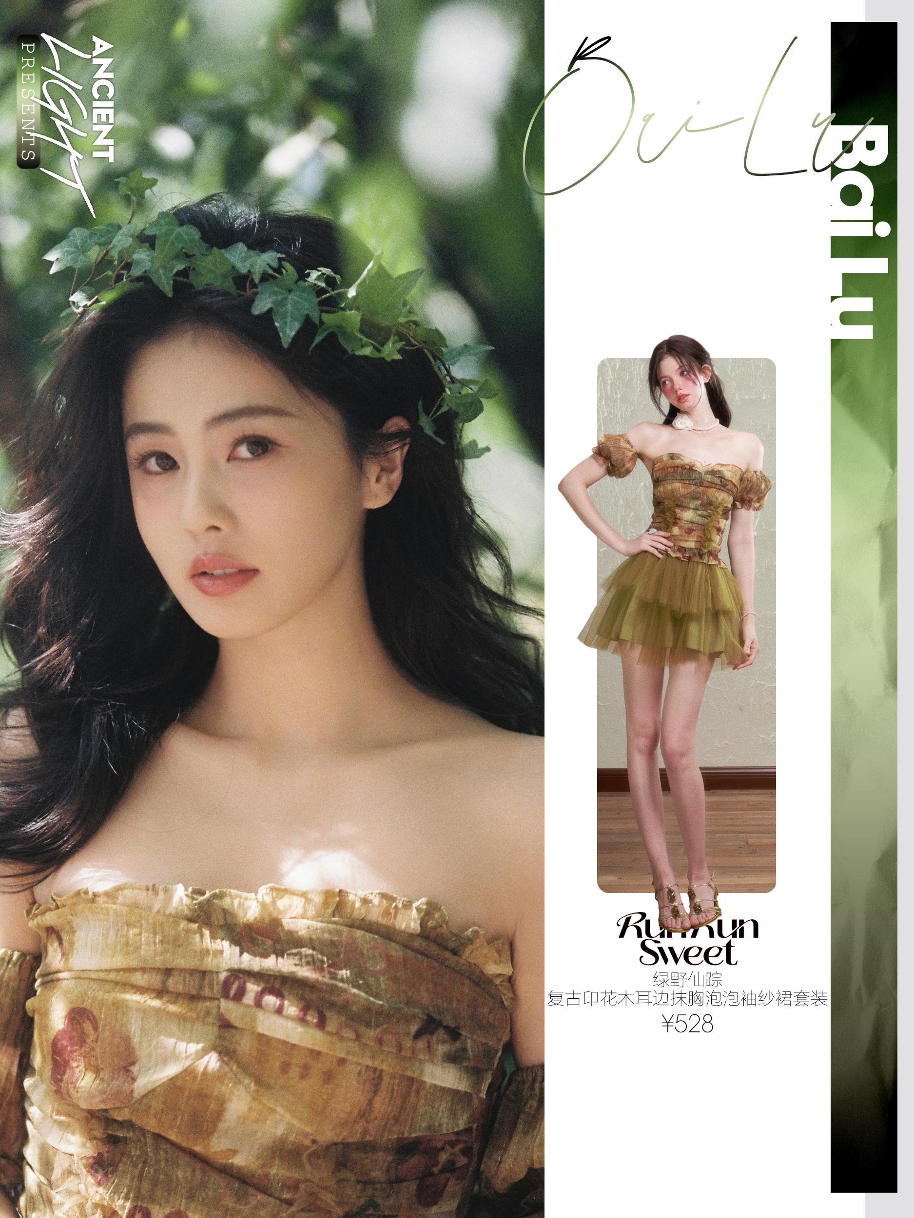 白鹿出道8年庆祝写真,很有时光意境,蓝天白云置身河边栈道,很惬意的观感。八年前的昨日,还是初出茅庐的新人一枚。八年后的今天,俨然已是可以独当一面的艺人。每次看到白鹿爽朗大笑的时候就会觉得这一天很有活力。 服饰|RunRunSweet 绿野仙踪复古印花木耳边抹胸泡泡袖纱裙套装 鞋履|GUCCI女士饰马衔扣乐福鞋 货号764211DS8001000