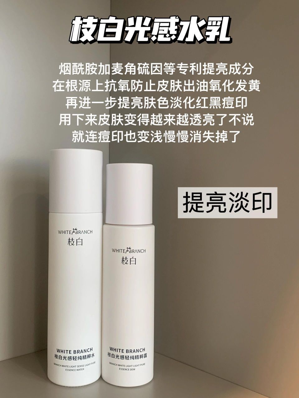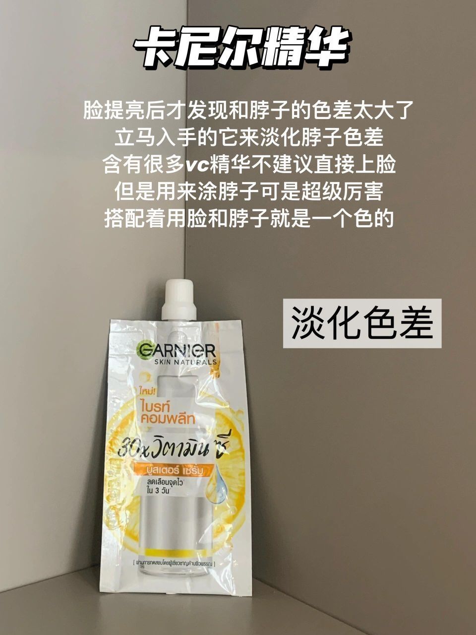 曾经的我妥妥的小黄人一枚,不过还好我努力爆改了自己,现在我对提亮也有发言权啦!都是些白菜价的小玩意性价比是真的高,现在就等着一个寒假逆袭了,想提亮的赶紧来抄作业。 - - 卡尼尔精华:淡色差 几块钱就能到手的东西用起来一点也不心疼,脸提亮之后才发现和脖子的色差太大了,立马入手的它来淡化脖子色差,含有很多vc精华不建议直接上脸,但是用来涂脖子可是超级厉害,搭配着用脸和脖子就是一个色的。 枝白光感水乳...
