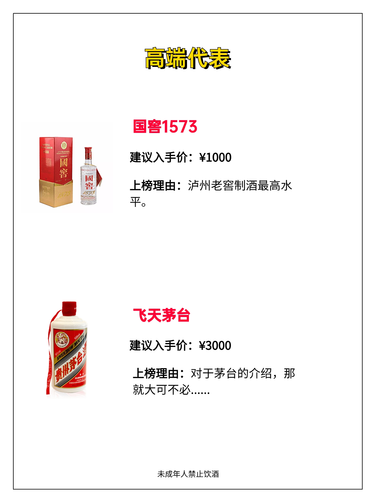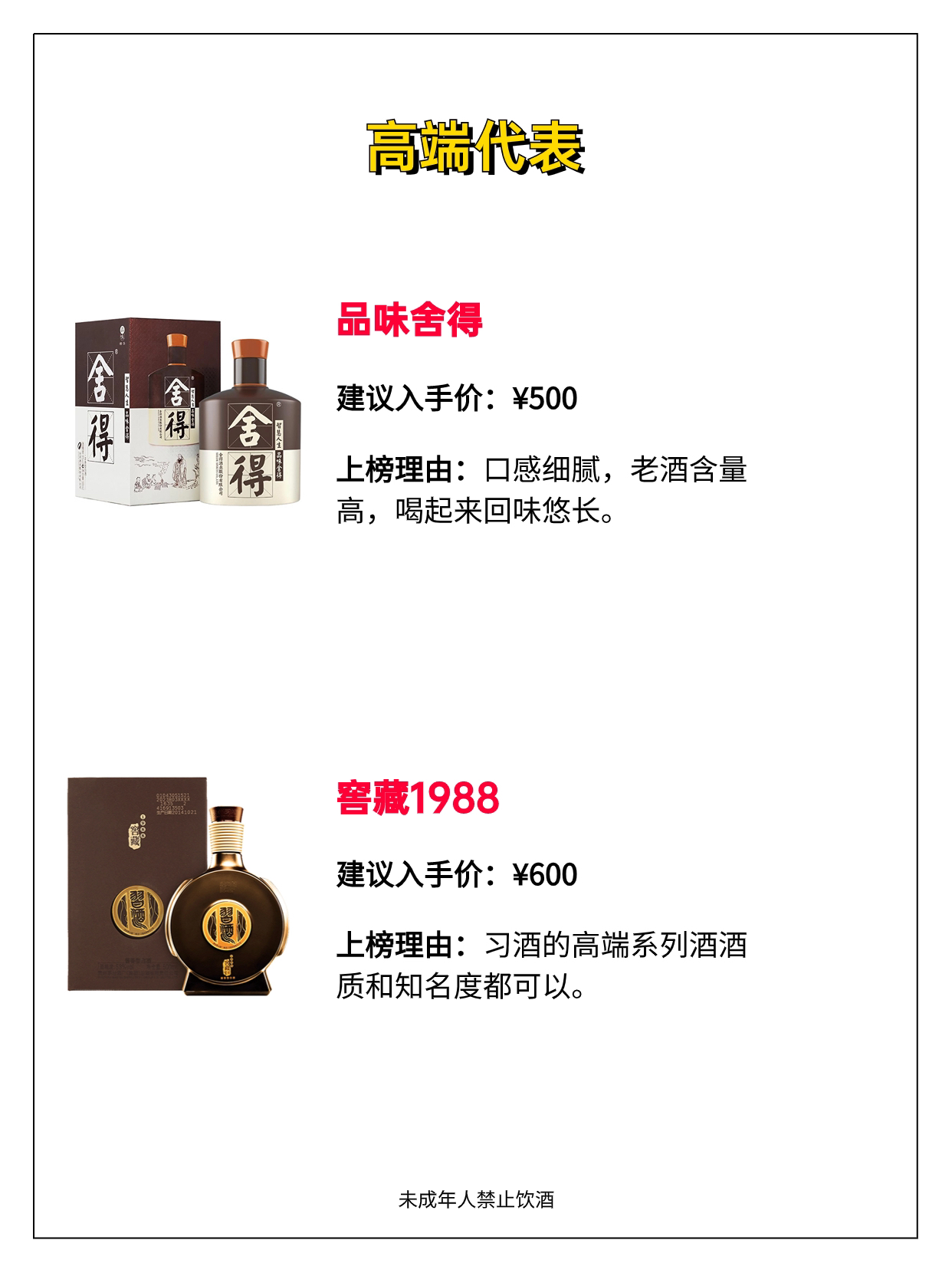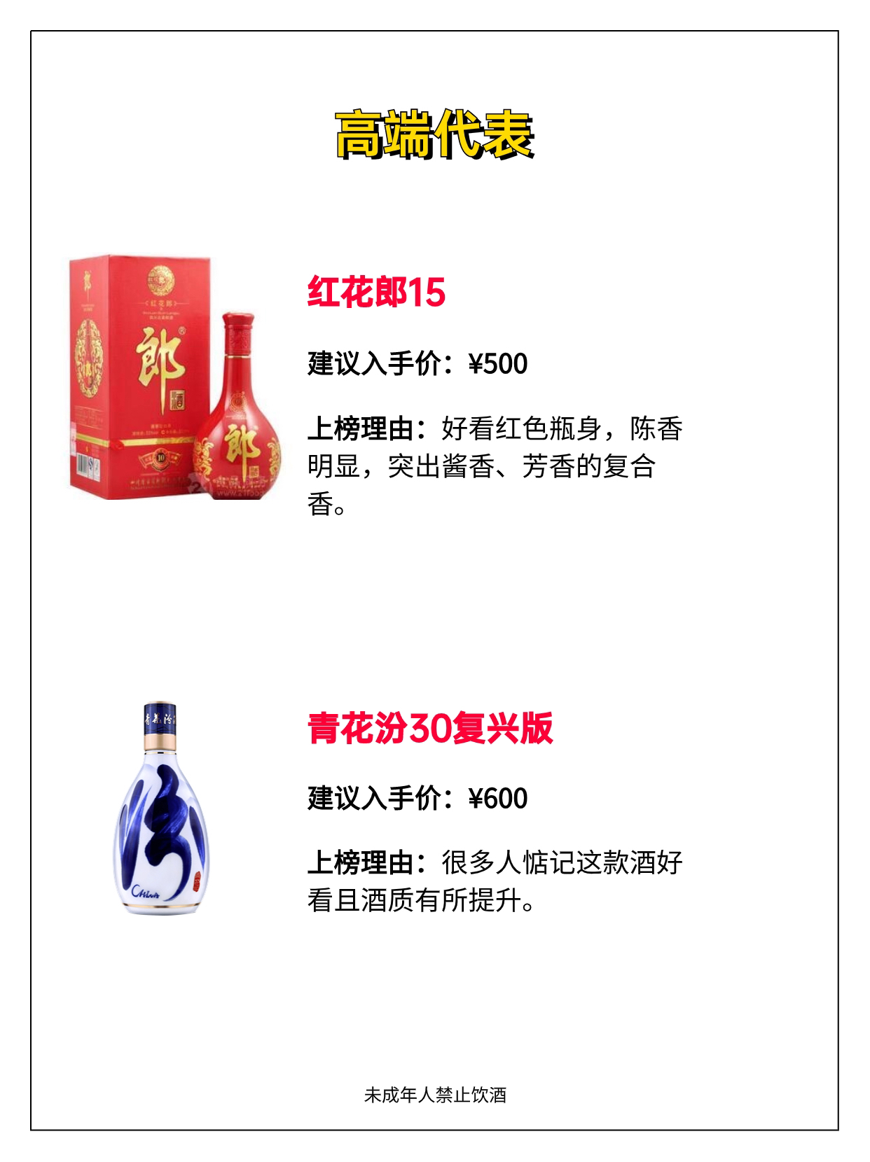 高端代表⬇️ 红花郎15 青花汾30复兴版 品味舍得 习酒窖藏1988 国窖1573 飞天茅台 性价比⬇️ 青花汾20 水晶剑 口粮酒推荐⬇️ 黄盖玻汾 尖庄高光 老白汾10 五粮春