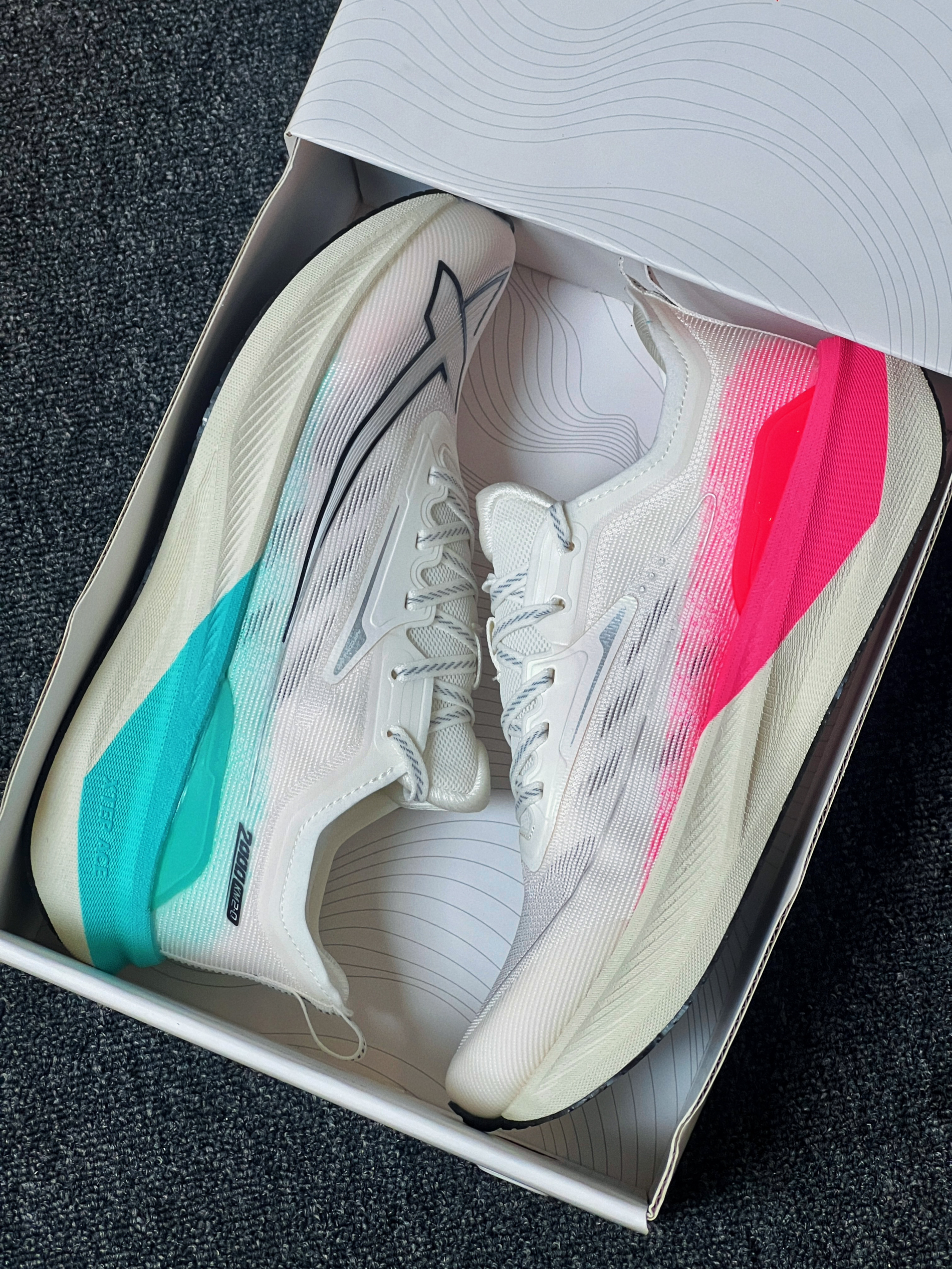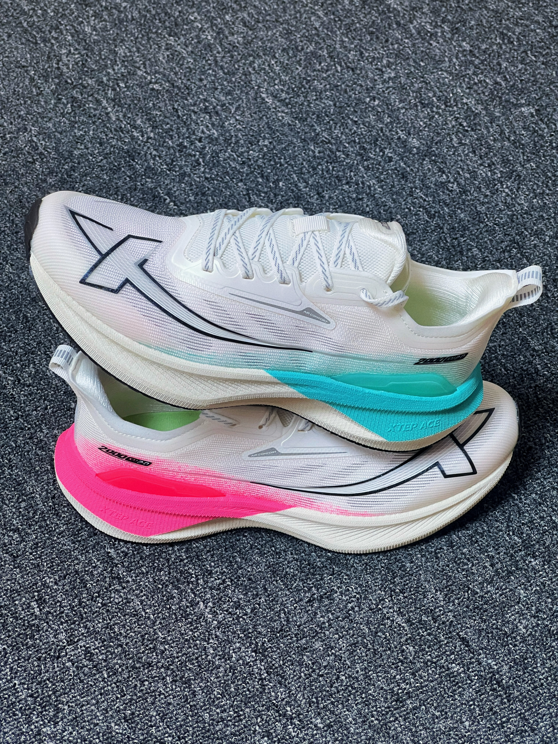 平时运动鞋尺码:41码 特步2000km尺码:40码 我属于瘦脚,脚背不高类型,仅供参考。 被这款鞋的配色给深深吸引🤩 鞋型设计风格也很运动个性 尤其是特步的流星🌠logo非常好看 Ace中底,回弹率达70%👍 马拉松级别Cpu大底防滑抗造 高强度绞综鞋面透气强韧耐磨💨 更低门槛更高的专业性 还是3开的价格,你很难不爱🥰