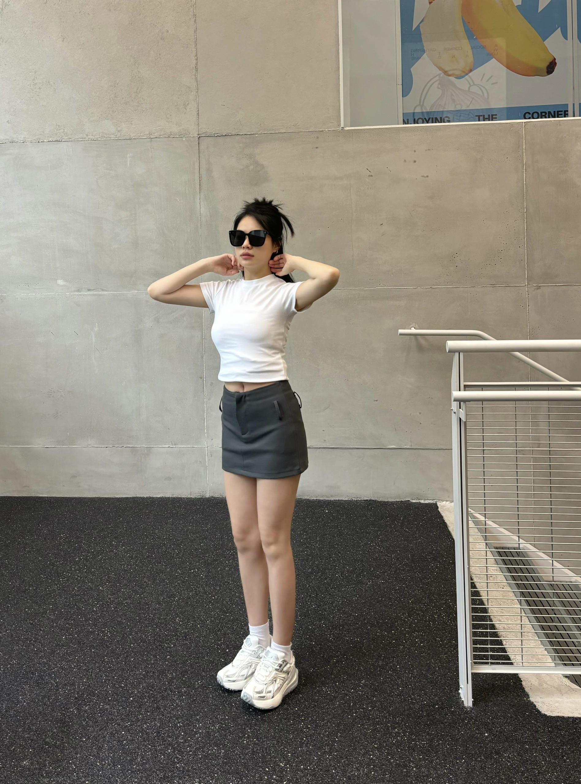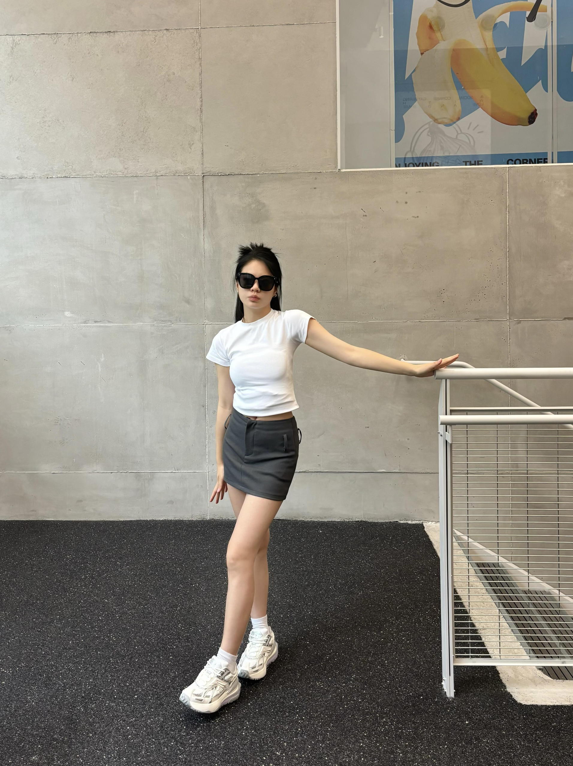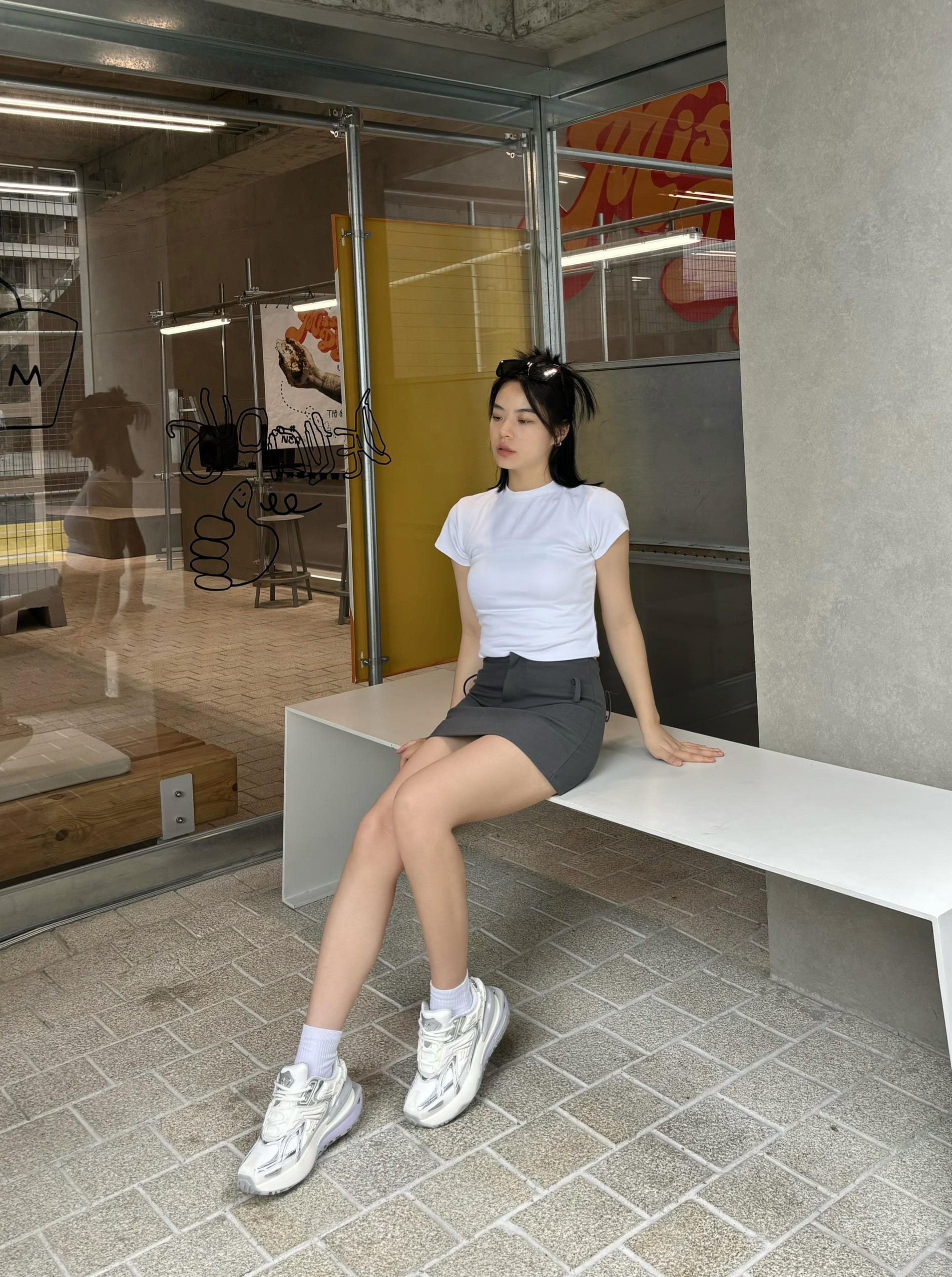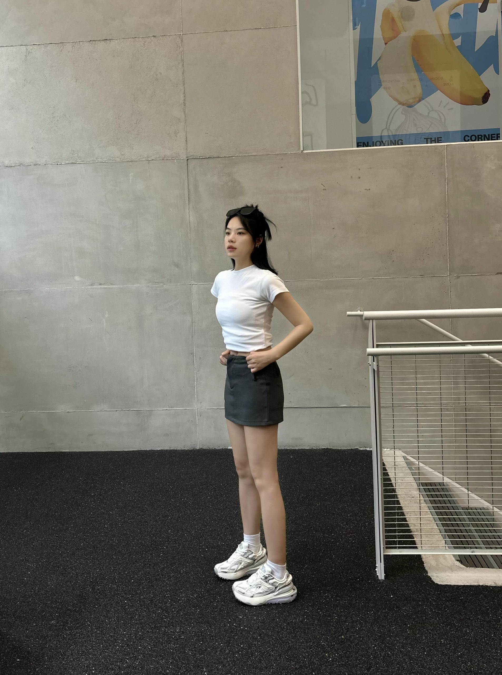 🫧今天的简约韩系look泰好拍了 回头率也是杠杠滴 白色圆领套头T恤简单大方 ➕灰色小短裙,俏皮又减龄 化身青春美少女战士✔️ 💻我想把 OGR 跑步鞋焊死在脚上 增高效果对小个子女生太友好噜 显得腿又细又长,腿精无疑了✨ BOLON暴龙 墨镜的加持 给整套穿搭增添了不少帅气🌪️ 🪄OK 下次和crush约会就这么穿🫶🏻
