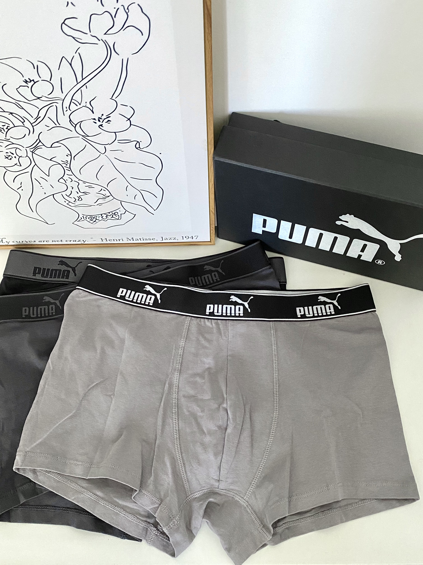 本篇笔记关联了PUMA/彪马 纯色莫代尔内档抑菌平角中腰男士四角内裤 701226940 灰+浅灰+黑/3条装等商品,为用户提供真实的使用体验和购买参考。